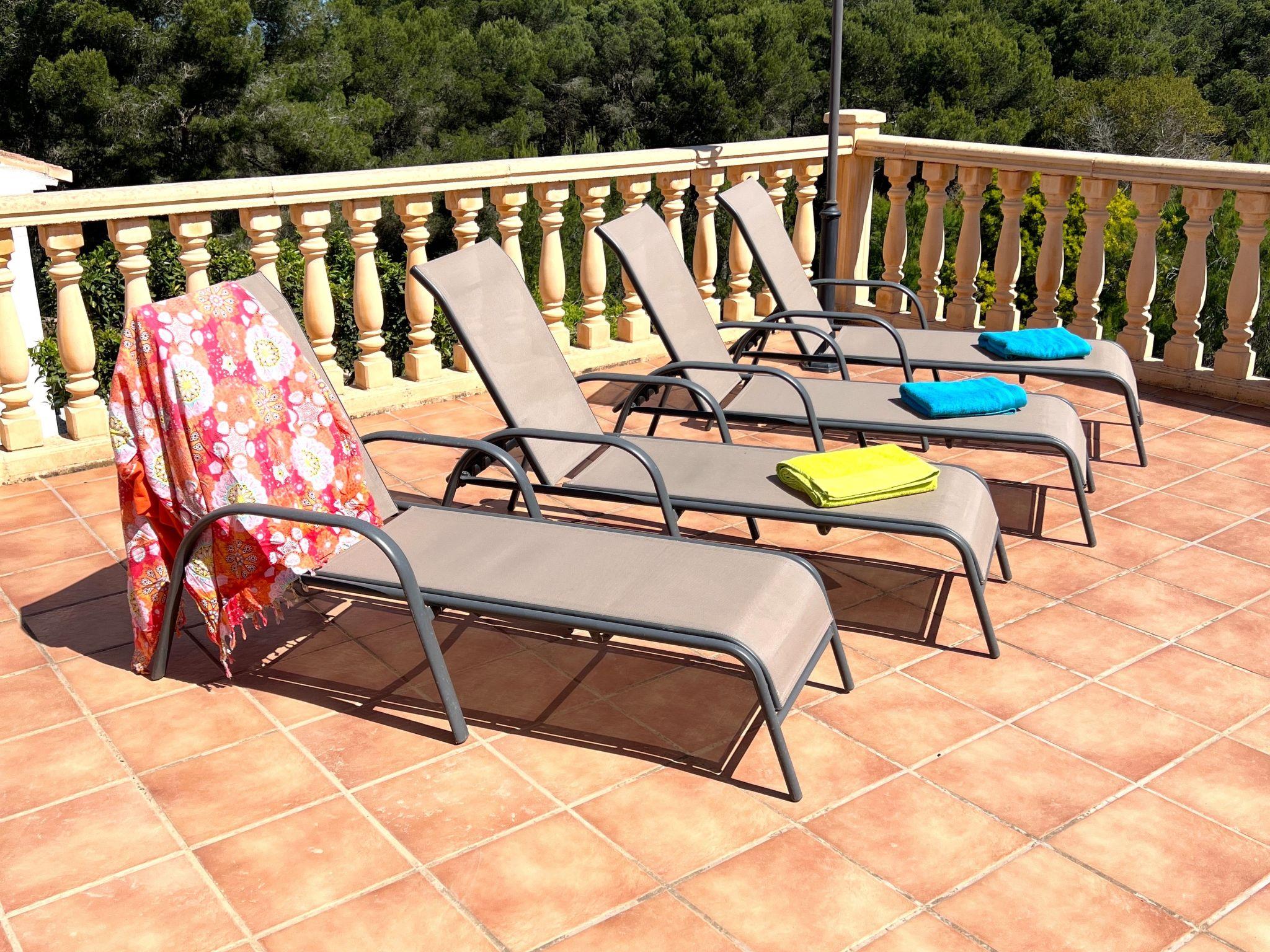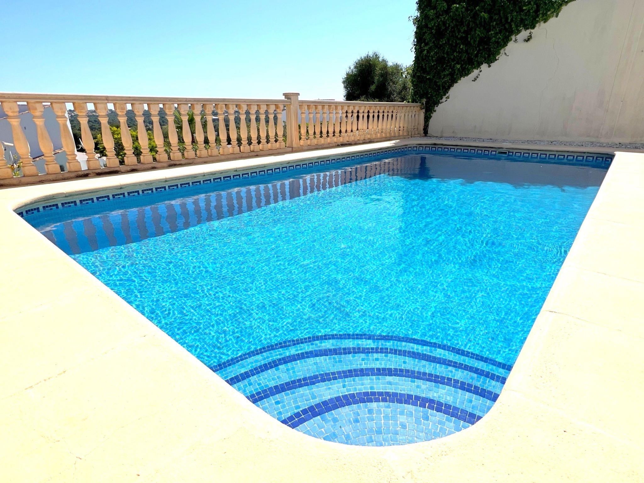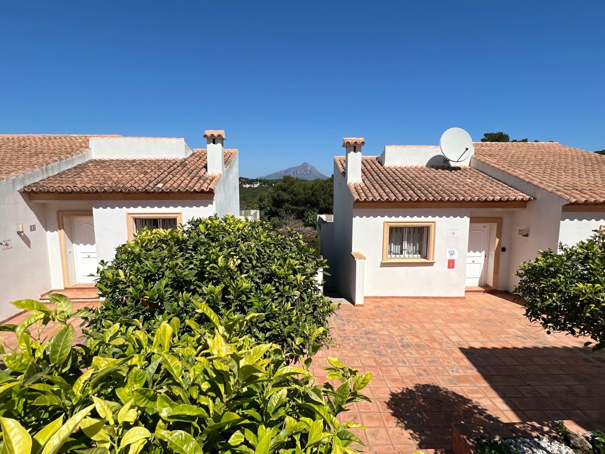 House. 24 houses in the residence. In the district of Monte Javea 5 km from the centre of Jávea-Arenal, on a slope, 3 km from the sea. Private: property (fenced) with wildlife garden and trees, swimming pool (8 x 4 m, depth 120 - 220 cm, seasonal availability: 01.Jan. - 31.Dec.). Public parking on the road. Shop 2.5 km, restaurant 1 km, bus stop "Calablanca" 3.6 km, sandy beach "Arenal" 5 km pebble beach "Granadella" 3 km. Tennis 1 km.