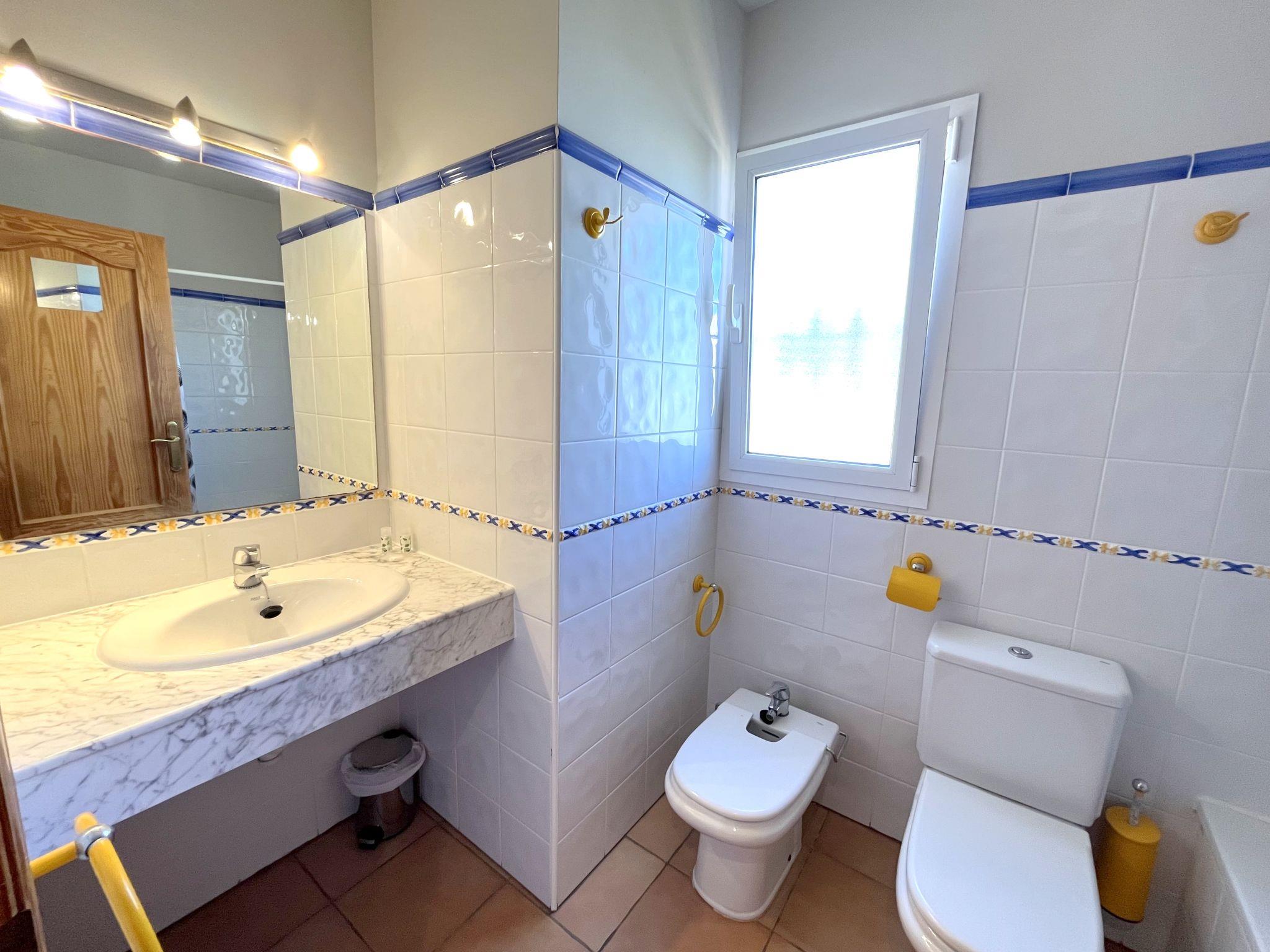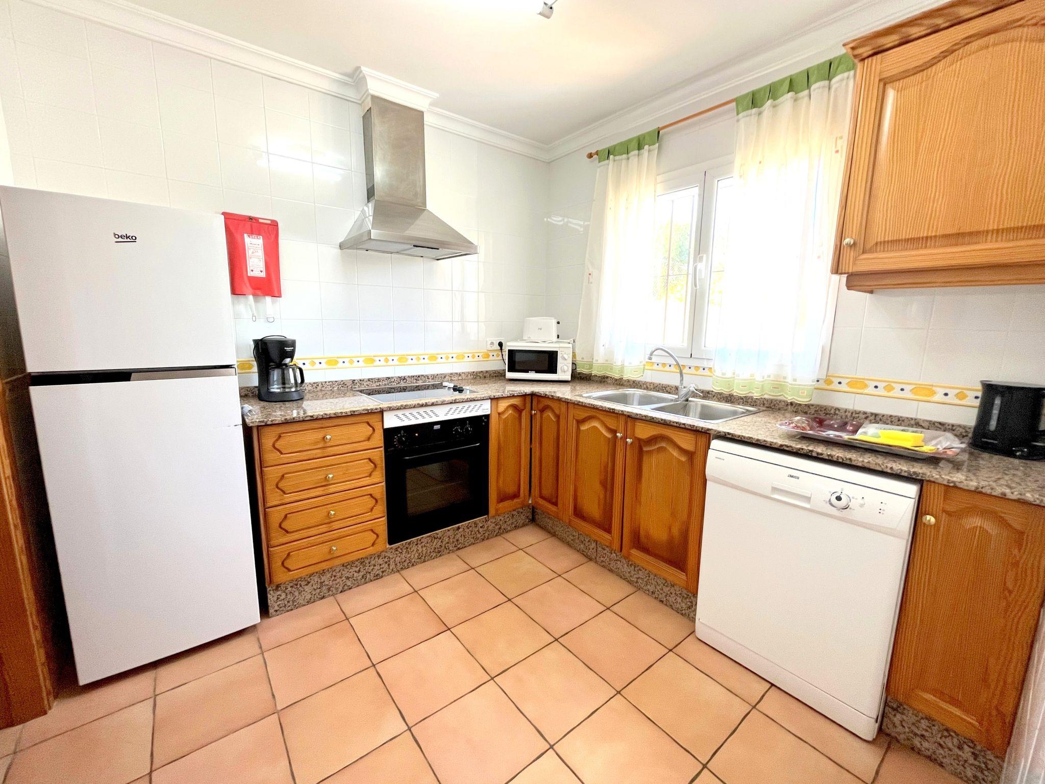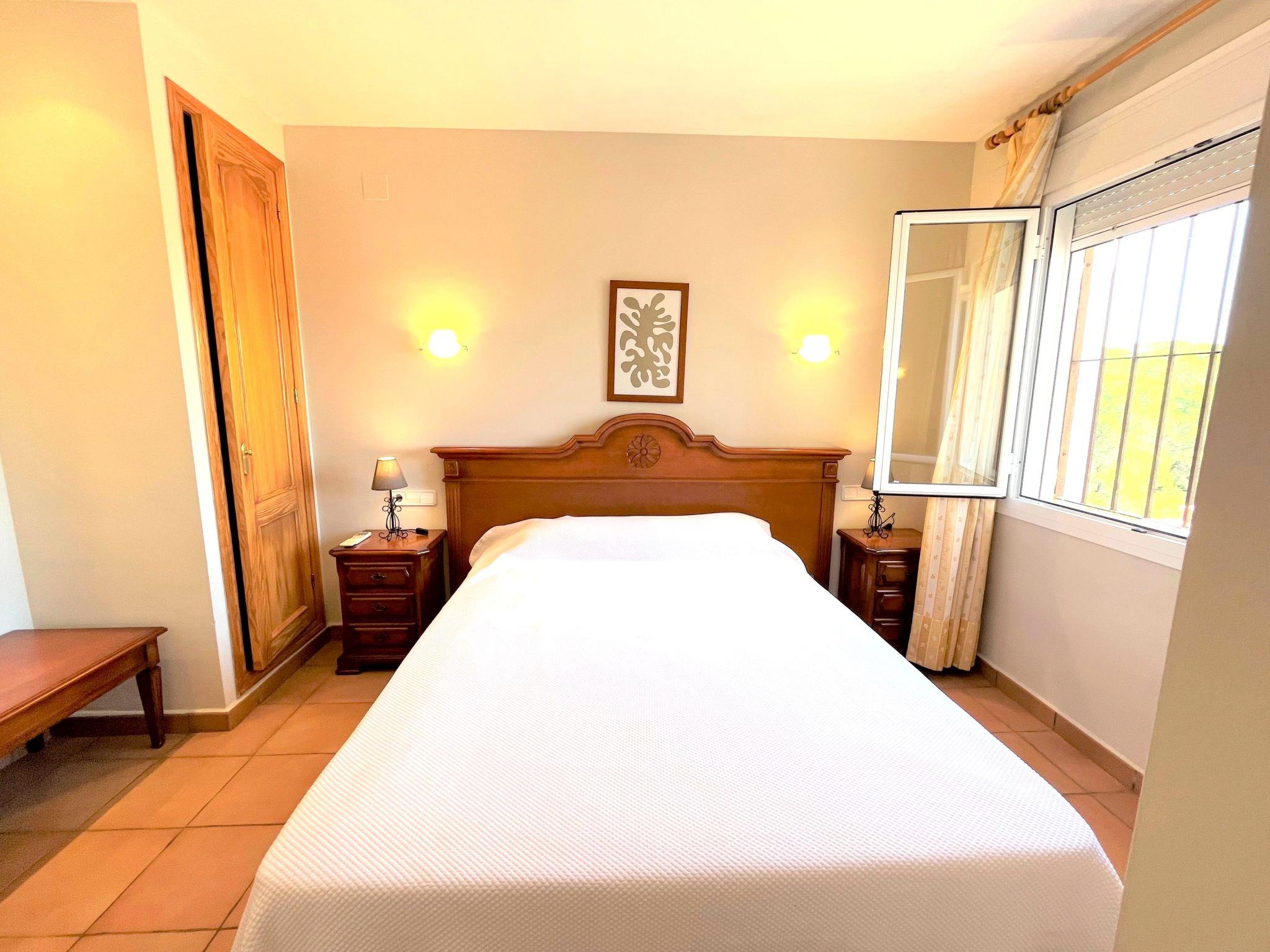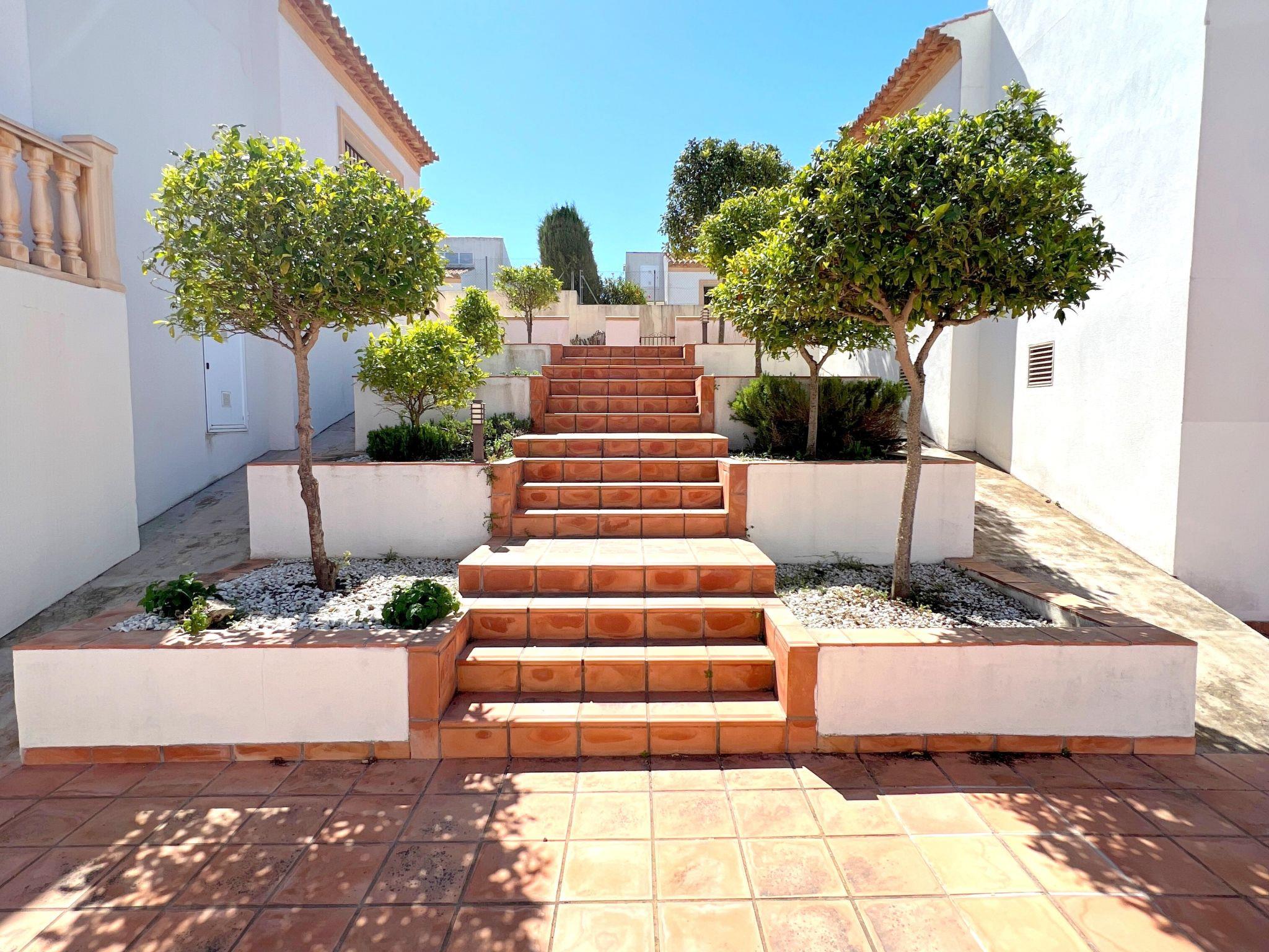 House. 24 houses in the residence. In the district of Monte Javea 5 km from the centre of Jávea-Arenal, on a slope, 3 km from the sea. Private: property (fenced) with wildlife garden and trees, swimming pool (8 x 4 m, depth 120 - 220 cm, seasonal availability: 01.Jan. - 31.Dec.). Public parking on the road. Shop 2.5 km, restaurant 1 km, bus stop "Calablanca" 3.6 km, sandy beach "Arenal" 5 km pebble beach "Granadella" 3 km. Tennis 1 km.