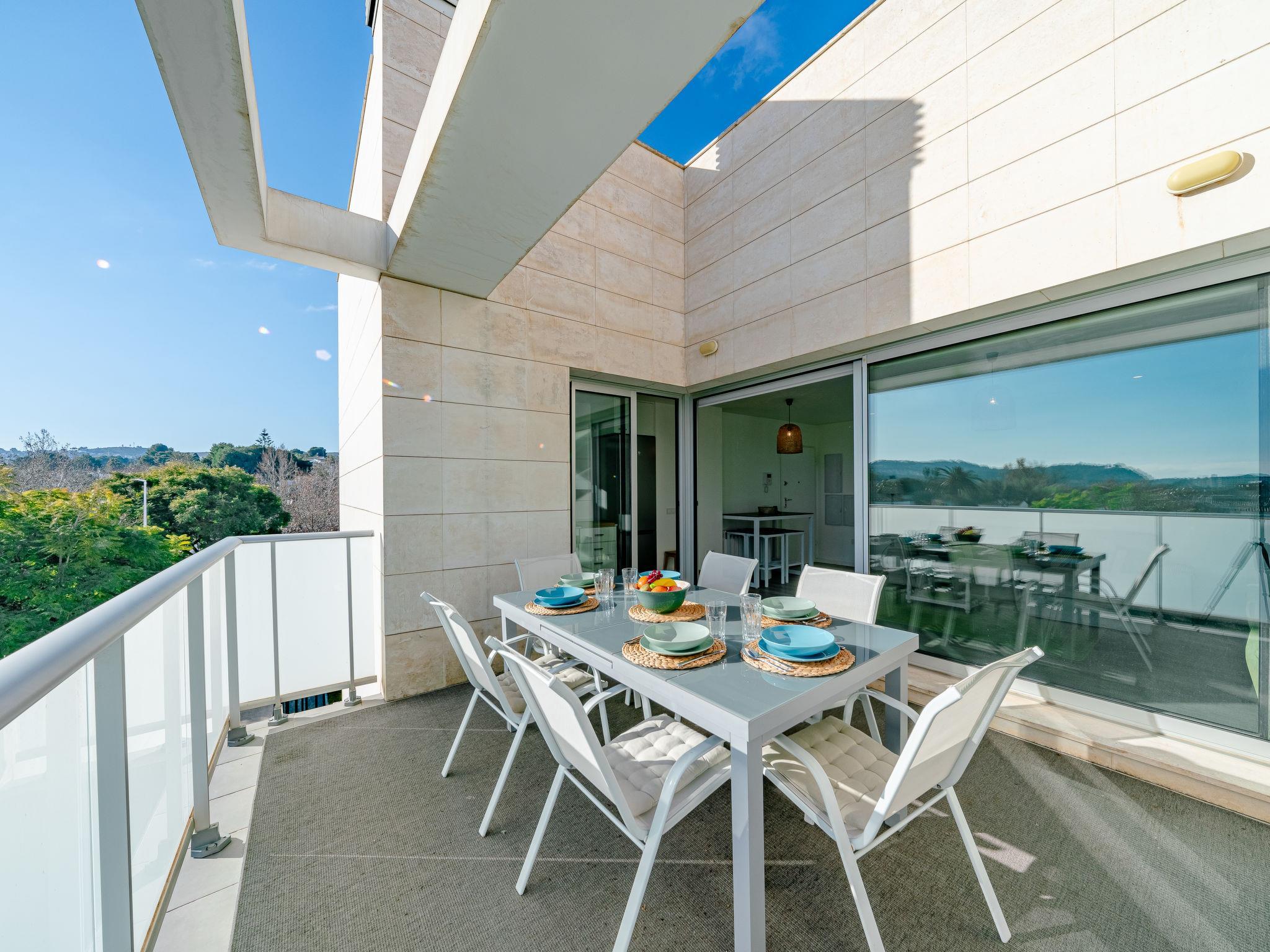 "Arenal Boutique Suite", 5-room maisonette 140 m2 on 2 levels. Spacious and bright, very beautiful and stylish furnishings: living/dining room with digital TV, air conditioning and forced-air heating. Exit to the terrace. 1 room with 1 french bed (160 cm, length 200 cm), shower/WC, double hand-basin, air conditioning and forced-air heating. 1 room with 2 beds (90 cm, length 200 cm), air conditioning and forced-air heating. 1 room with 2 beds (80 cm, length 190 cm), air conditioning and forced-air heating. Exit to the terrace. Open kitchen (oven, dishwasher, 3 ceramic glass hob hotplates, toaster, kettle, microwave, freezer, electric coffee machine). Bath/WC. Upper floor: lounge with air conditioning and forced-air heating. Exit to the terrace. Shower/WC. Large balcony 50 m2, balcony 10 m2. Terrace furniture, sitting area. Very beautiful view of the sea and the valley. Facilities: washing machine, iron, hair dryer. Internet (WiFi, free). Garage space n 28. R00000001