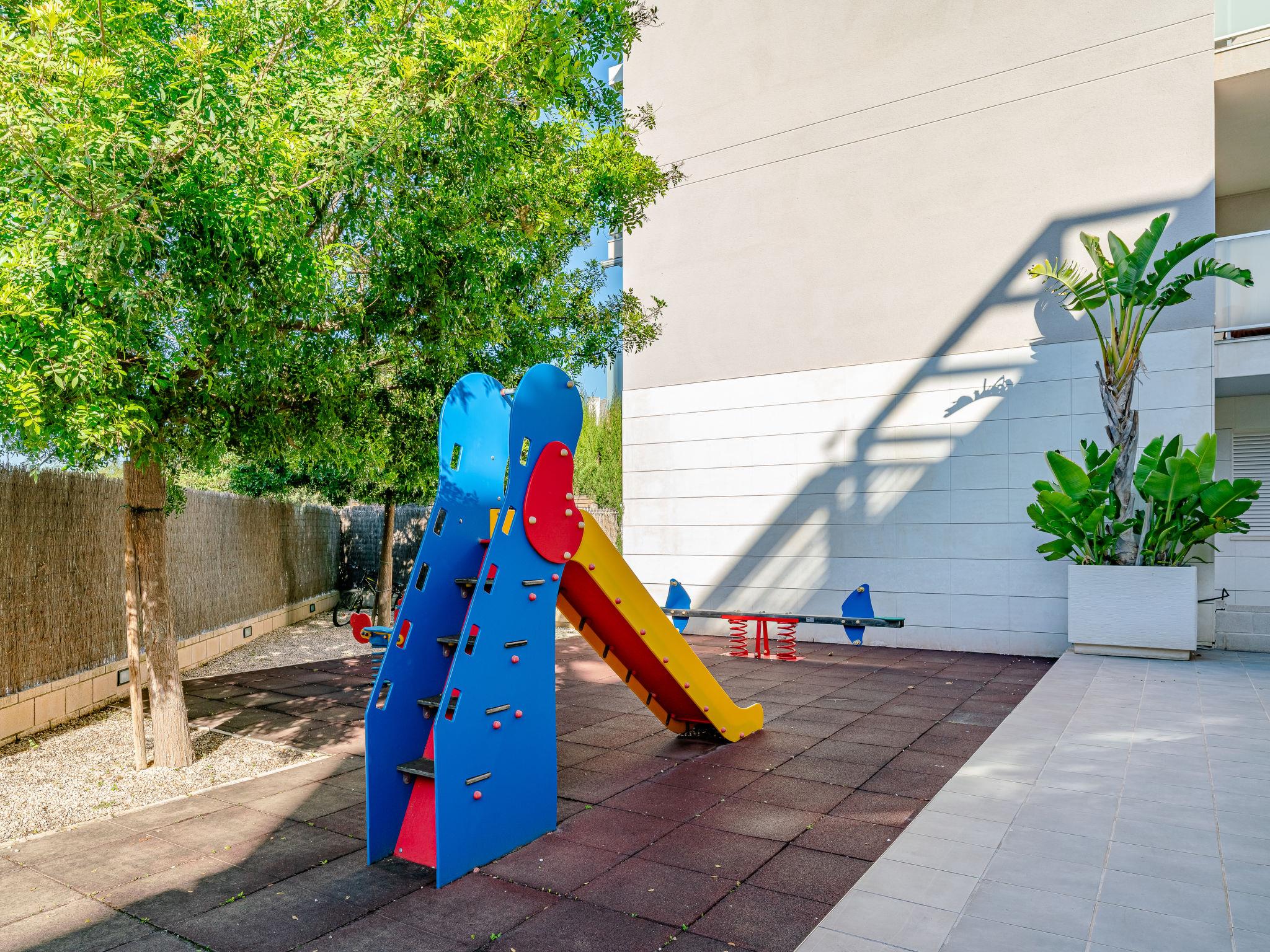 Only Streaming TV very beautiful, very comfortable apartment block "Arenal Boutique Suite". In a quiet, sunny position, 800 m from the sea, 800 m from the beach. For shared use: with lawn and trees, beautiful garden to relax, swimming pool angular (10 x 4 m, depth 110 - 180 cm, seasonal availability: 01.Jan. - 31.Dec. pool opening hours: 10:00-15:00 and 17:00-24:00). Children's pool, outdoor shower, children's playground (slide). Private: terrace (10 m2), garden furniture. In the house: lift. Communal covered parking. Supermarket 290 m, restaurant, bar 300 m, bus stop 400 m, sandy beach "El Arenal" 850 m. Surf school, sailing school 800 m, tennis 1 km. The owner does not accept any youth groups.