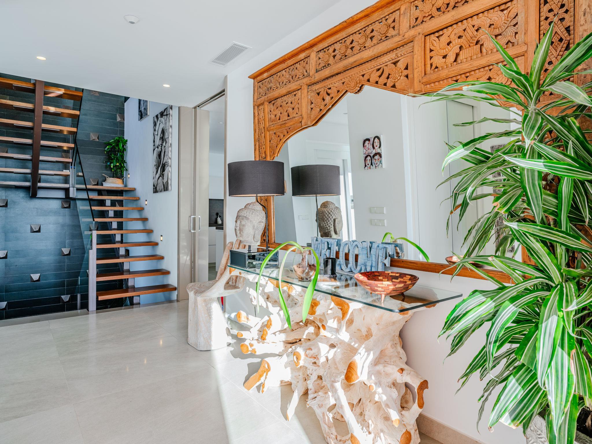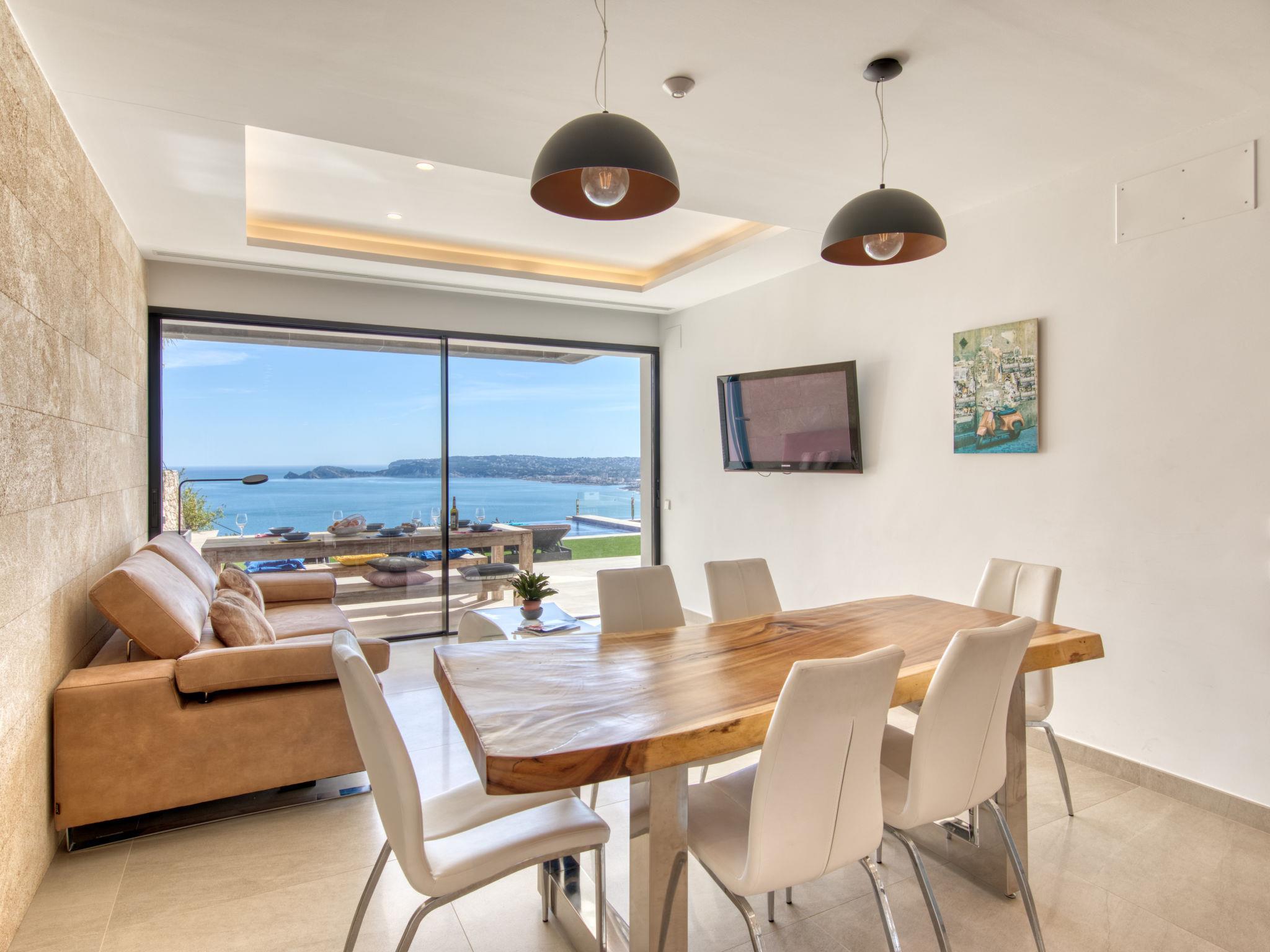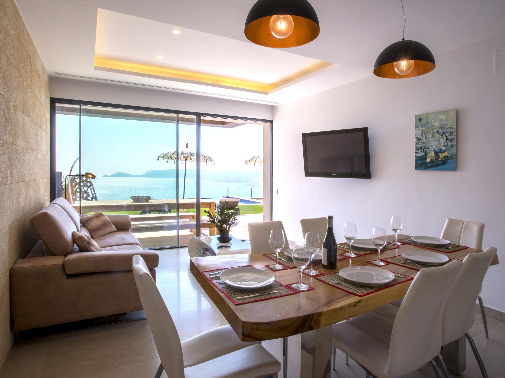 Villa Jakarta is a beautiful and impressive villa, modern in style, with fantastic views of the sea and the city of Jávea. Very large, very luxurious villa "Bali Infinity", 2 storeys. In the district of La Cuesta de San Antonio, 1 km from the sea, 1 km from the beach. Private: swimming pool (9 x 5 m, depth 110 - 180 cm, seasonal availability: 01.Jan. - 31.Dec.). Shower/WC in the pool area, outdoor shower, hot tub, terrace, garden furniture, barbecue, barbecue house. In the house: fitness room, hot tub, table tennis, lift, central heating system, air conditioning, laundry, washing machine, tumble dryer. Parking (for 3 cars) on the premises, single garage. Shop 1 km, supermarket 3 km, restaurant 1 km, bus stop 2 km, sandy beach "Arenal" 4 km pebble beach "La Grava" 1 km. Sports harbour 1 km, marina 1 km, surf school 1 km, sailing school 1 km, tennis 2 km.