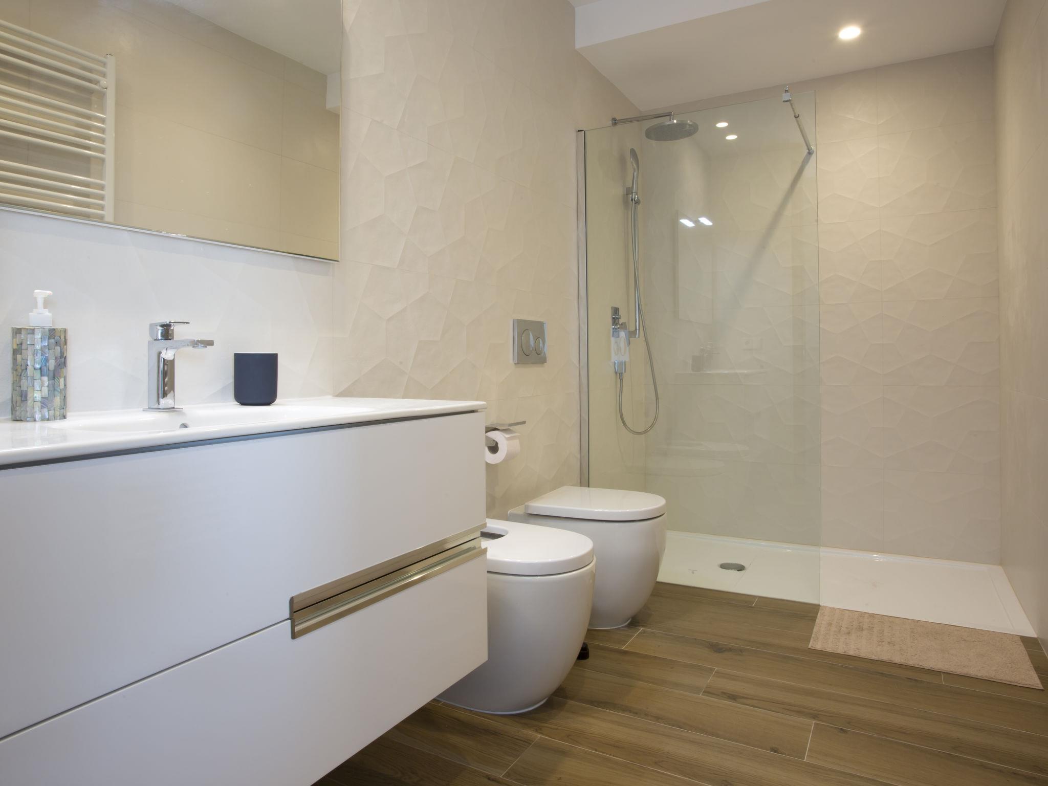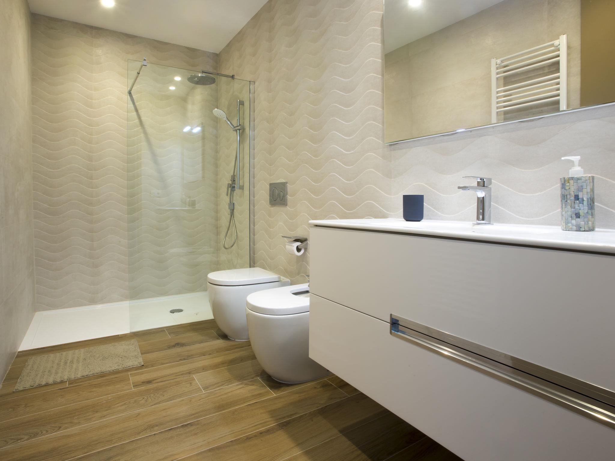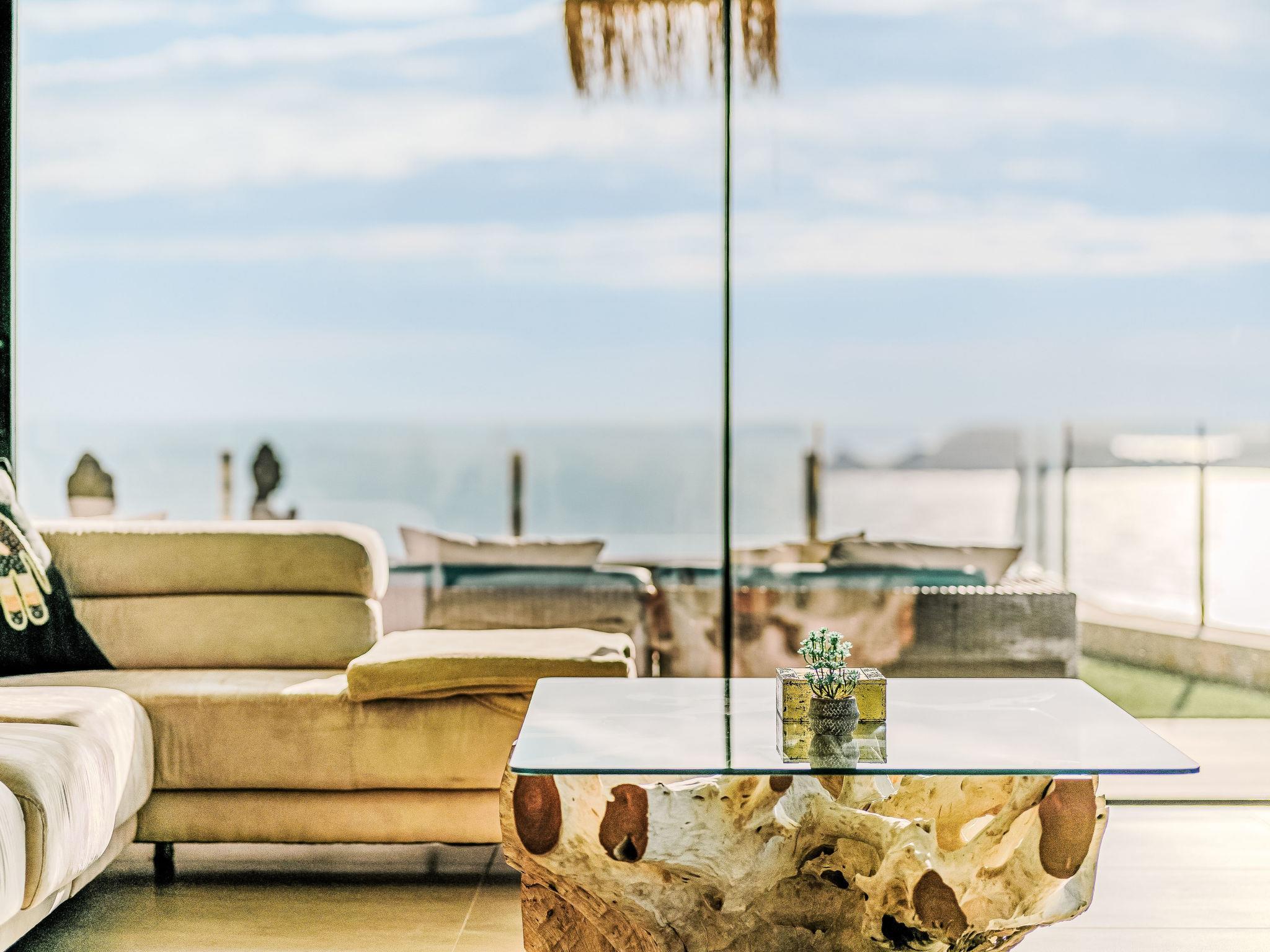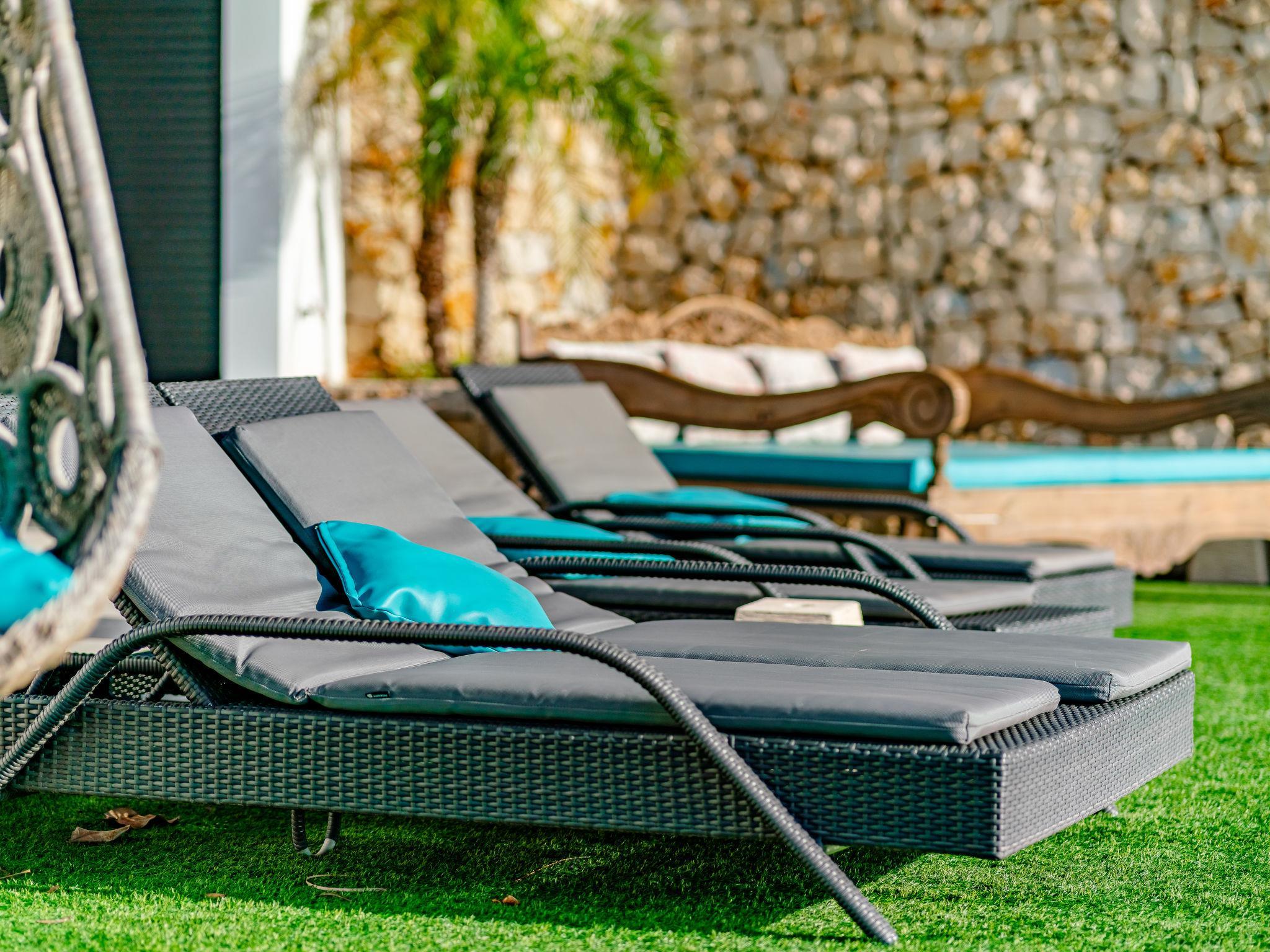"Villa Bali Infinity", 7-room villa 650 m2 on 2 levels. Spacious and bright, very modern and luxurious furnishings: living/dining room with open-hearth fireplace, dining table, satellite TV and digital TV. Large kitchen (oven, dishwasher, 4 induction hot plates, toaster, kettle, microwave, freezer, electric coffee machine, cooking island). Shower/WC. On the lower ground floor: 1 room with 1 french bed (160 cm, length 200 cm), shower/WC. 1 room with 1 french bed (160 cm, length 200 cm), shower/WC. Upper floor: 1 room with 1 french bed (180 cm, length 200 cm), shower/WC. 1 room with 1 french bed (160 cm, length 200 cm), shower/WC. 1 room with 1 french bed (160 cm, length 200 cm), shower/WC. Large terrace. Terrace furniture, barbecue, deck chairs (3). Marvellous panoramic view of the sea and the resort. Facilities: washing machine, dryer, iron, hair dryer. Internet (WiFi, free). At the house. On the lower floor there is also a gym with hot tub and toilet. Garage for three cars. VT-484887-A // Reg. Nr.: ESFCTU0000030710009718020000000000000CV-VUT0484887-A6