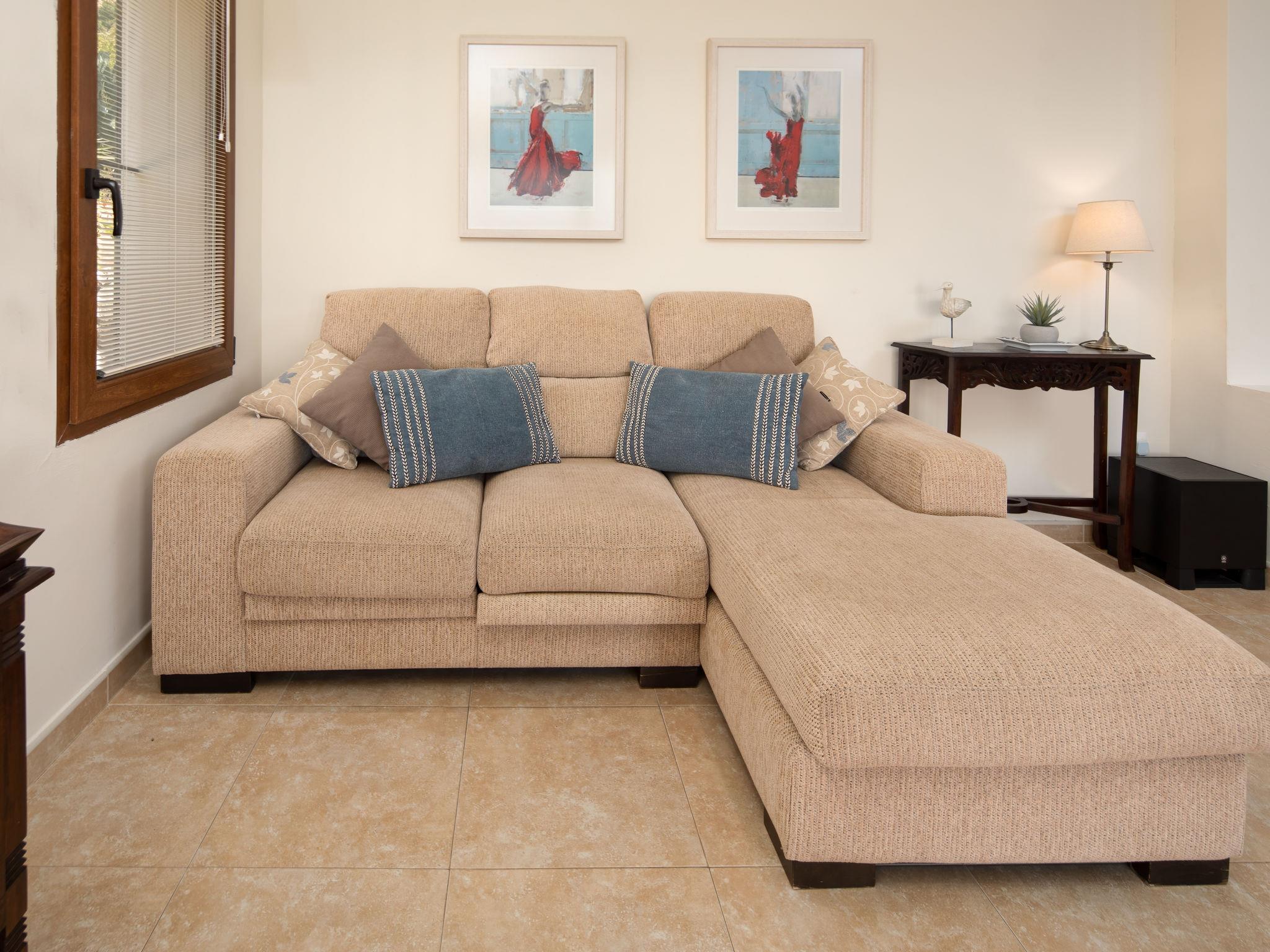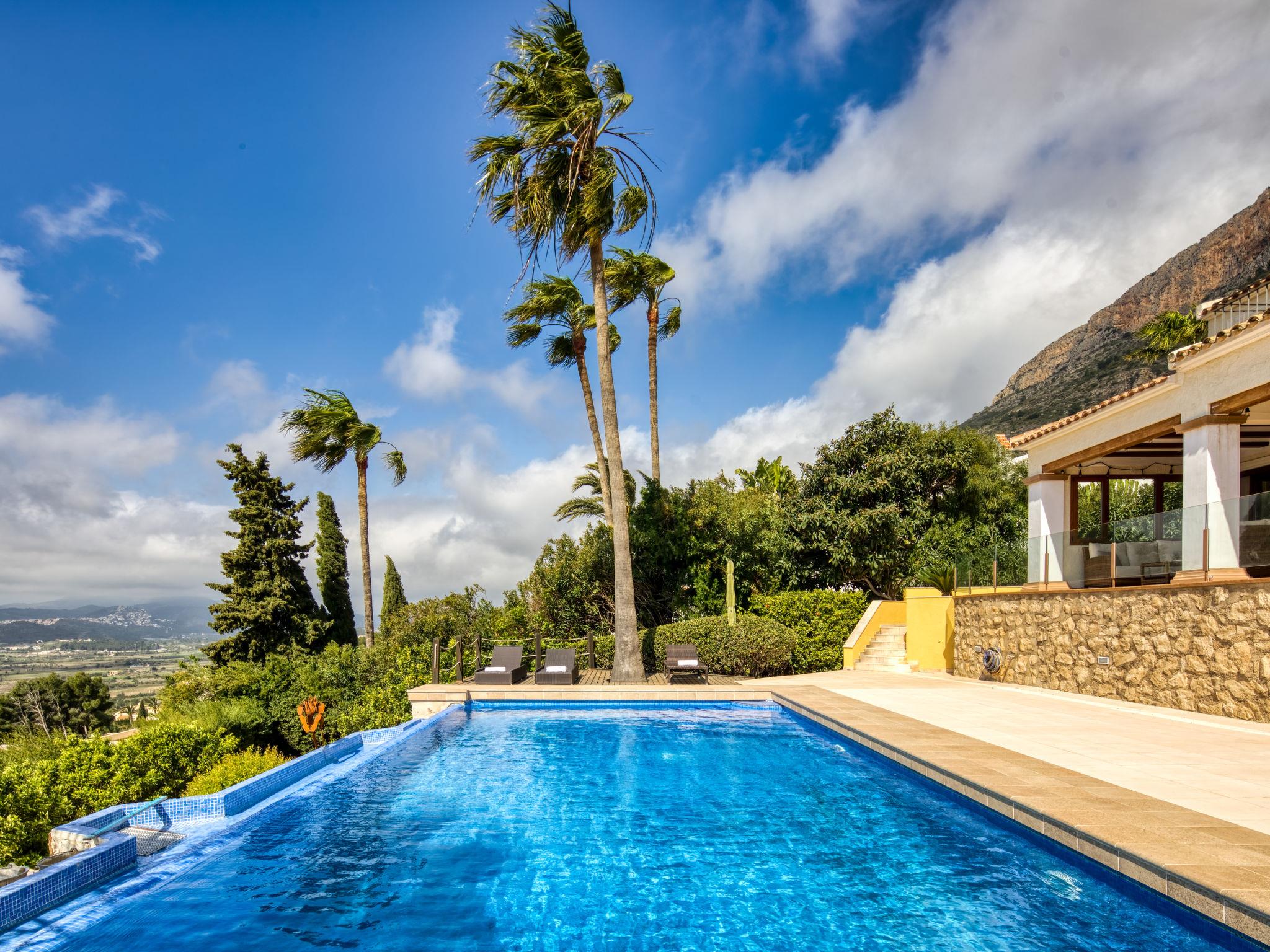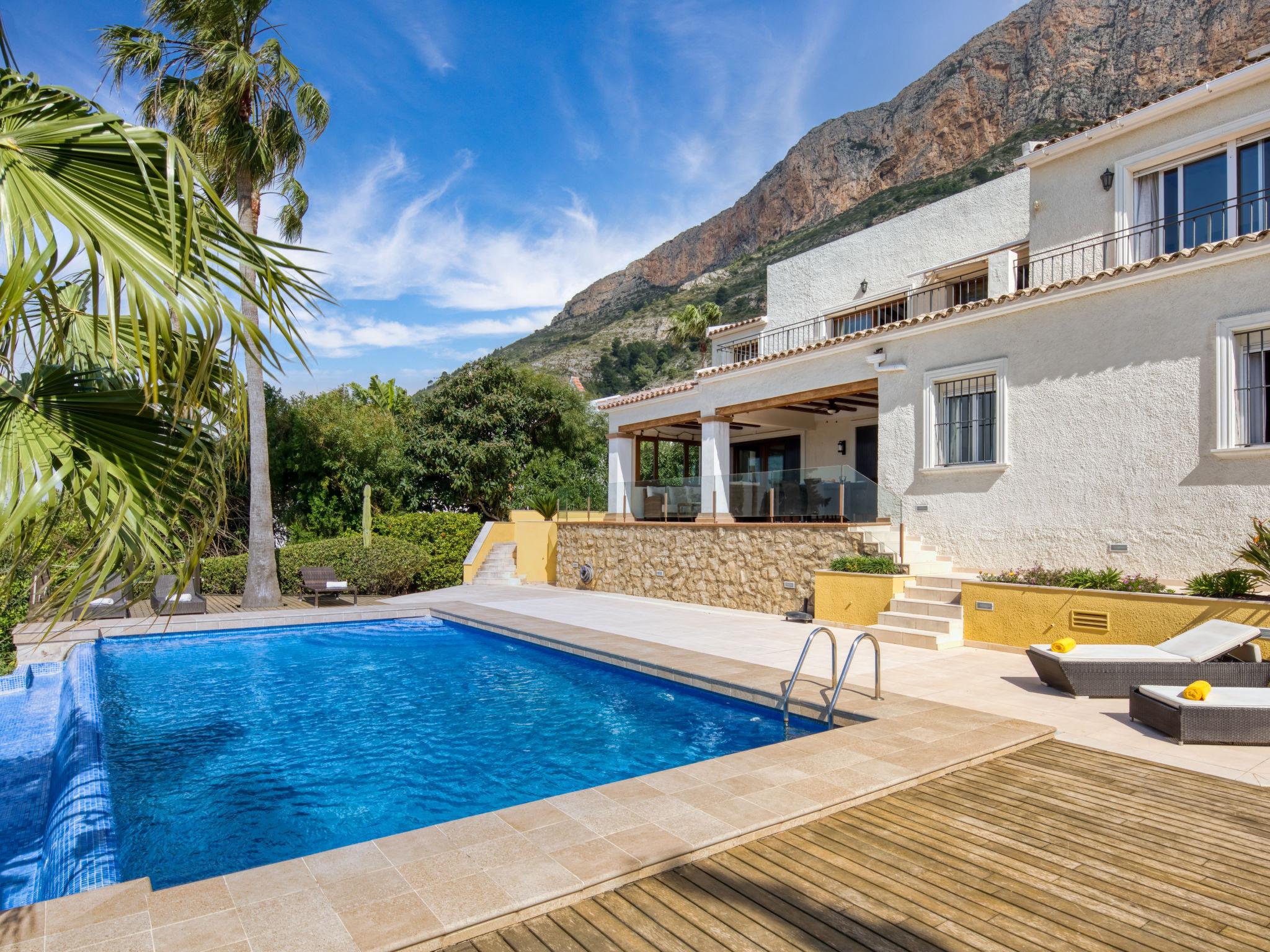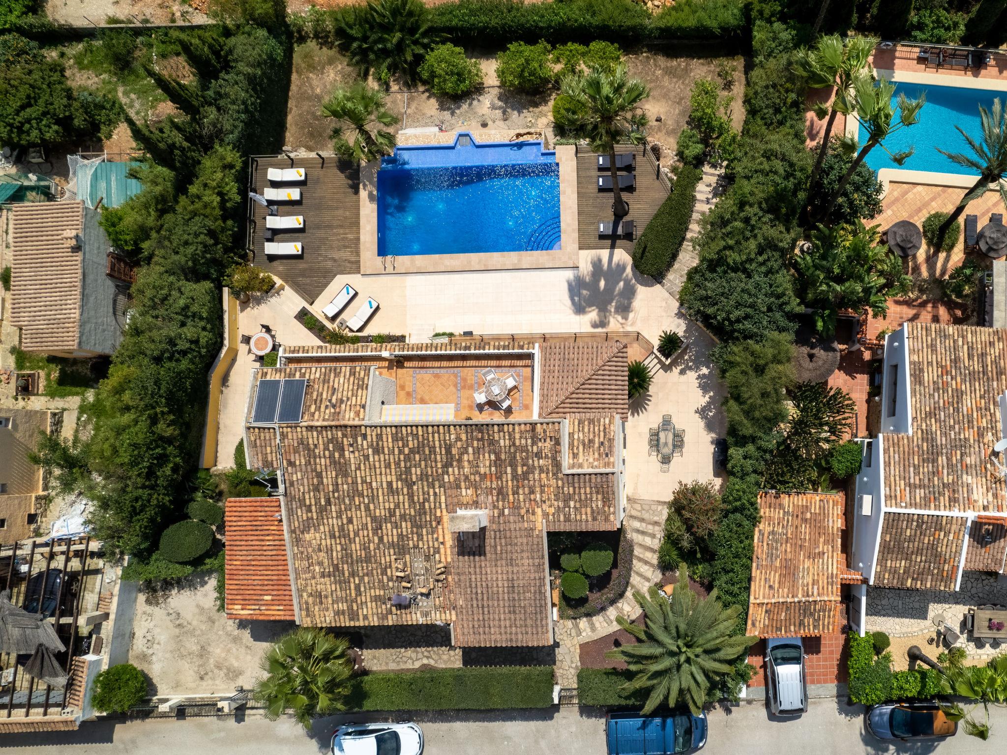 Beautiful villa "Centauro", 2 storeys. In the district of Montgo, in a quiet, sunny, elevated position in the residential district, 9 km from the sea. Private: terraced garden, 1'000 m2 (fenced) with wildlife garden, orchard, swimming pool (5 x 11 m, seasonal availability: 01.Jan. - 31.Dec.) with internal staircase. Supermarket 1.5 km, shopping centre 6 km, restaurant 1.5 km, bus stop 8 km, sandy beach "Arenal" 9 km. Groups of teenagers on request only.