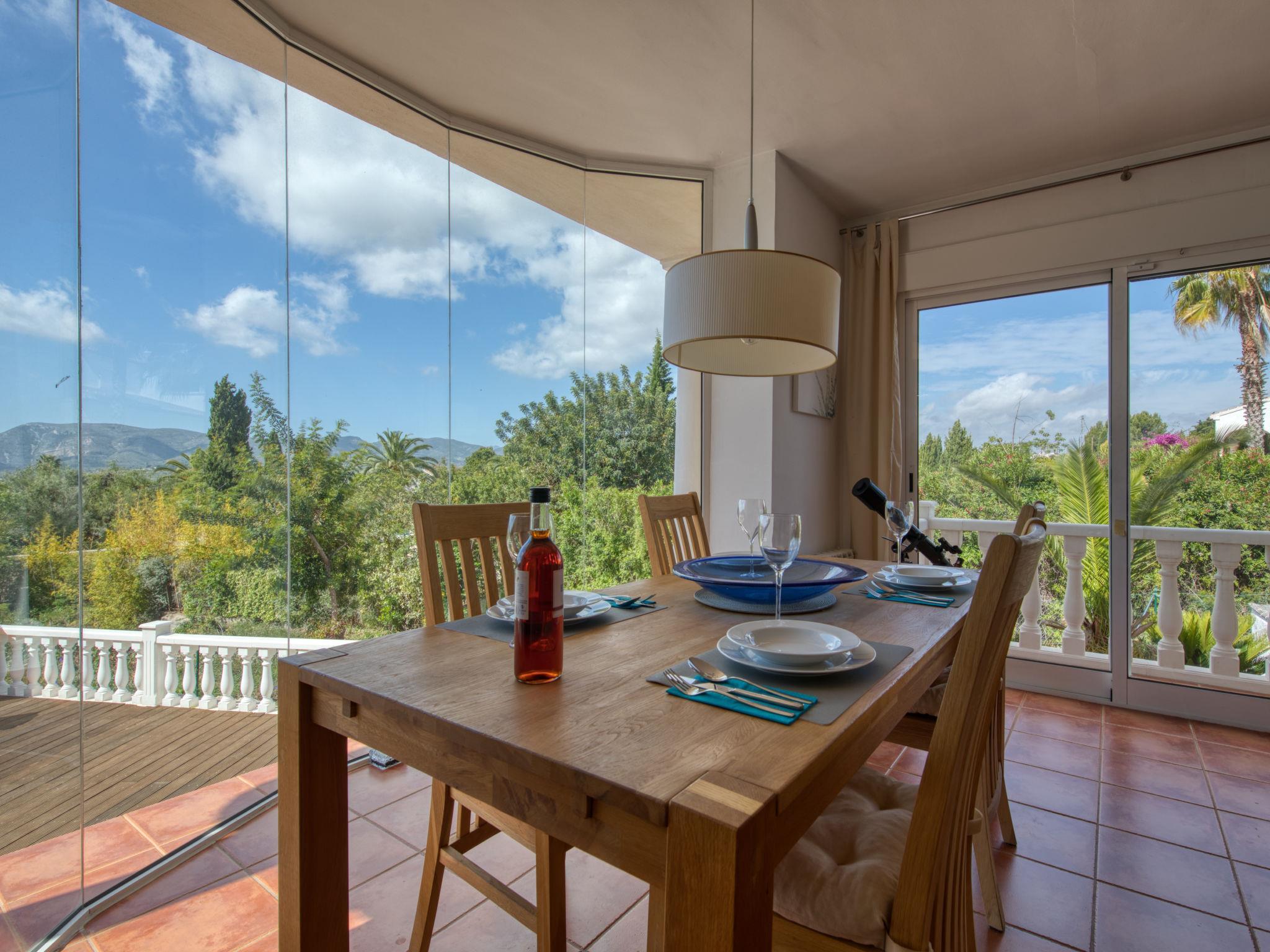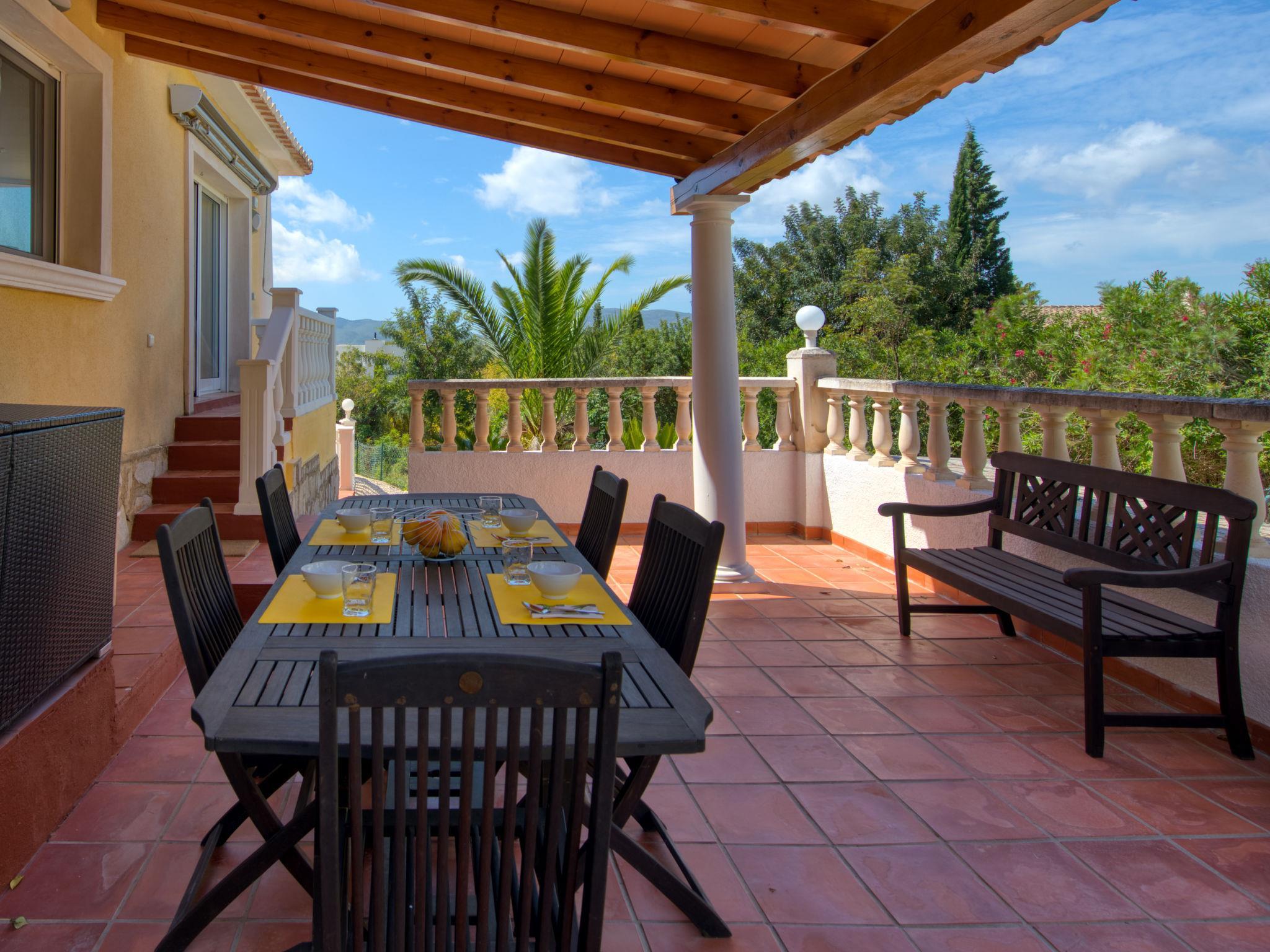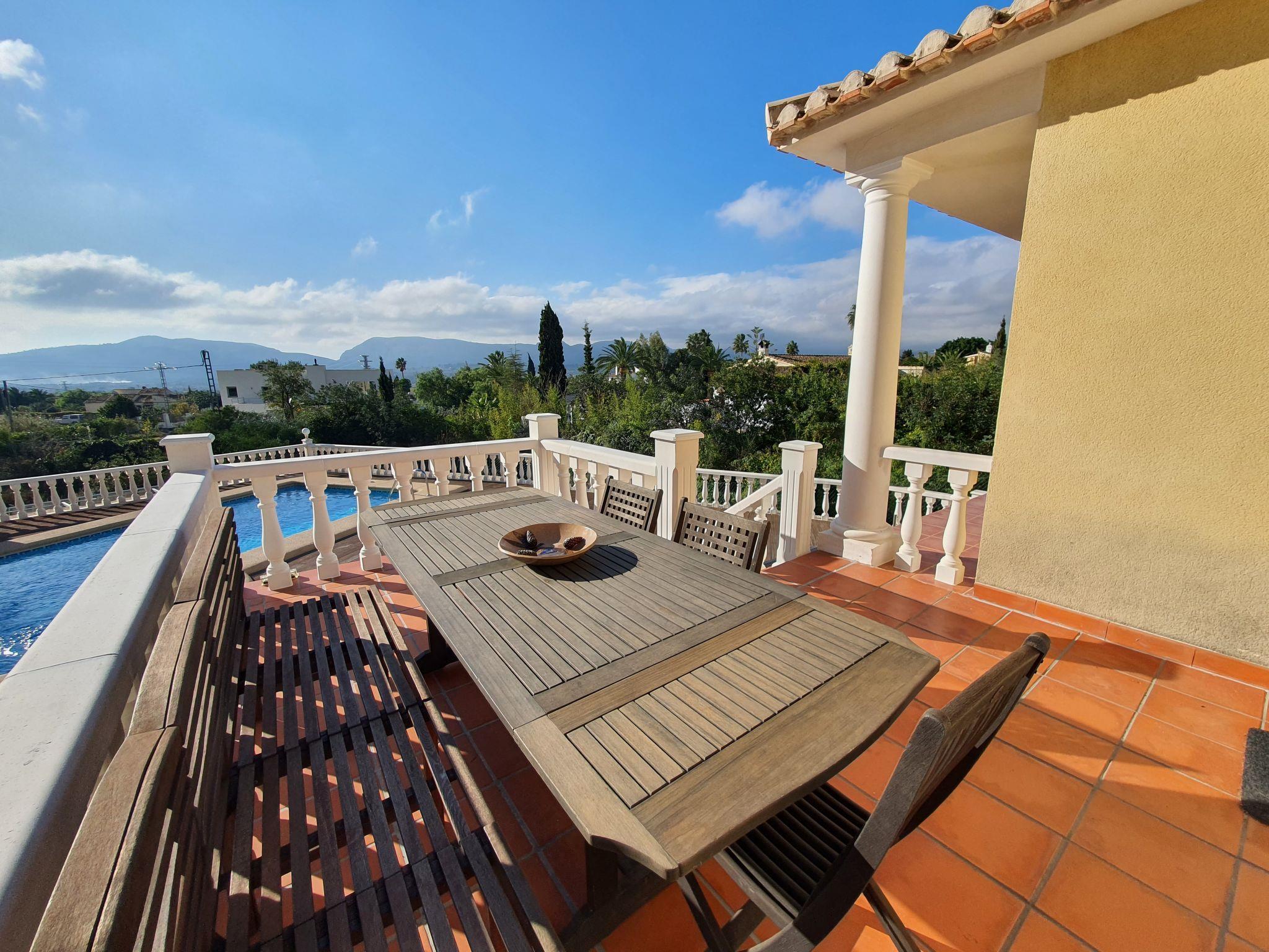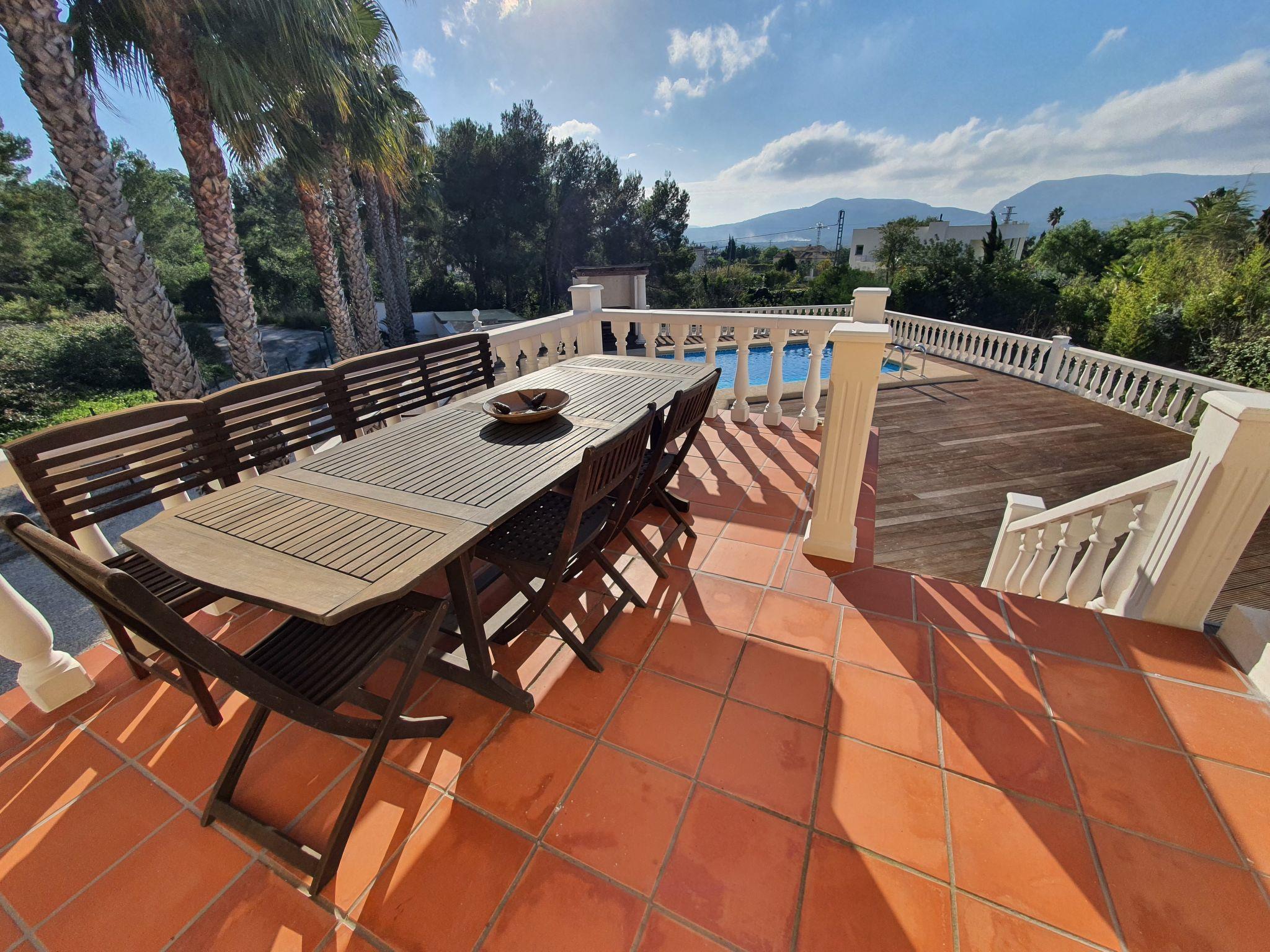 Beautiful house "Osa Menor". In the district of Montgo, in a quiet, sunny position in the residential district, 9 km from the sea. Private: large garden 1'550 m2 (fenced) with wildlife garden and trees, swimming pool (4 x 8 m, depth 100 - 180 cm, seasonal availability: 01.Jan. - 31.Dec.) with internal staircase. Outdoor shower. In the house: central heating system, burglar alarm system. Supermarket, restaurant 500 m, bus stop "Estacion de autobuses Javea" 6.2 km, sandy beach "Arenal" 9 km. Golf course (9 hole) 4 km. Groups of teenagers on request only.