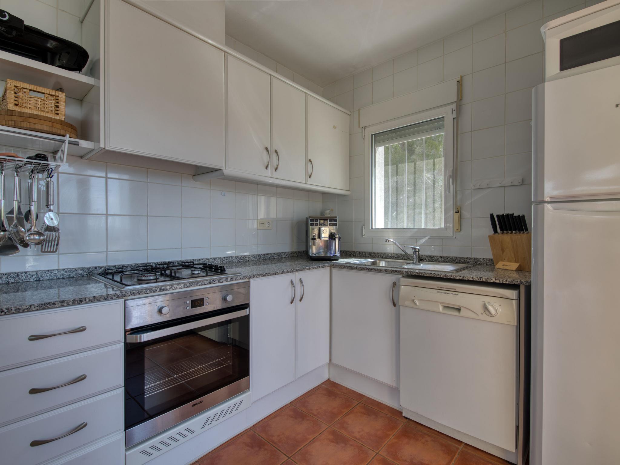 4-room house 106 m2. Tasteful furnishings: living/dining room with panoramic window with open-hearth fireplace, satellite TV, hi-fi system, DVD and air conditioning. Exit to the terrace. 1 room with 1 french bed (140 cm, length 200 cm), satellite TV and air conditioning. 1 room with 1 x 2 bunk beds (90 cm, length 200 cm), satellite TV and air conditioning. 1 room with 2 beds (180 cm, length 200 cm), satellite TV and air conditioning. Open kitchen (4 hot plates, oven, dishwasher, microwave, freezer, electric coffee machine) with small bar. 2 showers/WC. Terrace roofed. Terrace furniture, electric barbecue, deck chairs (4). Facilities: washing machine, iron, baby cot, hair dryer. Internet (WiFi, free). Parking (roofed) at the house. Please note: non-smokers only. TV only DE. To have in account: Covert terrasse with Sat-TV. AT-004548-A // Reg. Nr.: ESFCTU00000307100043189400000000000000000AT-004548-A9