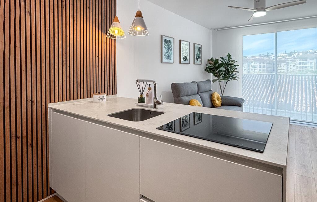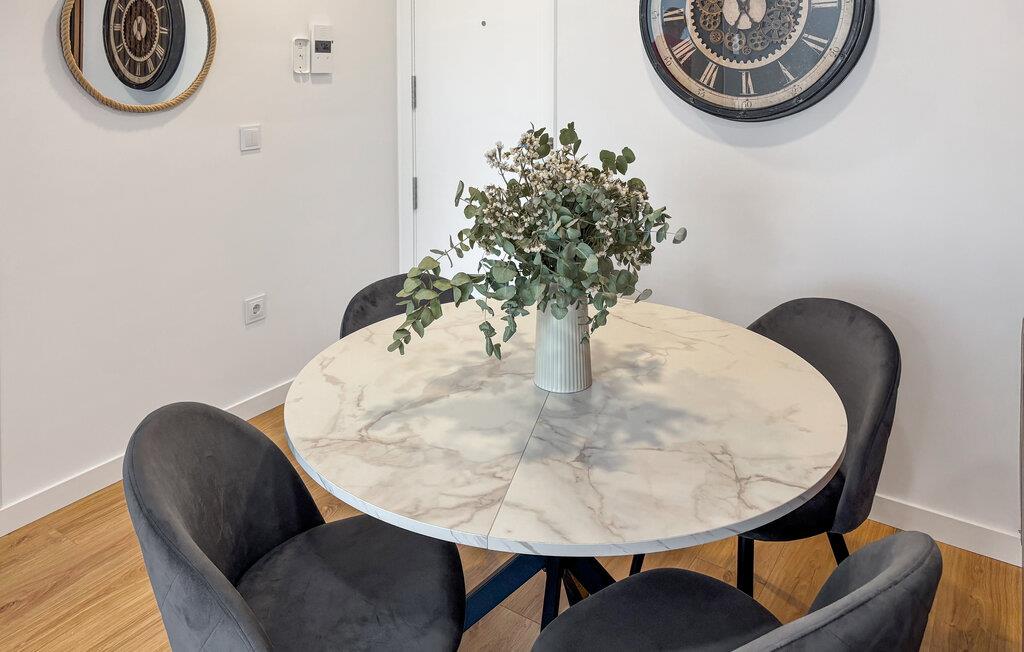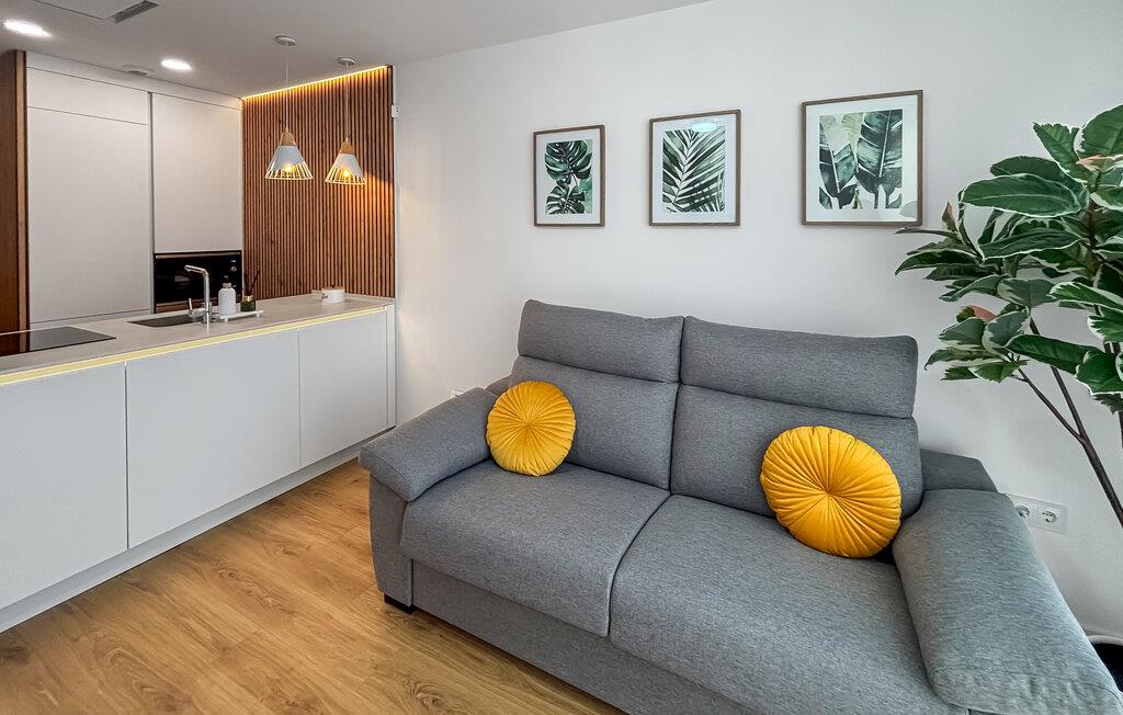 Denne lejlighed har en moderne, men hyggelig atmosfære. En komfortabel sofa over for fjernsynet og et praktisk køkken skaber en atmosfære, hvor I hurtigt kan slippe væk fra hverdagens travlhed. Stream de nyeste serier, tilbered friske måltider eller nyd blot udsigten over byens tage.