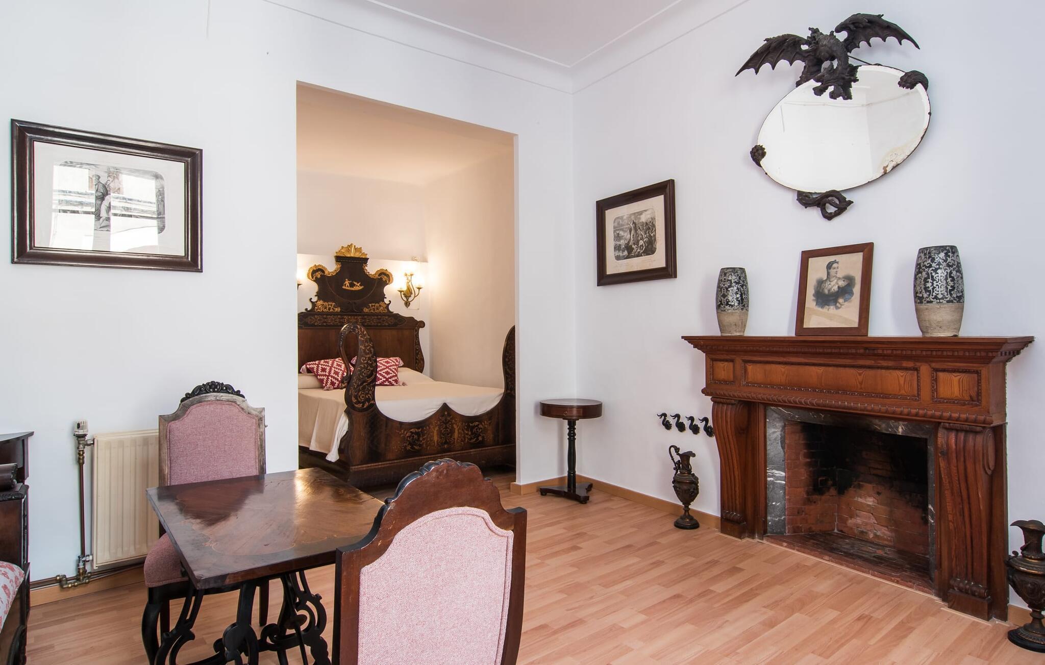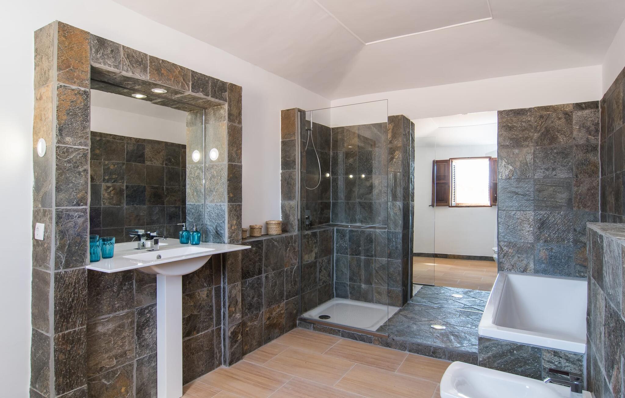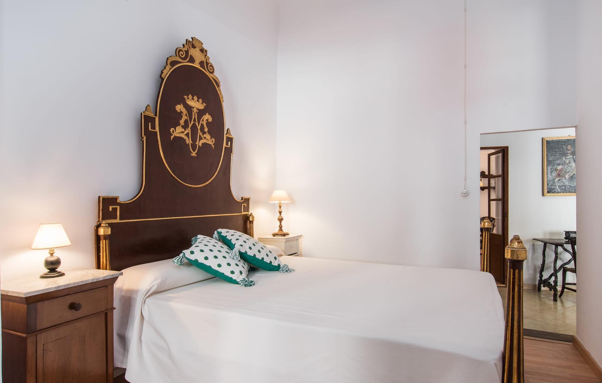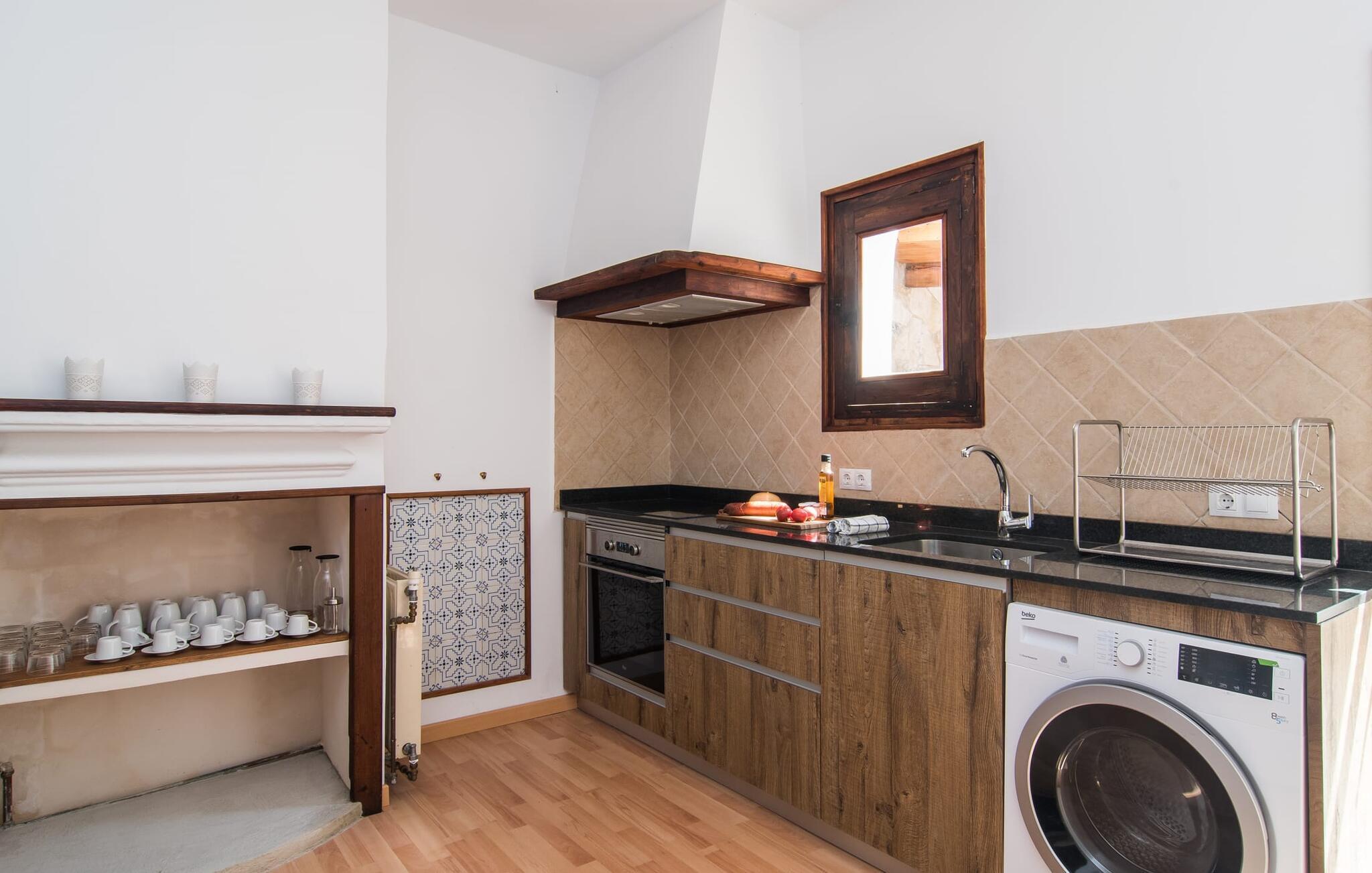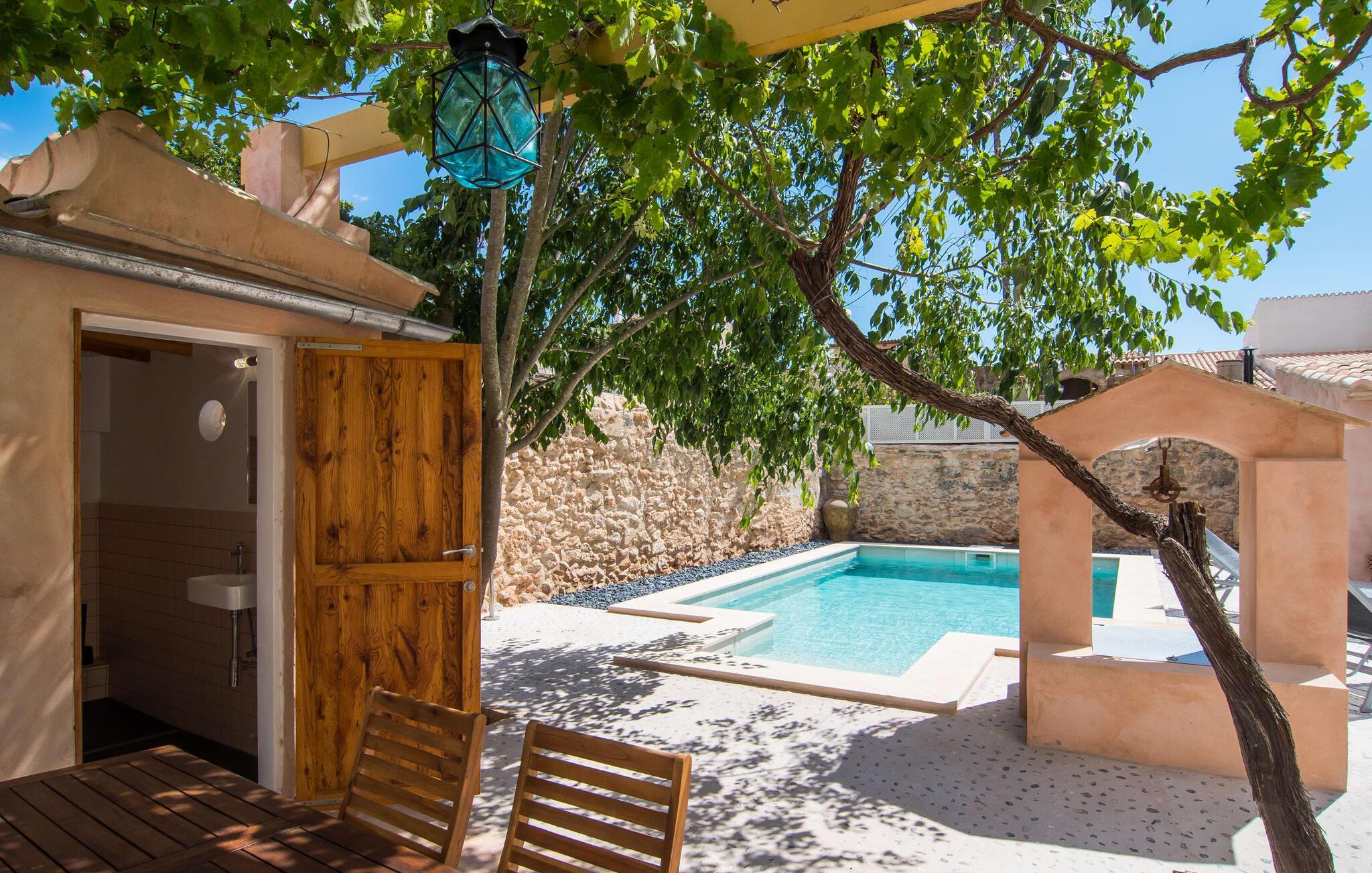 Nyder du at være blandt mennesker, være midt i travlheden, have en hyggelig snak med naboerne og frem for alt nyde godt af en central beliggenhed, der gør, at du kan gøre dine indkøb og restaurantbesøg til fods? Sætter du også pris på en autentisk, traditionel flair og elsker følelsen af, at historien kommer til live, mens du samtidig nyder moderne komfort? Så har du fundet det perfekte feriehus med det smukke rækkehus "Jaume II". Det er beliggende i Llucmajor i det sydlige Mallorca, i et typisk boligområde. Bag huset har du en oase: På ejendommen finder du ikke kun en skrånende pool med liggestole og parasoller, et udendørs badeværelse, et køkken og et brusebad, men også et stort, solrigt terrasseområde med forskellige siddemuligheder, nogle under træer . Lige ved siden af huset står spisebordet, hvor du kan servere grillede lækkerier. Ved siden af poolen, omgivet af naturstensvægge, kan du sætte dig til en siesta på komfortable loungemøbler. Store vinduer slipper lys ind, stemningen er præget af hvælvede stenlofter i nogle rum, mens mørke træbjælker er synlige i andre. Så snart du træder ind i huset, vil du straks føle dig som en spansk konge - antikke møbler, nogle kunstfærdigt udskåret og dekoreret med indlæg, samt oliemalerier i guldrammer udstråler en luksuriøs atmosfære. Trods den til dels historiske indretning fremstår huset ikke gammeldags – tværtimod. Gammelt og nyt er smagfuldt og dygtigt blevet kombineret her. De to badeværelser, for eksempel - et en-suite i stueetagen og et på øverste etage - er meget smarte og moderne og næsten puristisk flisebelagt med natursten. Køkkenet i stueetagen er også bevidst holdt enkelt, en fin kontrast til de gamle, stilrene møbler, der er at finde i de øvrige rum. Der er endda plads til et klaver i det rummelige indgangsparti. Der er også to spisestuer og en stue med en dejlig stor sofa og udsigt udenfor. Der er i alt tre soveværelser i stueetagen og øverste etager, alle med imponerende, næsten majestætiske træsenge, hvoraf det ene endda er udstyret med pejs. Omkring dit hus kan du tage afslappende gåture gennem kvarteret og ind i de landlige omgivelser. Llucmajor, malerisk omgivet af abrikos- og mandellunde, skabte engang et navn for sig selv som et industricenter. Byen blev især berømt for produktion af sko, men den dag i dag er der ikke fokus på turisme – hvilket er en stor del af dens charme. Når du slentrer gennem byens gader, finder du ikke kun alt, hvad du behøver til det daglige liv, men også nogle få historiske bygninger, såsom Placa d'Espanya rådhus, San Miguel kirke fra det 18. århundrede på Placa Santa Catalina Tomas, barokke klosteret San Bonaventura, skomagermonumentet ved den vestlige byport og monumentet til Jaime III. Det ugentlige marked finder sted hver søndag. For en tur til stranden kan du køre 13,7 km til S'Arenal ad vejen, der fra tid til anden kan høres fra dit hus. Fint, hvidt sand, skyggefulde palmer og en livlig promenade venter dig her. "Jaume II", et smukt, historisk og stilfuldt renoveret rækkehus venter dig på den sydlige del af øen. Den centrale beliggenhed gør, at du nemt kan nå butikker og restauranter til fods - og stadig nyde et rummeligt terrasseområde omgivet af rustikke naturstensmure og gamle træer samt en skrånende pool og et udekøkken. Byens centrum ligger kun omkring 1,4 km væk, og den nærmeste strand, S'Arenal, er 13,7 km væk. Dette er et Fincallorca feriehus.