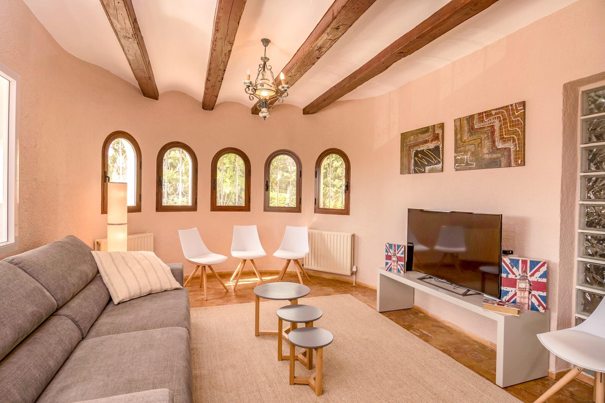 Rummeligt Coastal Retreat Denne villa ligger kun 5 km fra Arenal-stranden og tilbyder en indbydende base for at nyde Costa Blancas charme. Indenfor inkluderer lyse opholdsrum en komfortabel lounge med internationalt tv og Netflix, en spiseplads til gruppemåltider og et fuldt udstyret køkken med Nespresso, opvaskemaskine og pantryopbevaring. Store skydedøre åbner ud til en overdækket terrasse med siddepladser og spisepladser, der blander indendørs komfort med udendørs udsigt. Med flere soveværelser på tværs af to niveauer, aircondition og centralvarme, er hjemmet designet til familier eller grupper året rundt. Udsigt og udeliv Ejendommens have skaber en fredfyldt atmosfære, komplet med en privat pool med udsigt over Montgó-bjerget, liggestole og skyggefulde terrasser til eftermiddagspauser. En petanquebane tilføjer et legende touch, mens børn er godt indkvarteret med tremmesenge, højstole og slidstærkt legetøj. Rigelig parkering til fem køretøjer sikrer nem ankomst, mens anlagte grunde og velholdte terrasser inviterer til lange aftener sammen under middelhavshimlen. Spisning og lokale smagsoplevelser Ud over villaen byder den livlige Arenal-promenade på strandlounger, tapasbarer og restauranter kun få minutter væk. For golfspillere ligger det berømte La Sella Golf Resort & Spa inden for 6 km, mens nærliggende landsbyer byder på gastronomisk spisning elsket af lokalbefolkningen. Uanset om de nyder fisk og skaldyr ved kysten, udforsker Javeas gamle bydel eller blot forbereder en afslappet middag derhjemme, kan gæsterne balancere udforskning med komfort.