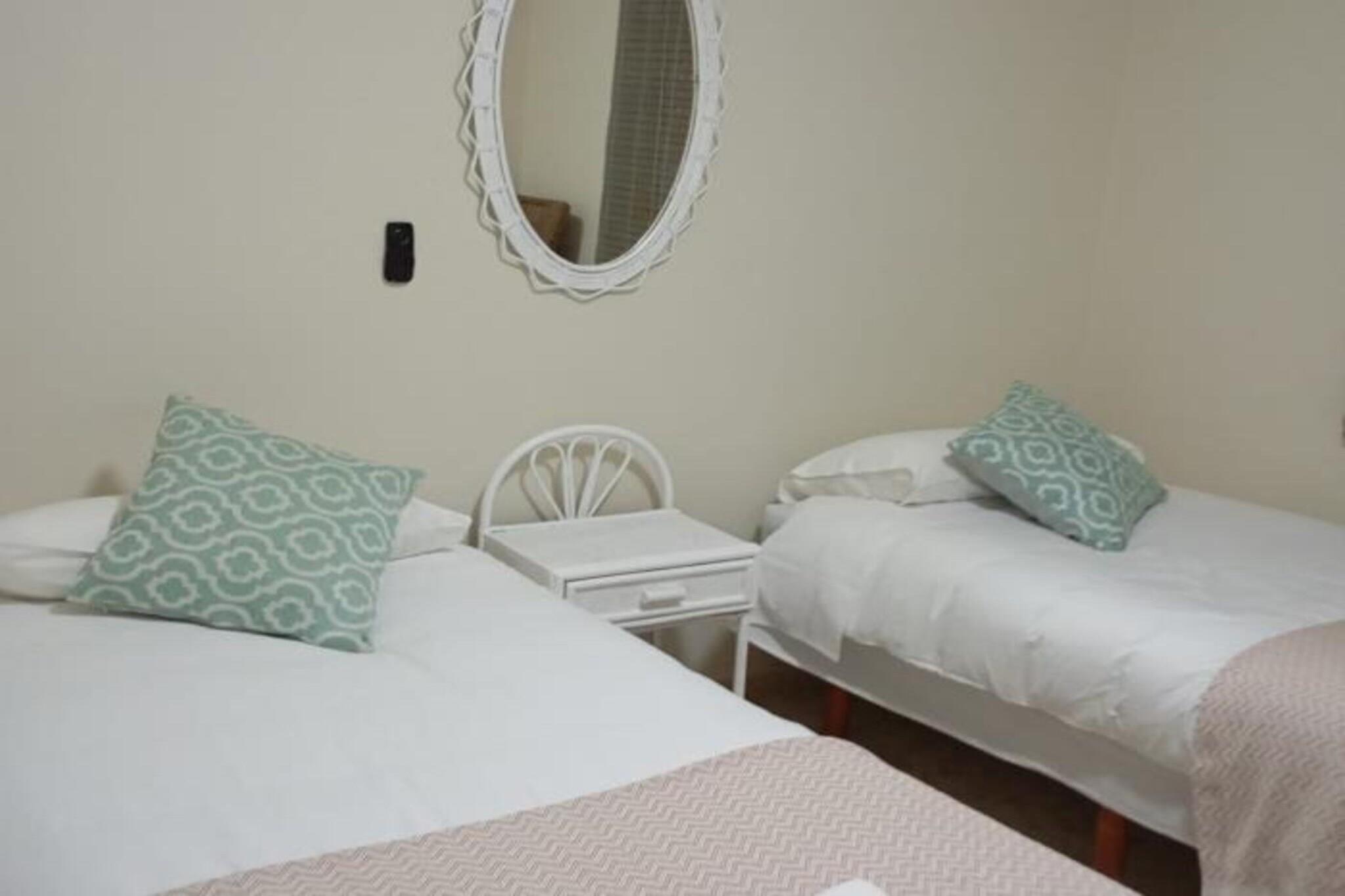 Dette rummelige feriehus i Jerez de la Frontera er et perfekt fristed for familier eller grupper. Med fem soveværelser og to badeværelser kan det komfortabelt rumme op til ti gæster. Det fuldt udstyrede køkken har køleskab, opvaskemaskine, ovn og mikroovn, så det er nemt at tilberede måltider under dit ophold. Stuen med sofa, tv og hyggelig pejs er et afslappende sted at slappe af. Udenfor har ejendommen en privat pool, møbleret terrasse og grillplads, alt med udsigt over den frodige have. Gæsterne kan nyde udendørs spisning eller blot slappe af ved poolen i fuldstændig privatliv. Gratis privat parkering og en separat indgang sikrer bekvemmelighed og ro i sindet under hele dit ophold. Yderligere faciliteter omfatter vaskemaskine, tørretumbler, strygejern og køkkenredskaber. Rygning er tilladt i dertil indrettede områder. Dette feriehus kombinerer moderne komfort med en rolig beliggenhed og er et ideelt udgangspunkt for at udforske Jerez, nyde det lokale køkken og opsuge den andalusiske charme.