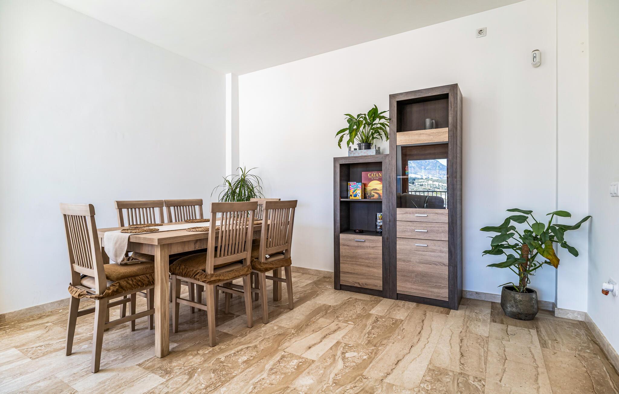 Føl jer hjemme i dette rummelige feriehus og glæd jer til en harmonisk pause nær spændende udflugtsmål. Lav lækre tapas sammen i det indbydende køkken, planlæg jeres aktiviteter over et glas vin eller slap af i den behagelige sofa med en god film.