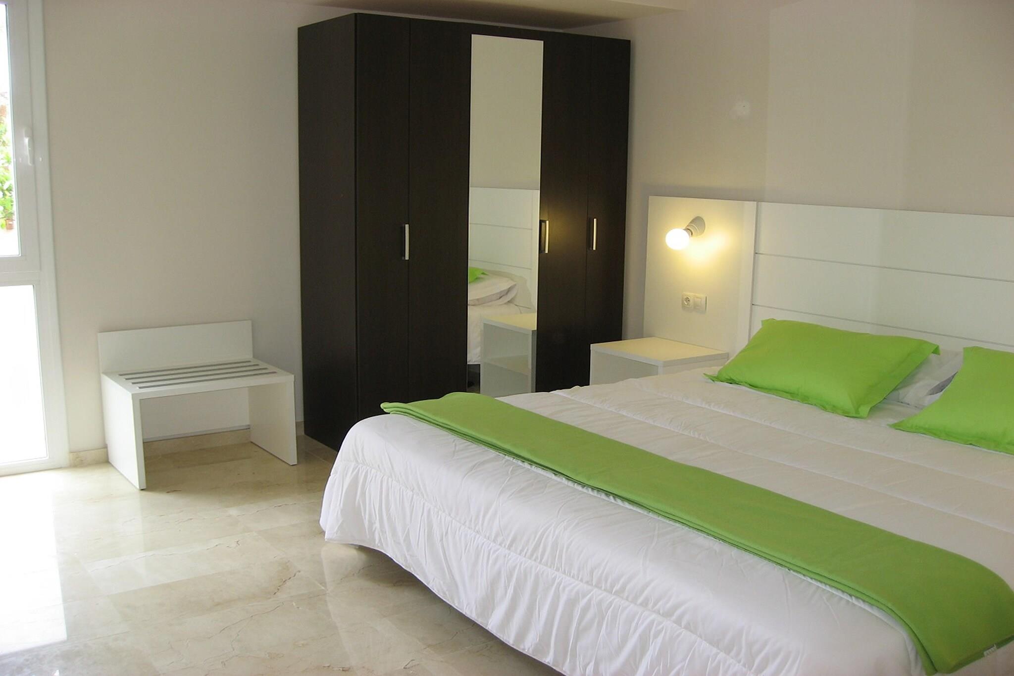Disse moderne dobbelthuse, hver med to stilfulde lejligheder, tilbyder et iøjnefaldende arkitektonisk design i udkanten af La Escala. Den smukt anlagte have med palmer, oleandere og andre planter skaber en rolig oase. Med en pool og masser af plads til at slappe af under solen, er det det perfekte sted at slappe af. Interiøret er moderne, med et velkoordineret farveskema og rene linjer, hvilket giver et lyst og luftigt opholdsrum. Denne ejendom ligger kun 1,5 km fra stranden og den maleriske "Els Riells"-promenade og tilbyder nem adgang til lokale attraktioner. La Escala, beliggende i den sydlige Roses-bugt i det nordøstlige Catalonien, er kendt for sin fantastiske naturlige skønhed og livlige atmosfære. Gæsterne kan nyde en række aktiviteter, herunder cykeludlejning, minigolf, tennis og dykning. Den charmerende gamle bydel tilføjer et kulturelt præg til området. Feriekomplekset tilbyder fremragende faciliteter, herunder tre fælles udendørs pools, sammen med fire mindre pools (18 kvm) åbne fra april til oktober. Slap af på liggestolene eller nyd den fælles terrasse med havemøbler og parasoller. Der er gratis trådløs internetadgang i receptionen, og yderligere tjenester såsom massage og cykeludlejning er tilgængelige mod et gebyr. Bemærk venligst, at ejendommen ikke er egnet til personer med nedsat mobilitet.