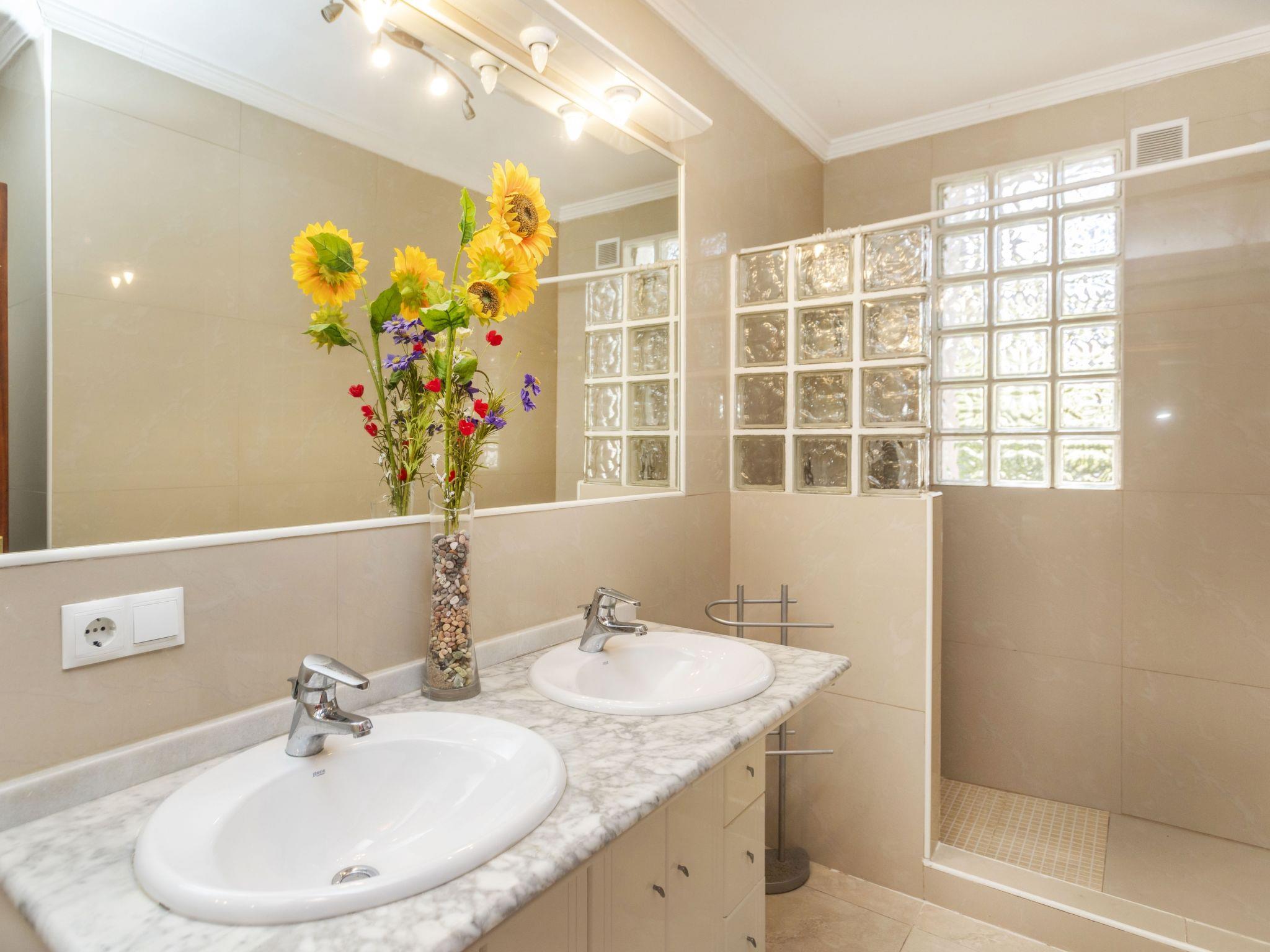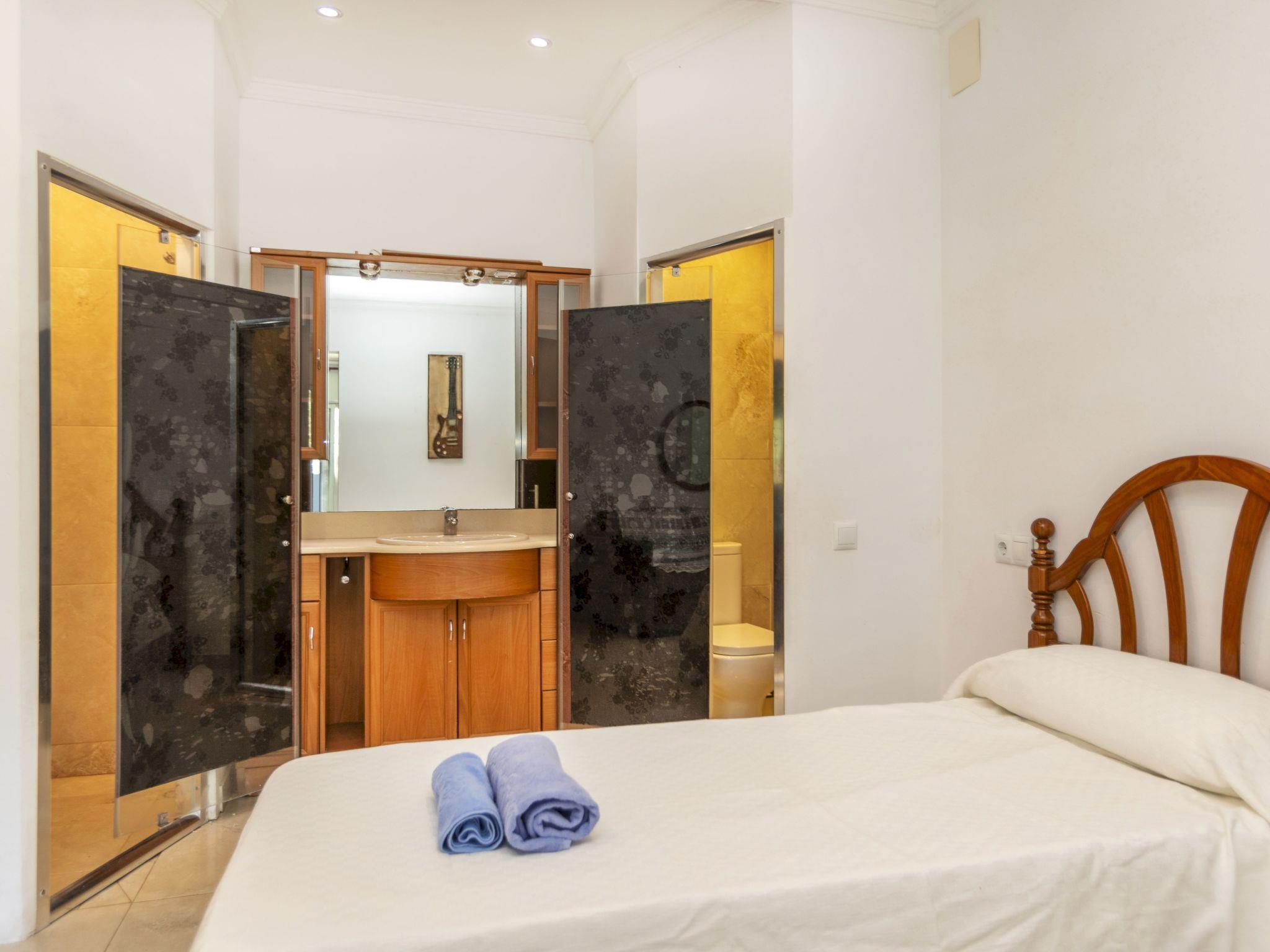 "Retiro", 4-room villa 105 m2. Comfortable and cosy furnishings: living/dining room with dining table, satellite TV, digital TV and fan. Exit to the terrace. 1 room with 2 beds (90 cm), 1 french bed (135 cm), shower/WC and fan. 1 room with 1 french bed (135 cm). 1 room with 1 x 2 bunk beds (90 cm). Kitchen (oven, dishwasher, 4 ceramic glass hob hotplates, toaster, kettle, microwave, electric coffee machine). Shower/WC. No heating option. Patio. Terrace furniture, barbecue. Facilities: washing machine, iron, hair dryer. Internet (WiFi, free). Parking at the house. HUTTE-002734