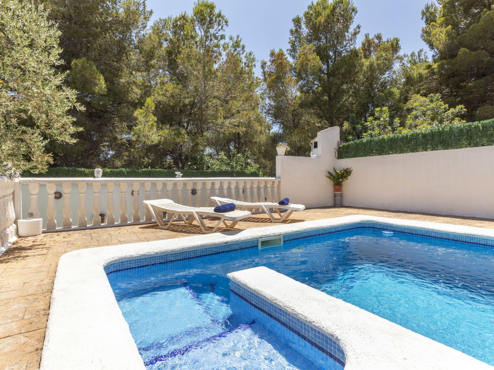 Urb. Les Tres Cales 4 km from L'Ametlla de Mar: Beautiful, comfortable villa "Retiro". In the centre of Las 3 Calas, outside the resort, in a sunny position, 800 m from the sea, 800 m from the beach. Private: property 900 m2 (fenced), swimming pool angular (8 x 4 m, depth 80 - 190 cm, seasonal availability: 01.May. - 31.Oct.). Boules, terrace, garden furniture, barbecue, pool maintenance by the owner/gardener. Parking at the house. Grocery 1.2 km, supermarket 1.2 km, restaurant 1.2 km, bar 1.2 km, café 800 m, internet café 1.1 km, bus stop "urbanizacon las Tres Calas" 1.5 km, railway station "L'Ametlla de Mar" 5 km. Sports harbour 1.2 km. Nearby attractions: Parque Portaventura 48 km, parque Aquopolis 51 km, parque natura del Delta del Ebro 35 km, Tarragona 57 km, Reus 48 km, Barcelona 153 km. Please note: car recommended. Groups of teenagers on request only. Motorway close by.