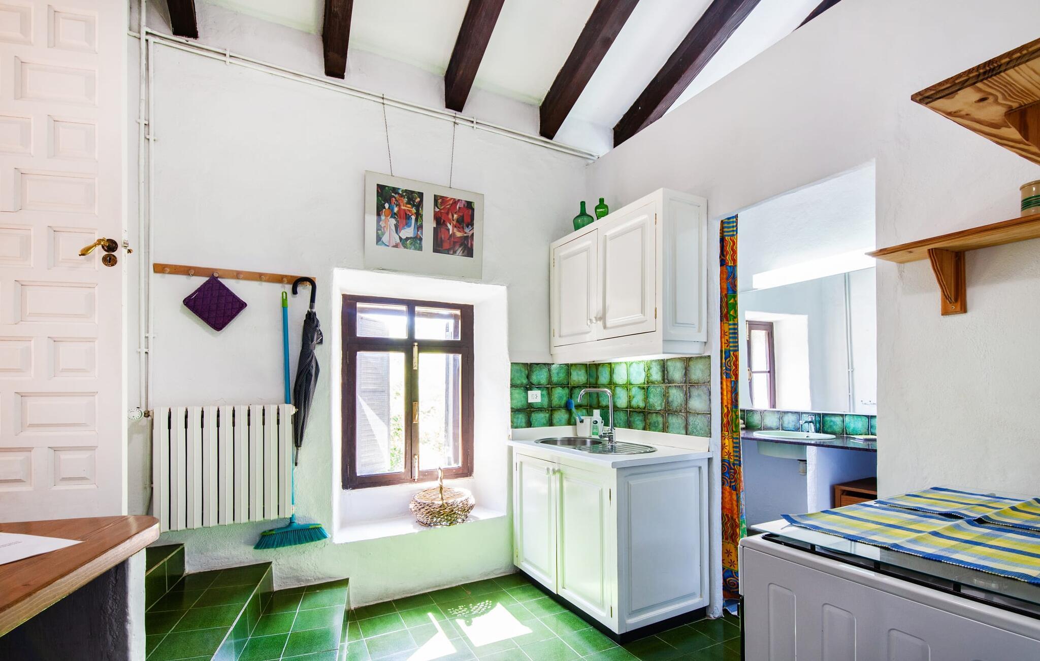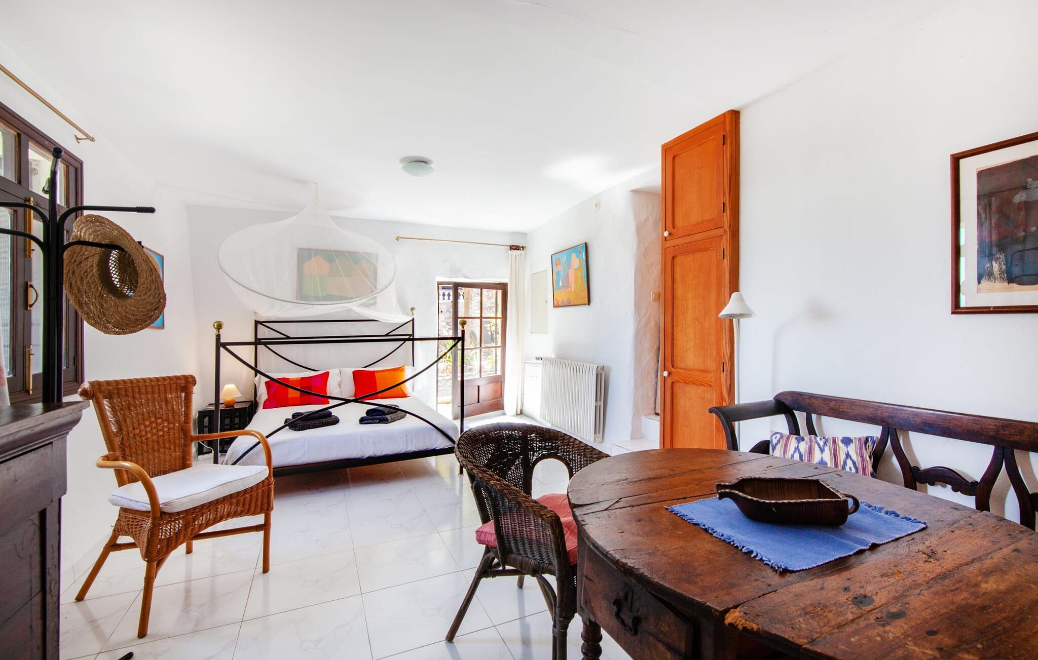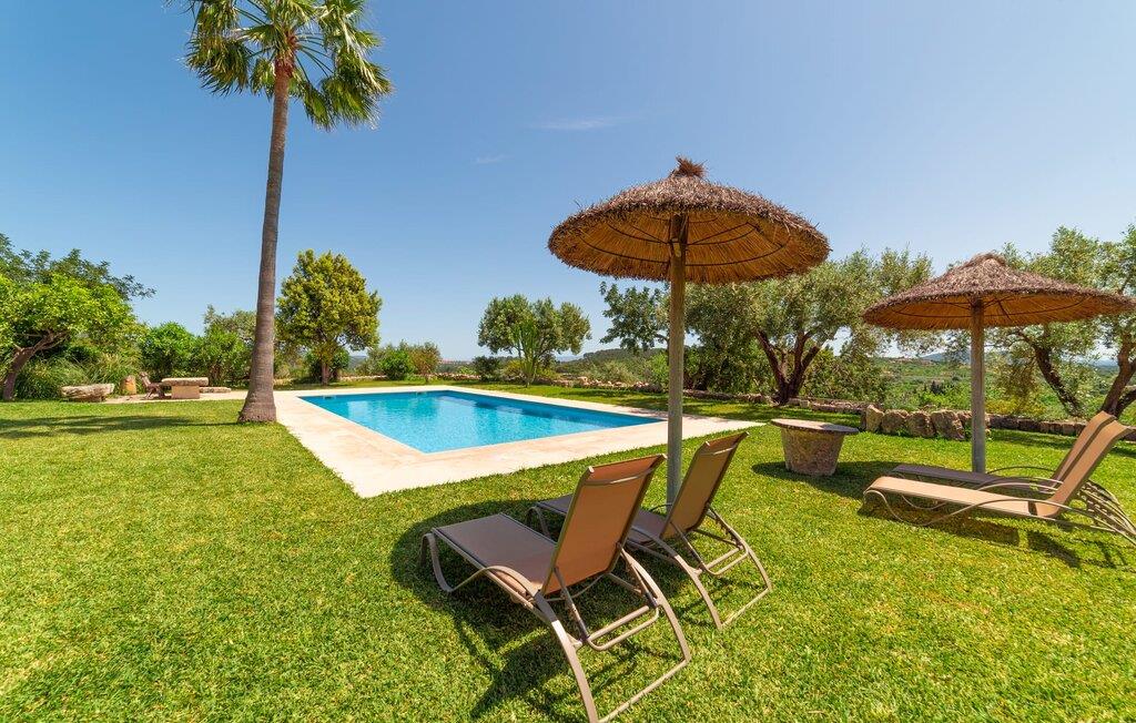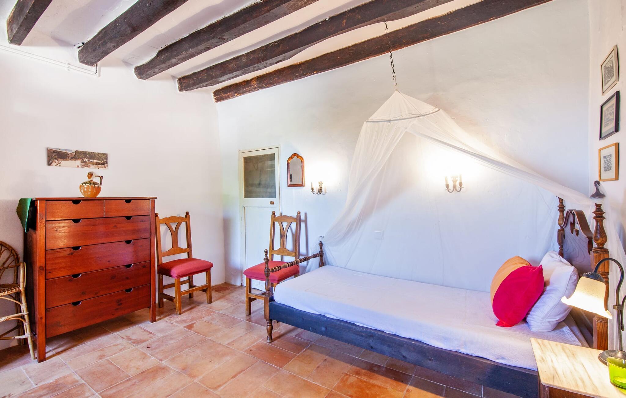 "La Alqueria Autumn" blander sig vidunderligt harmonisk ind i det bakkede landskab ikke langt fra Sierra de Tramuntana - farver og former bliver næsten et med deres omgivelser i deres naturlighed. Med sine forskellige niveauer og halvhøje vægge minder denne finca på Mallorca om en lille fæstning fra oldtiden, et par kunstneriske detaljer og en smuk gårdhave. Mens I beundrer udsigten fra den overdækkede terrasse lige ved siden af huset, fortsætter jeres blik med at vandre længere ud i det fjerne. Det beskyttede sted midt i landskabet kunne næsten ikke være mere rustikt. Poolen ligger lidt af vejen og er med sine 12 m længde virkelig værd at se. Velholdt græsplæne, udendørs bruser og en fremragende palme En særlig feriefølelse - alt er der. En stilfuld gasgrill. Nogle gange endda i skyggen. I alt 500 m² behagelig plads er til rådighed for feriegæster her. Denne finca på Mallorca imponerer med traditionel mallorcansk charme og en original blanding af gamle og nye stilarter. Der er den enorme stue med pejs og sofahjørne, som har plads nok til alle. Lige ved siden af er køkkenet med et rustikt spisebord og subtile farveaccenter. Fra hestestalden til lejligheden: dette hus har altid overraskelser i vente og er simpelthen praktisk for større familier. Der er fem badeværelser (fire en suite), et vaskerum og en anden lille stue med TV. Derudover har “La Alqueria Herbst” fire dobbeltværelser og to enkeltværelser - hvoraf tre er tilgængelige udefra, så her er ikke kun en masse omgængelighed, men også maksimalt privatliv muligt. Fincaen "La Alqueria Herbst" er idyllisk placeret i udkanten af landsbyen, cirka en halv kilometer nordøst for landsbyens centrum af Caimaris med restauranter, butikker og den gamle Cas Menescal oliemølle. Feriefincaen er et autentisk bjerghus på en skråning, med trapper, naturstensvægge og en gammel brønd. Vær opmærksom på, at I bør rejse med børn. Fincaen er omgivet af smukke oliventræer og ved foden af Sierra de Tramuntana, som byder på utallige muligheder for at udforske den smukke natur. Strandelskere tager til Alcúdia, 25 km væk - og måske tage en afstikker til Inca, det livlige ugentlige marked. Bemærk venligst, at denne ejendom ikke accepterer ungdomsgrupper eller polterabender. En ungdomsgruppe på denne ejendom består af personer på 24 år eller derunder. Book ikke denne ejendom, hvis I er en ungdomsgruppe eller polterabend, da jeres reservation vil blive afvist, når den er booket, hvilket også kan være tilfældet ved ankomst til ejendommen eller under jeres ophold, og I vil ikke modtage en refusion