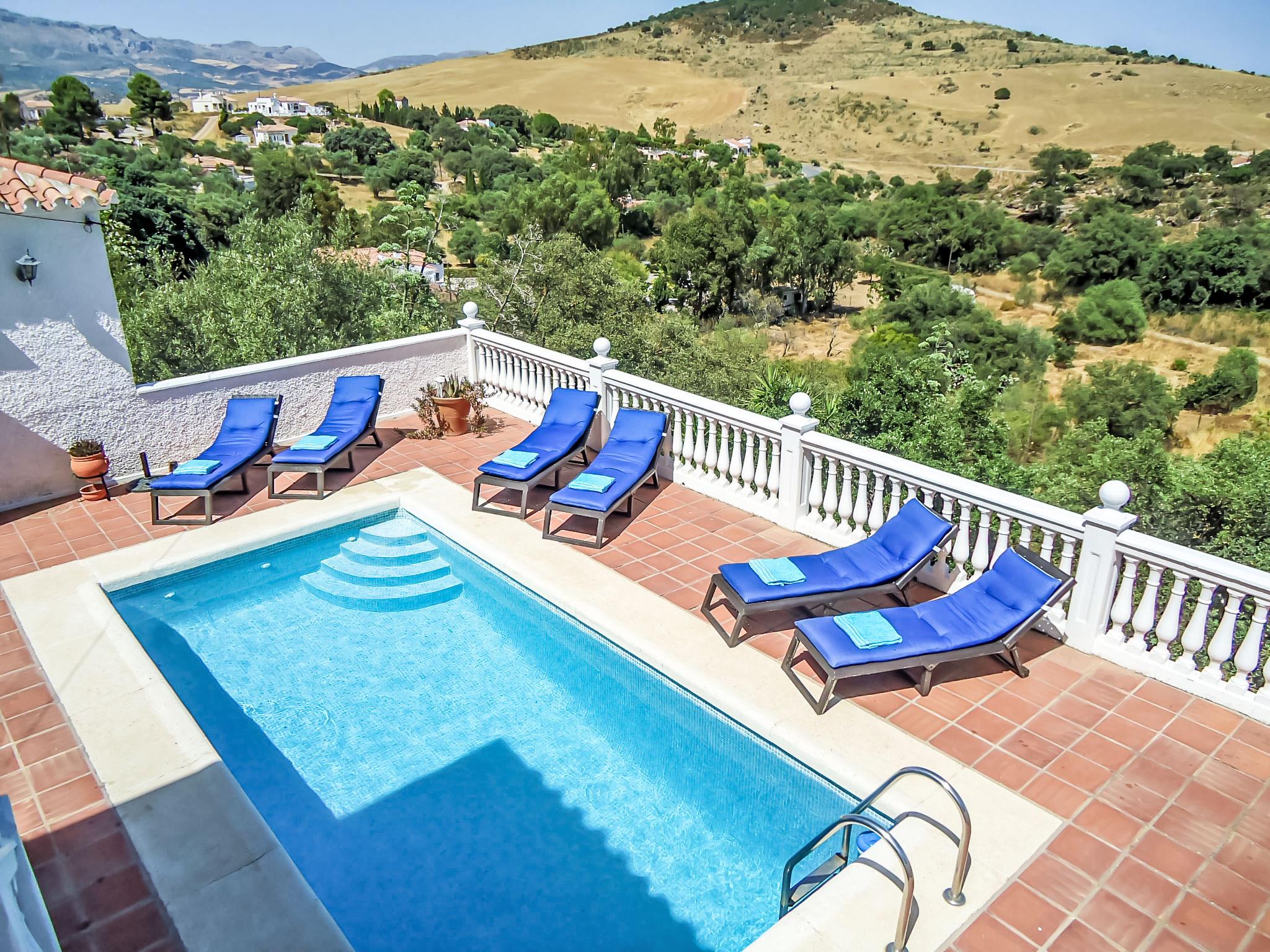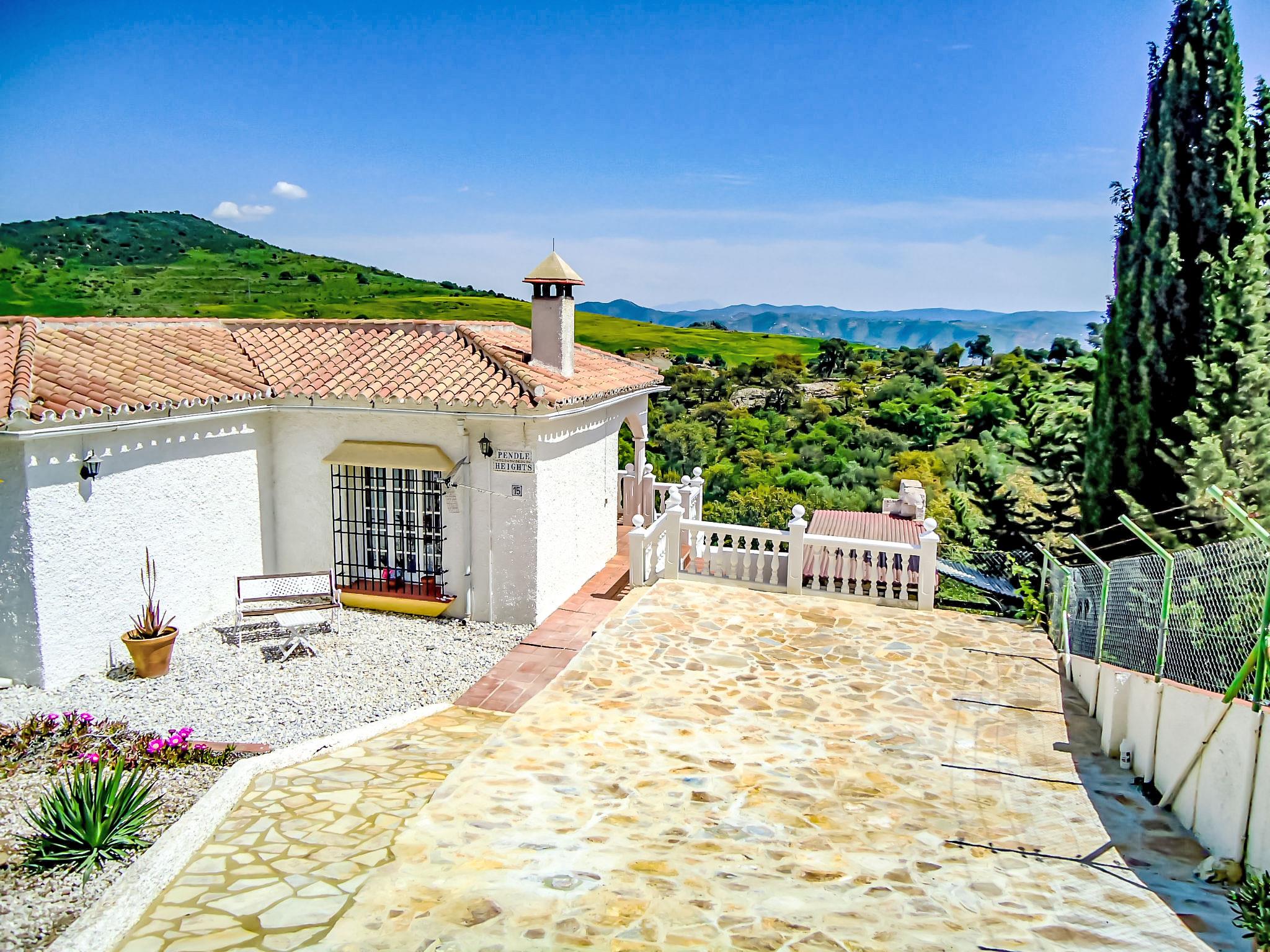 House "Pendle heights", built in 1989. 25 km from the centre of Málaga, outside the resort, 6 km from the centre of Almogia, in a quiet, sunny position, 25 km from the sea, in the countryside. Private: property 3'700 m2 (fenced), garden, swimming pool angular (13 m2, depth 200 - 100 cm, seasonal availability: 17.Apr. - 01.Oct.). Barbecue, parking at the house. Grocery 6 km, supermarket 6 km, restaurant 3 km, bus stop 5 km, sandy beach 25 km.