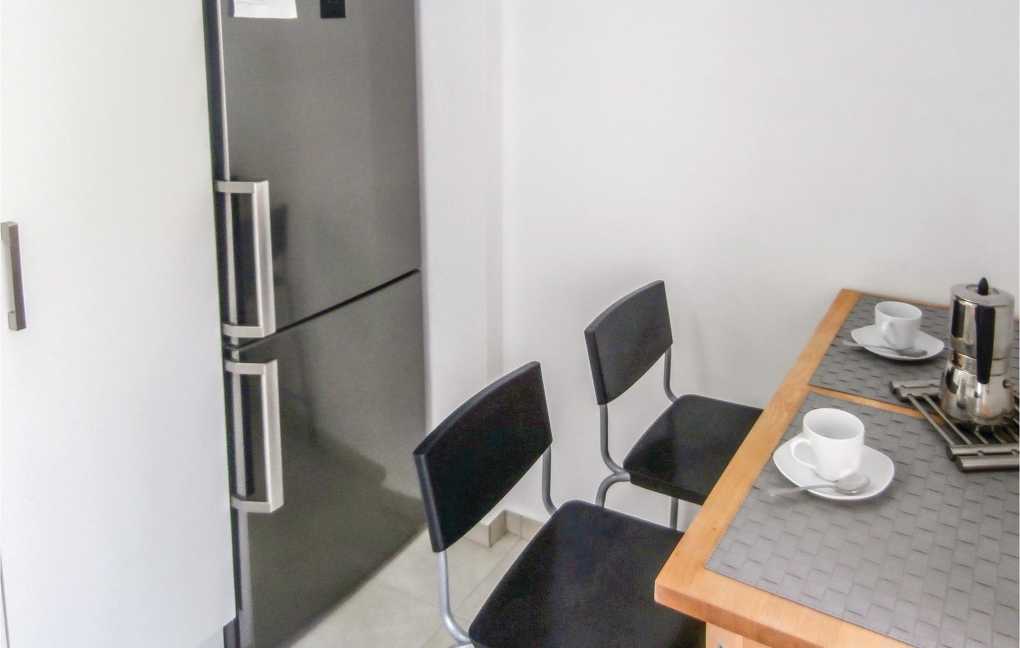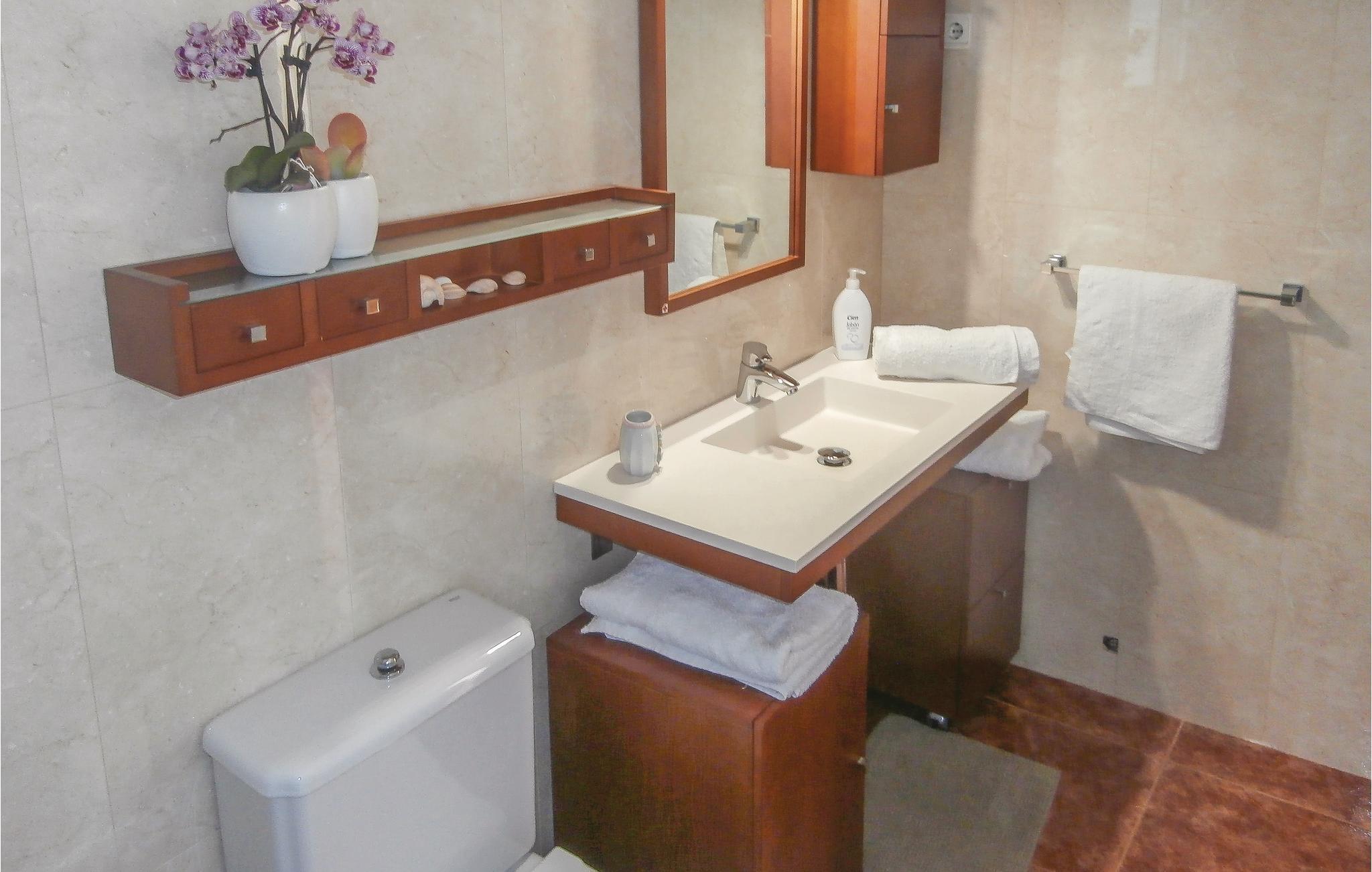 På ferielejlighedens 65 m² er der god plads til fire personer, hvor fællesarealerne udgør i alt 265 m². Lejligheden, som ligger på første sal har to soveværelser, et veludstyret køkken og et badeværelse. Begge soveværelser og den hyggelige opholdsstue har adgang til en terrasse med udsigt til havet og bjergene. Patioen kan afskærmes med en markise, og er ligeledes udstyret med borde og stole så I kan sidde for jer selv og nyde et måltid med udsigt til landskabet. En parkeringsplads på grunden hører til lejligheden.