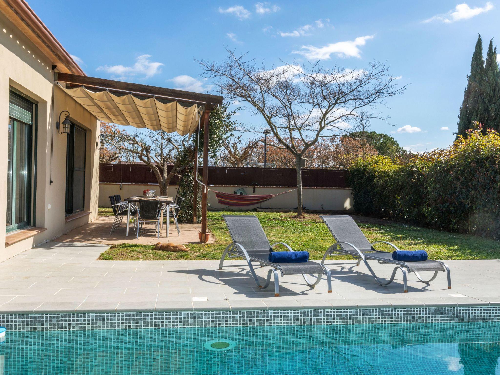 "Ullastreta", 5-room house 140 m2, lower ground floor. Living/dining room with digital TV and air conditioning. Exit to the patio, to the swimming pool. 2 rooms, each room with 2 beds (90 cm, length 190 cm), fan. 1 room with 1 french bed (150 cm, length 200 cm), fan. 1 room with 1 french bed (150 cm, length 200 cm), bath/WC and fan. Kitchen (oven, dishwasher, 3 induction hot plates, toaster, kettle, microwave, freezer, grill, electric coffee machine). Shower/WC. No heating option. Porch. Terrace furniture, deck chairs. Distant view of the mountains and the countryside. Facilities: washing machine, iron, children's high chair, baby cot for up to 2 year olds, hair dryer. Internet (WiFi, free). Please note: maximum 1 pet/ dog allowed. TV only ES. In the two bedrooms with 2 single beds, the upper bed is 105x190 and the lower trundle bed is 90x190. HUTG-063189 // Reg. Nr.: ESFCTU00001700700054794800000000000000000HUTG-0631890