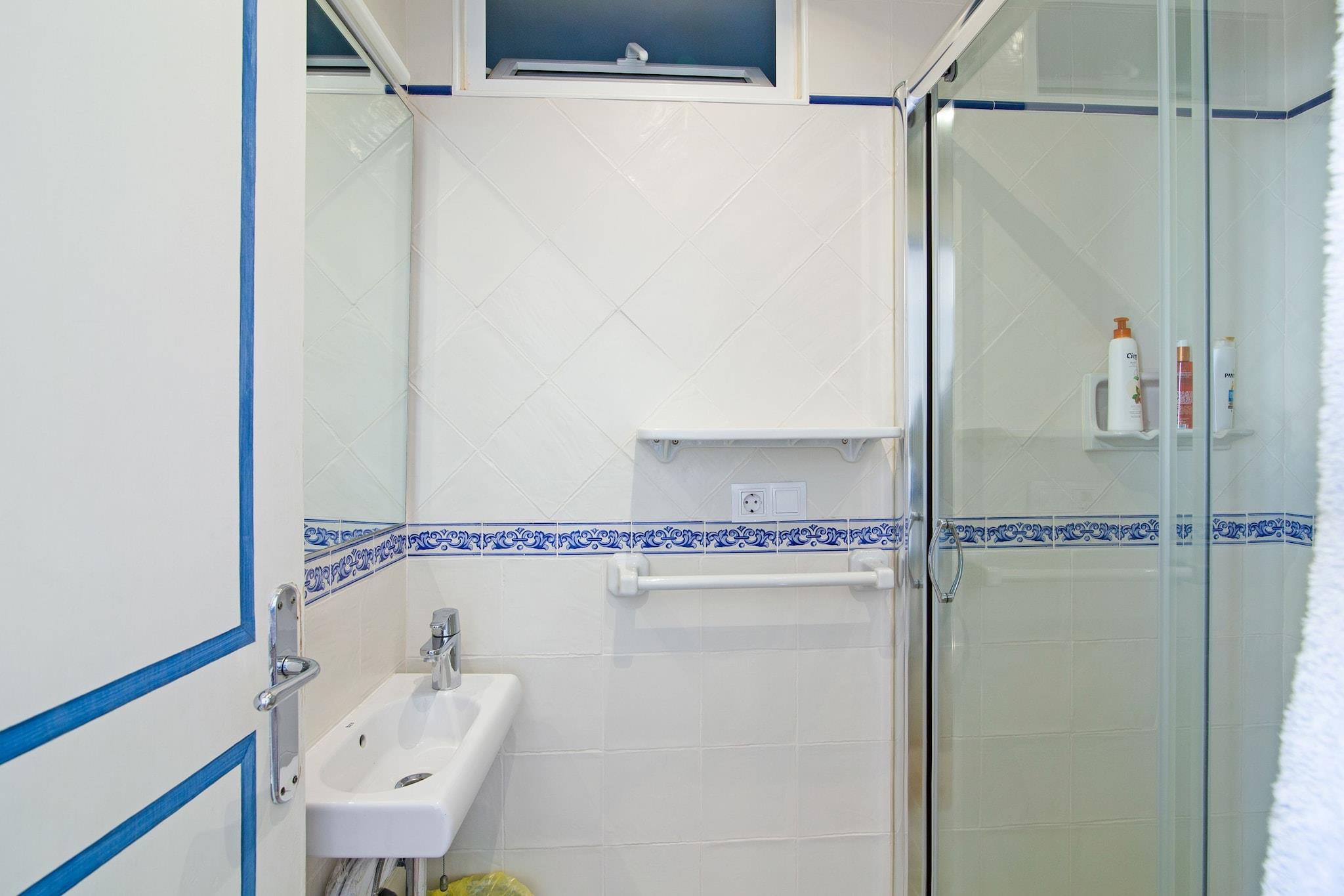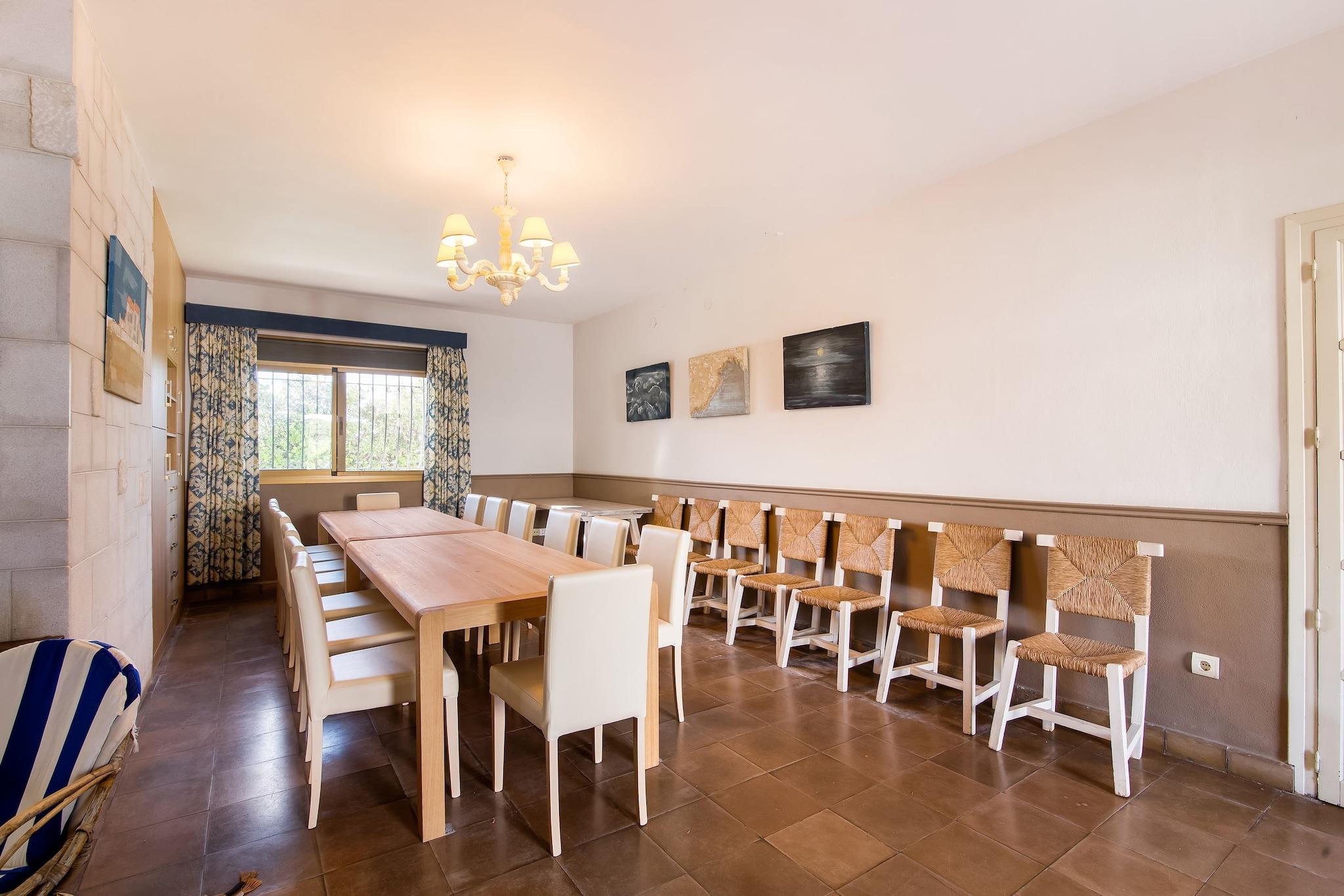 Stueetage: (entre, Stue(pejs), sofastue(stereoanlæg), Køkken(komfur(elektrisk), ovn, mikrobølgeovn, opvaskemaskine , køle-fryseskab, tørretumbler, vaskemaskine), Soveværelse med badeværelse(5x enkeltseng, bruser, håndvask, toilet(tilpasset til handicappede)), Soveværelse med badeværelse(3x enkeltseng, bruser, 2x håndvask, toilet), Soveværelse med badeværelse(2x enkeltseng, bruser, håndvask), toilet) På 1. etage: (soveværelse(3x enkeltseng), Soveværelse med badeværelse(dobbeltseng, badekar med bruser, håndvask, toilet), badeværelse(bruser, håndvask), badeværelse(bruser, håndvask, toilet, bidet)) varme(elektrisk), klimaanlæg, terrasse(indhegnet), tagterrasse, have(indhegnet), havemøbler, grill, barneseng, barnestol, kravlegård