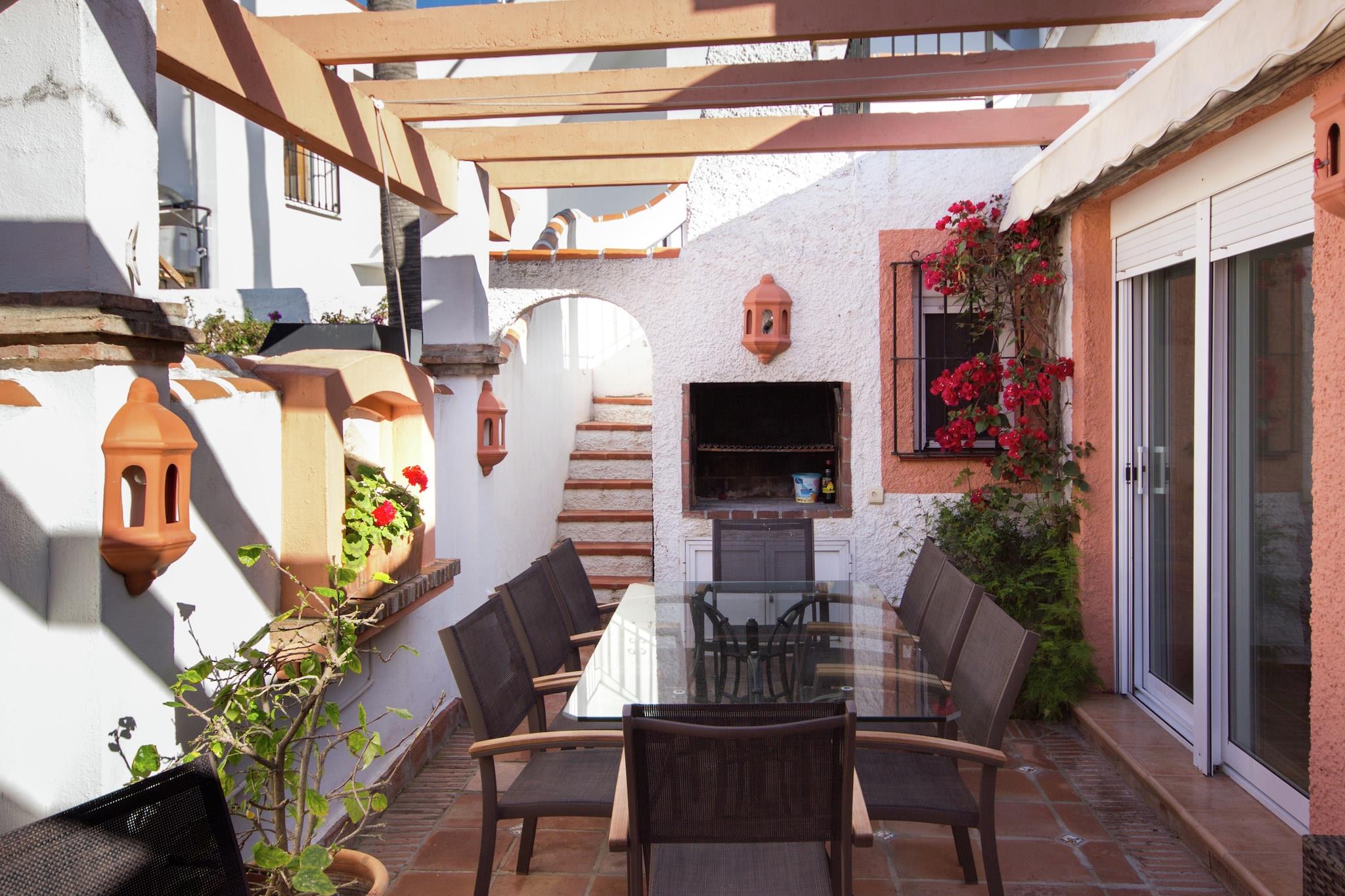 Dette feriehus har komfortable soveværelser og er ideel til flere familier. Det ligger i Mijas på den populære Costa del Sol. Denne rummelige lejlighed byder på en fantastisk udsigt over havet og bjergene. De nærmeste restauranter og butikker ligger få skridt fra feriehuset. Inden for gåafstand finder du et tenniscenter og få minutters kørsel væk ligger Golf Club El Soto med restaurant og fitnesscenter. Huset ligger kun 100 m fra stranden ved havet, hvor du kan tilbringe dagene med at slappe af i solen Boligen har aircondition og en stor overdækket terrasse. Tilbered dine yndlingsretter i det åbne køkken med opvaskemaskine og slap af med en god bog i den rummelige have med fælles pool. Der er WiFi i huset, og du kan bruge vaskemaskine og tørretumbler. Indgangen er tilgængelig via en udvendig trappe.