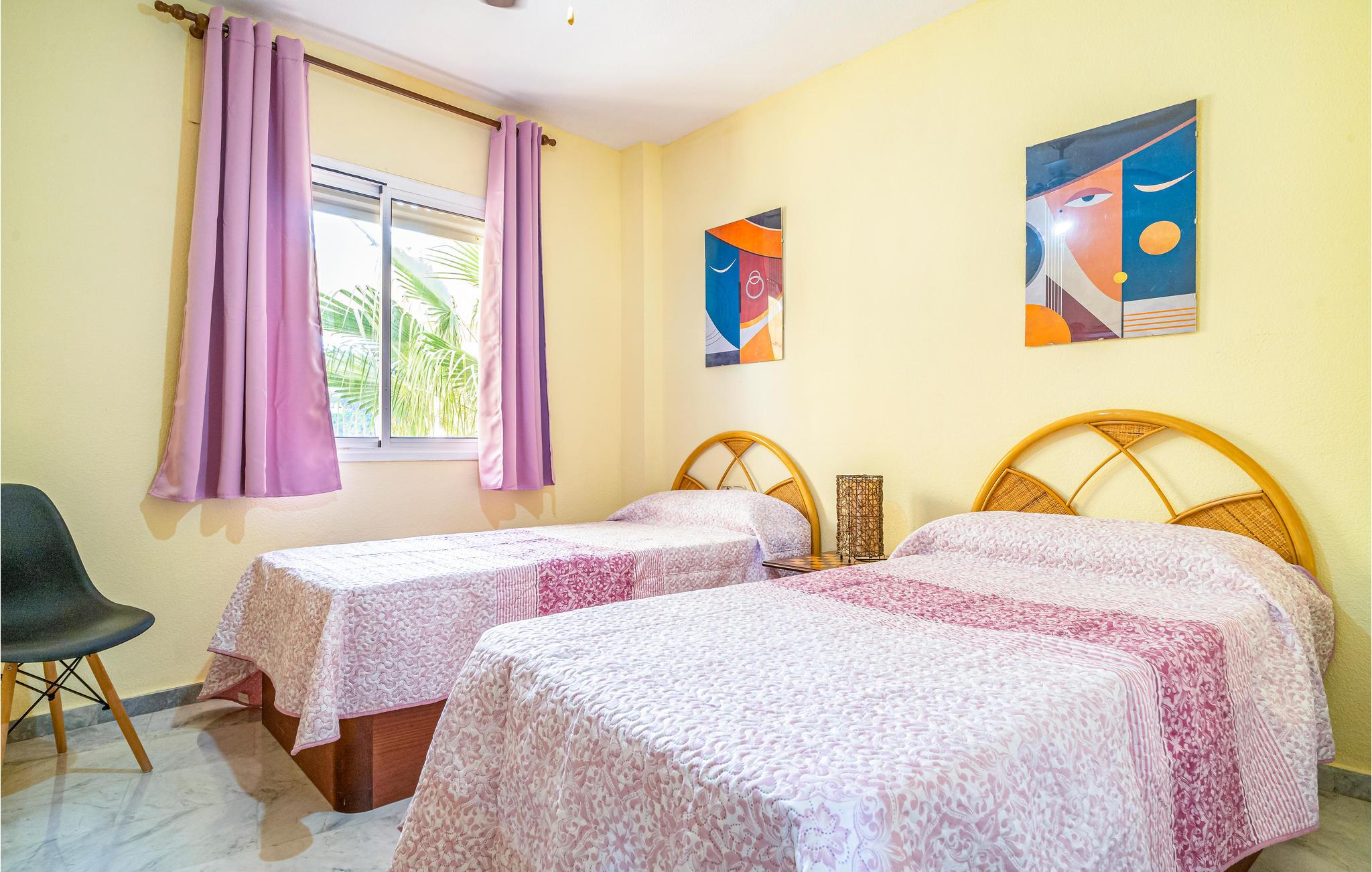 I finder denne lyse ferielejlighed på 2. sal i et lejlighedskompleks, hvor I kan nyde en ubekymret ferie. Her kan I føle jer godt tilpas, for alt, hvad I behøver er tilgængeligt. Nyd jeres morgenmad på balkonen og gå derefter ned til den fælles pool i haven for at få jer en dukkert. Her kan I køle ned først på dagen og plaske rundt i vandet. Efter en kort pause kan I gå de få hundrede meter ned til stranden.