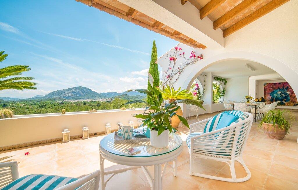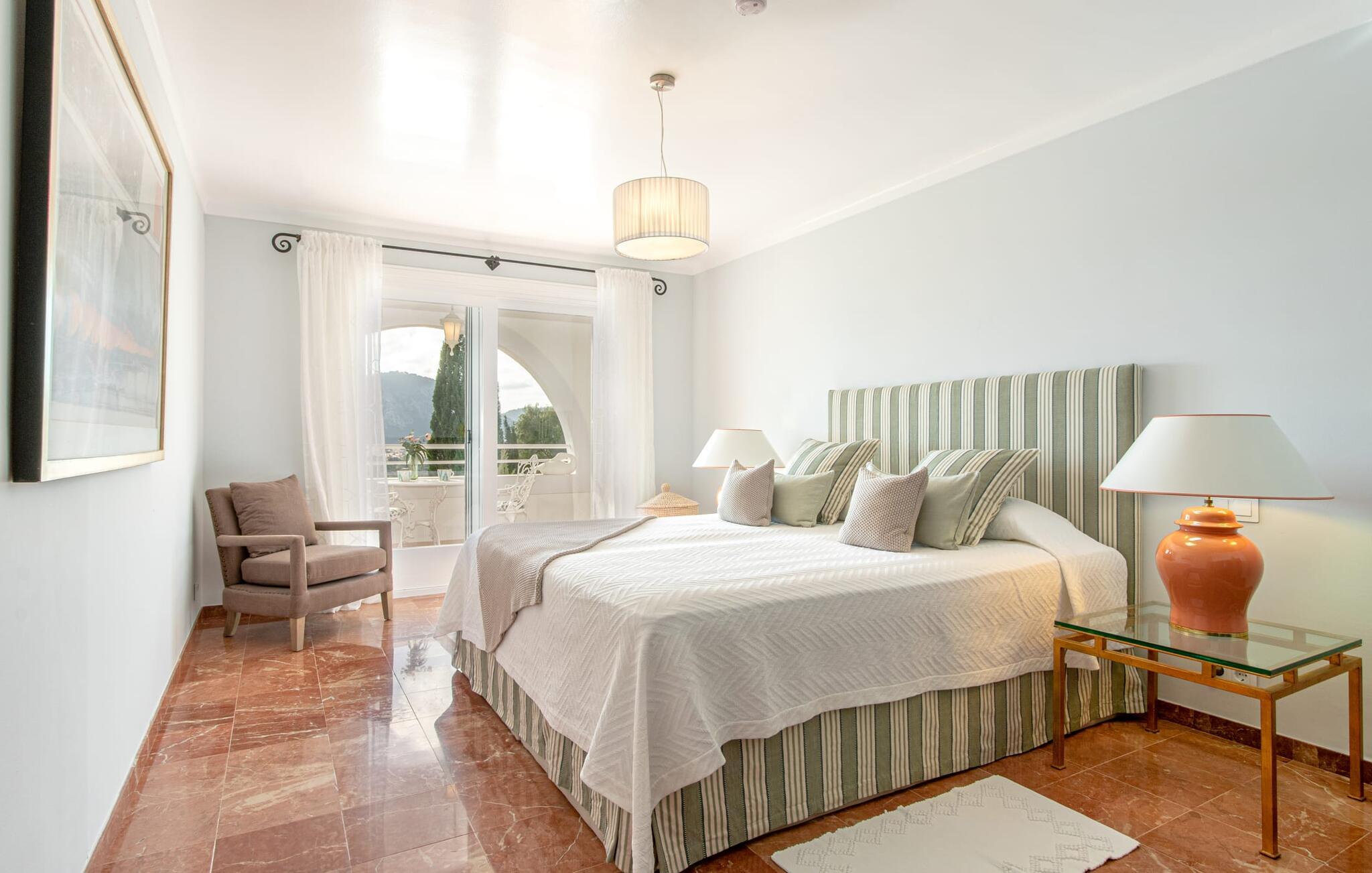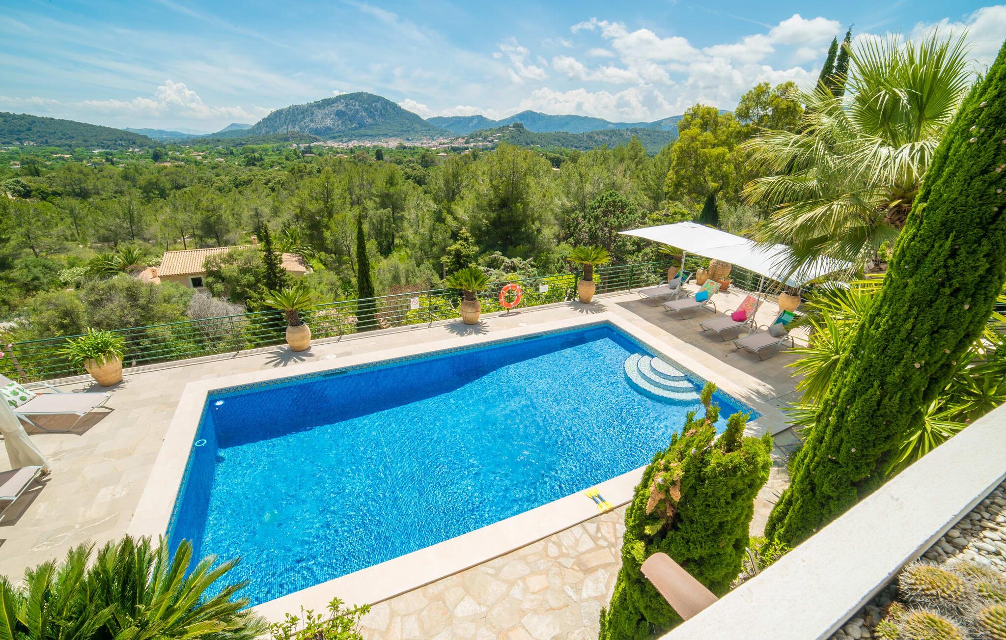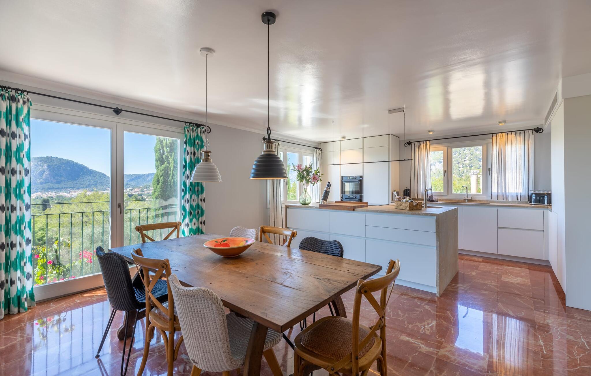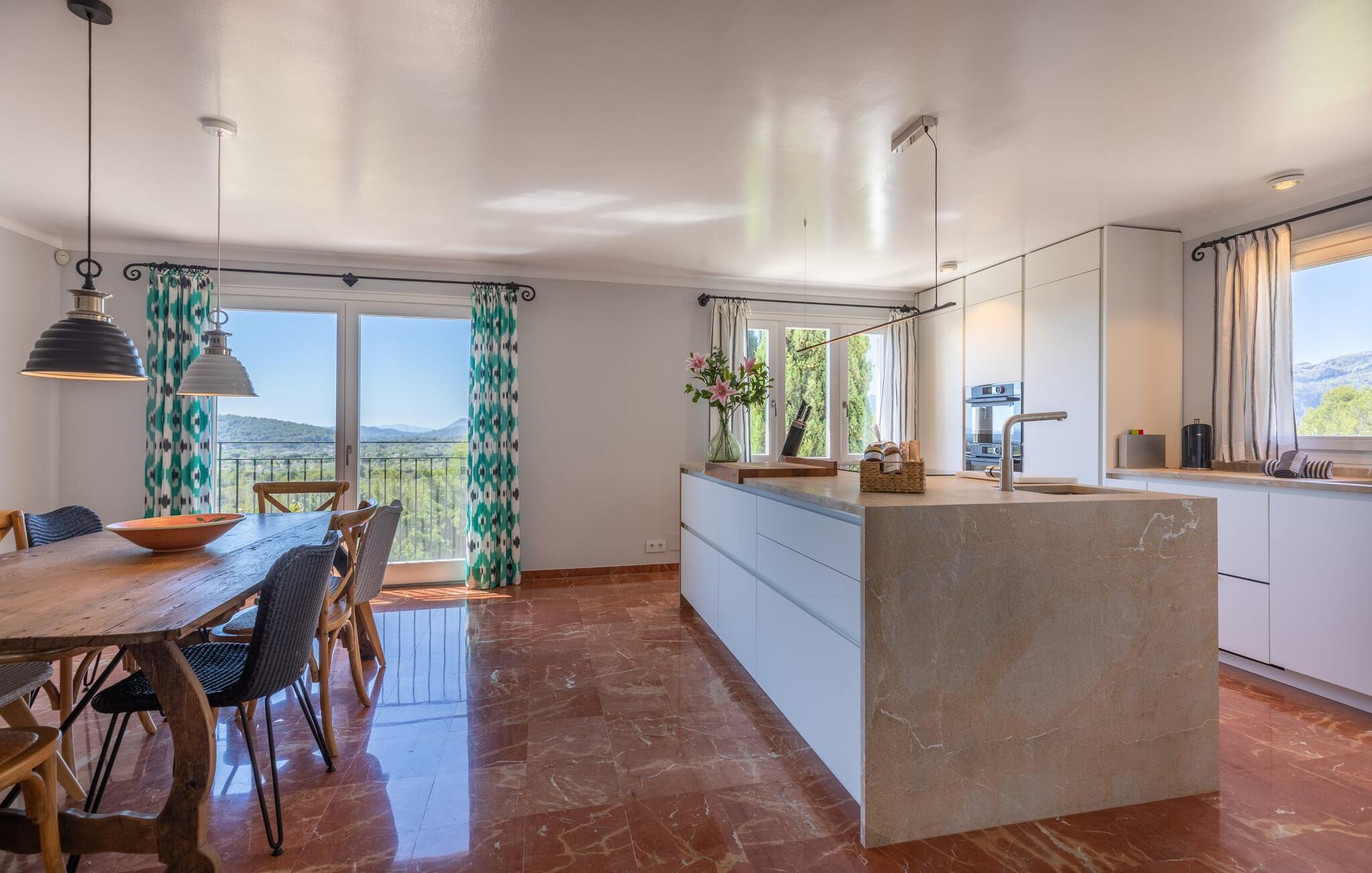 Villaen "La Font de la Liebre", renoveret i 2018, imponerer med sin velholdte atmosfære, førsteklasses indretning og en vidunderlig beliggenhed på en bjergskråning, kun omkring 2,2 km fra Pollença. Fra huset og terrasseområdet nyder I ikke blot en enestående udsigt over det typiske middelhavslandskab, der omgiver ejendommen, men I kan også lade blikket vandre over grønne bakker, byen Pollença og det glitrende turkisblå hav i det fjerne. Med sine mange attraktive buer, store overdækkede og solrige terrasseområder og altaner, der pryder to af de i alt fire soveværelser, tilbyder denne to-etagers ejendom de besøgende masser af plads og mange hyggelige værelser, der kan findes i hele haven i flere niveauer, de forskellige sektioner hvoraf har trin lavet af natursten er forbundet med hinanden. Lige under huset kan I tage en dukkert i poolen, dekoreret med smukke små fliser og omgivet af middelhavsplanter i dekorative terracotta-krukker. Efter jeres bad kan I finde jer tilpas på en af de komfortable liggestole med en lækker drink og nyde den vidunderlige udsigt og den søde følelse af at lave ingenting. Meget praktisk: Elevatoren fører direkte fra (dobbelt)garagen til stueetagen. Det ydre på “La Font de la Liebre” er et sandt blikfang – og det gælder også, når I træder ind i huset. Udover den autentiske, stilrene og højkvalitets indretning, en blanding af gammelt og nyt, imponerer huset med sin rummelige planløsning og rummenes rummelige, åbne design. Et storslået stengulv, kombineret med lysegrå vægge og sofistikeret loftsbelysning, bidrager til husets atmosfære. I stueetagen er der ikke kun et badeværelse, men også en kæmpe stue med to lige komfortable sofaer, en smuk pejs og en stenbænk dekoreret med mange typiske mallorcanske hynder - perfekt til lange ferieaftener tilbragt i selskab med venner og familie . Fine tæpper og imponerende malerier på væggene supplerer perfekt den elegante atmosfære. Lige ved siden af, i det store hvide køkken i landlig stil, kan I arbejde efter hjertens lyst - der er mere end nok plads til kulinariske eksperimenter med mange forskellige gryder, pander og andre redskaber. I kan så servere jeres kreationer direkte ved det store spisebord i træ, som også er placeret i køkkenet. For at sove kan I trække jer tilbage til et af de fire soveværelser på første sal, som alle er smagfuldt indrettet med udvalgte pynteting og komfortable senge. For nemheds skyld har alle ulasteligt smarte badeværelser en suite. jeres sommerhus ligger midt i et smukt, typisk middelhavslandskab i det frodige grønne nord på øen - fra jeres villa kan I ikke bare nyde en fantastisk udsigt, men også udforske den omkringliggende natur, det være sig på vandreture eller lange gåture . Til shopping og lange gåture gennem byen - for det er virkelig det værd - skal I bare køre 2,2 km til Pollença. Den gamle bydel er velsignet med charmerende små sidegader, mange håndværksbutikker, små butikker og indbydende caféer og restauranter. Byen scorer ikke kun med en masse flair, men også med adskillige seværdigheder som Pont Roma, byens historiske bro, Puig de Maria-bakken eller Golgata, hvis top kun kan nås ved at bestige et 365-trin trappe overvinder. Men glem ikke de smukke strande, som kun ligger omkring 7 km fra jeres villa. Eksempler på dette er den rolige strand Cala Clara og den hvide sandstrand Platja de Port de Pollença. En smuk, elegant villa med en guddommelig udsigt til både de grønne bjerge og det forførende flimrende hav i det fjerne - alt dette og mere venter jer på La Font de la Liebre. Det bemærkelsesværdigt velholdte hus ligger 2,2 km fra byen Pollença på en ejendom opdelt i forskellige niveauer. Smukke naturstentrapper med mange hyggelige siddepladser lokker, ligesom den plane pool med solterrasse - og den nærmeste strand ligger kun omkring 6,6 km væk.