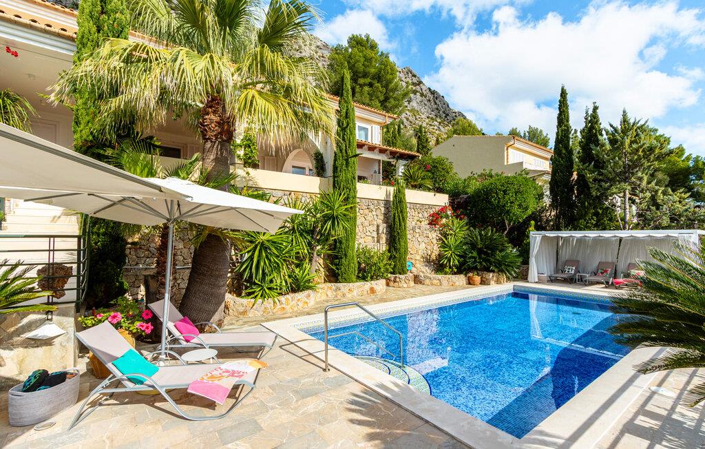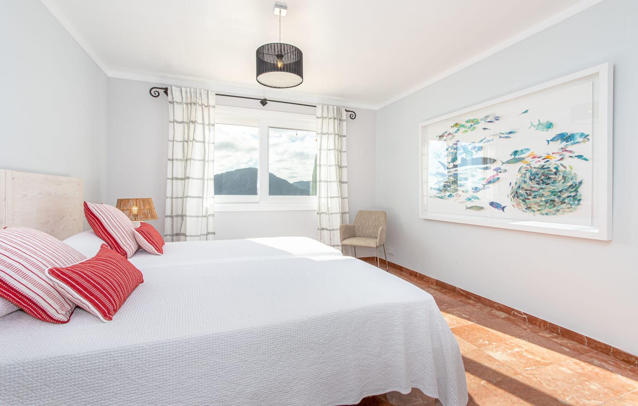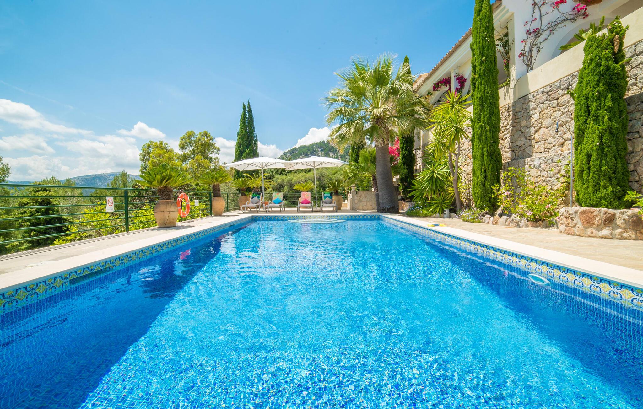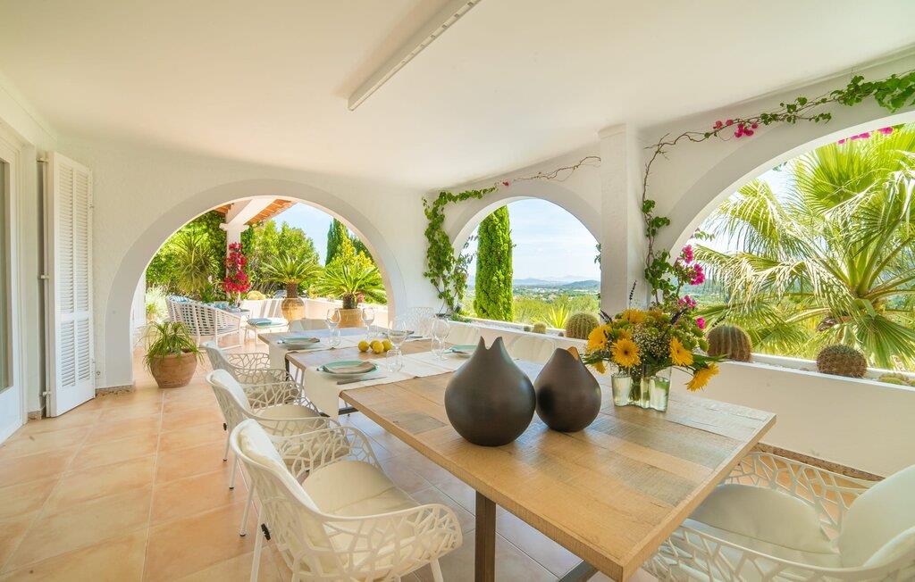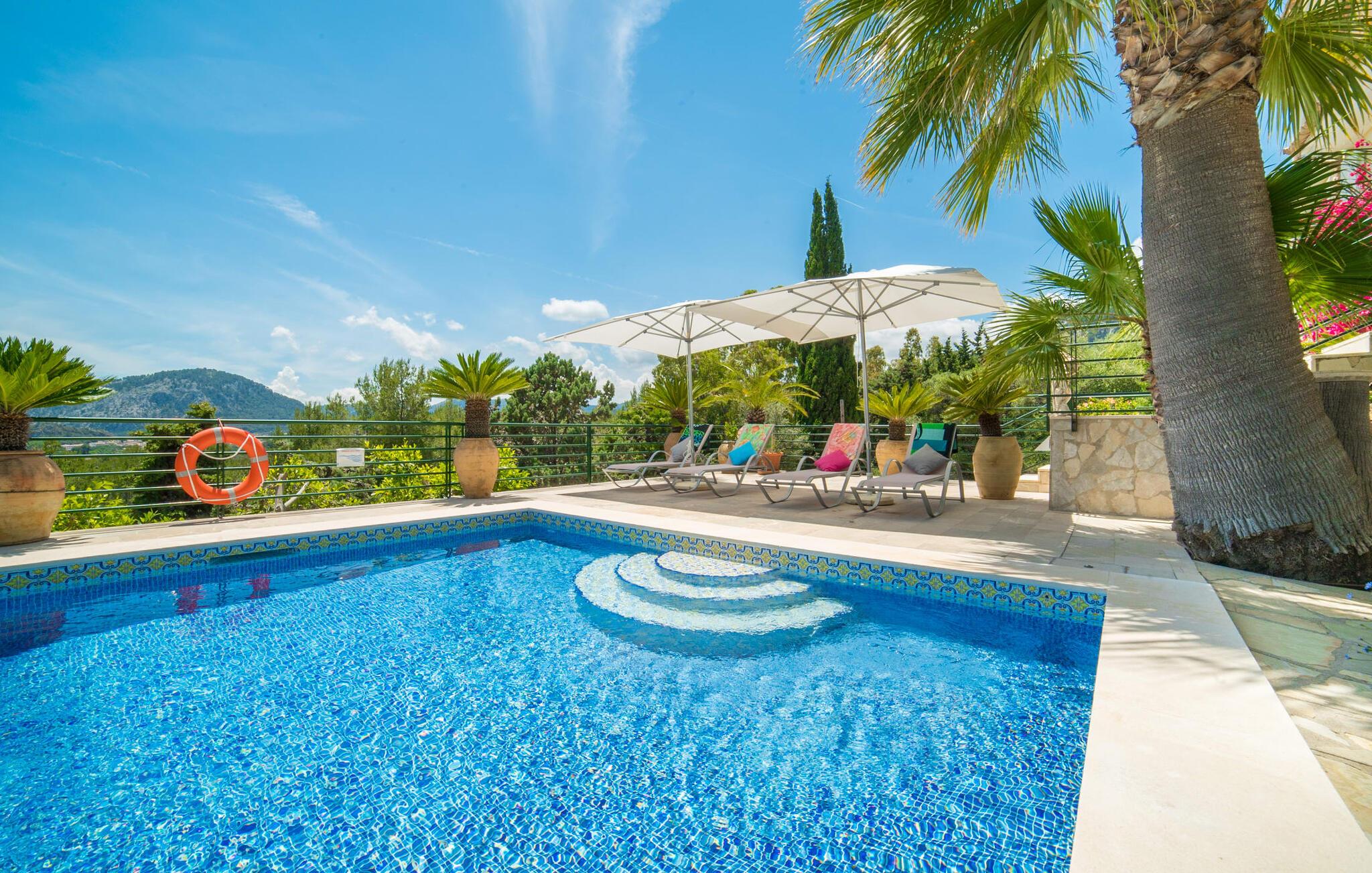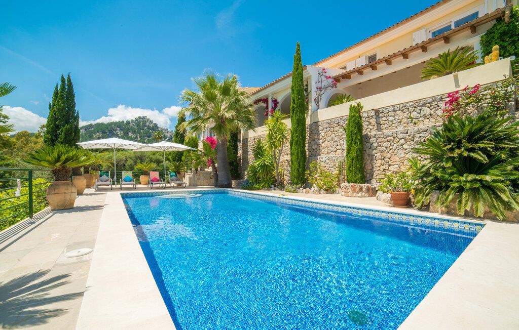 Villaen "La Font de la Liebre", renoveret i 2018, imponerer med sin velholdte atmosfære, førsteklasses indretning og en vidunderlig beliggenhed på en bjergskråning, kun omkring 2,2 km fra Pollença. Fra huset og terrasseområdet nyder I ikke blot en enestående udsigt over det typiske middelhavslandskab, der omgiver ejendommen, men I kan også lade blikket vandre over grønne bakker, byen Pollença og det glitrende turkisblå hav i det fjerne. Med sine mange attraktive buer, store overdækkede og solrige terrasseområder og altaner, der pryder to af de i alt fire soveværelser, tilbyder denne to-etagers ejendom de besøgende masser af plads og mange hyggelige værelser, der kan findes i hele haven i flere niveauer, de forskellige sektioner hvoraf har trin lavet af natursten er forbundet med hinanden. Lige under huset kan I tage en dukkert i poolen, dekoreret med smukke små fliser og omgivet af middelhavsplanter i dekorative terracotta-krukker. Efter jeres bad kan I finde jer tilpas på en af de komfortable liggestole med en lækker drink og nyde den vidunderlige udsigt og den søde følelse af at lave ingenting. Meget praktisk: Elevatoren fører direkte fra (dobbelt)garagen til stueetagen. Det ydre på “La Font de la Liebre” er et sandt blikfang – og det gælder også, når I træder ind i huset. Udover den autentiske, stilrene og højkvalitets indretning, en blanding af gammelt og nyt, imponerer huset med sin rummelige planløsning og rummenes rummelige, åbne design. Et storslået stengulv, kombineret med lysegrå vægge og sofistikeret loftsbelysning, bidrager til husets atmosfære. I stueetagen er der ikke kun et badeværelse, men også en kæmpe stue med to lige komfortable sofaer, en smuk pejs og en stenbænk dekoreret med mange typiske mallorcanske hynder - perfekt til lange ferieaftener tilbragt i selskab med venner og familie . Fine tæpper og imponerende malerier på væggene supplerer perfekt den elegante atmosfære. Lige ved siden af, i det store hvide køkken i landlig stil, kan I arbejde efter hjertens lyst - der er mere end nok plads til kulinariske eksperimenter med mange forskellige gryder, pander og andre redskaber. I kan så servere jeres kreationer direkte ved det store spisebord i træ, som også er placeret i køkkenet. For at sove kan I trække jer tilbage til et af de fire soveværelser på første sal, som alle er smagfuldt indrettet med udvalgte pynteting og komfortable senge. For nemheds skyld har alle ulasteligt smarte badeværelser en suite. jeres sommerhus ligger midt i et smukt, typisk middelhavslandskab i det frodige grønne nord på øen - fra jeres villa kan I ikke bare nyde en fantastisk udsigt, men også udforske den omkringliggende natur, det være sig på vandreture eller lange gåture . Til shopping og lange gåture gennem byen - for det er virkelig det værd - skal I bare køre 2,2 km til Pollença. Den gamle bydel er velsignet med charmerende små sidegader, mange håndværksbutikker, små butikker og indbydende caféer og restauranter. Byen scorer ikke kun med en masse flair, men også med adskillige seværdigheder som Pont Roma, byens historiske bro, Puig de Maria-bakken eller Golgata, hvis top kun kan nås ved at bestige et 365-trin trappe overvinder. Men glem ikke de smukke strande, som kun ligger omkring 7 km fra jeres villa. Eksempler på dette er den rolige strand Cala Clara og den hvide sandstrand Platja de Port de Pollença. En smuk, elegant villa med en guddommelig udsigt til både de grønne bjerge og det forførende flimrende hav i det fjerne - alt dette og mere venter jer på La Font de la Liebre. Det bemærkelsesværdigt velholdte hus ligger 2,2 km fra byen Pollença på en ejendom opdelt i forskellige niveauer. Smukke naturstentrapper med mange hyggelige siddepladser lokker, ligesom den plane pool med solterrasse - og den nærmeste strand ligger kun omkring 6,6 km væk.