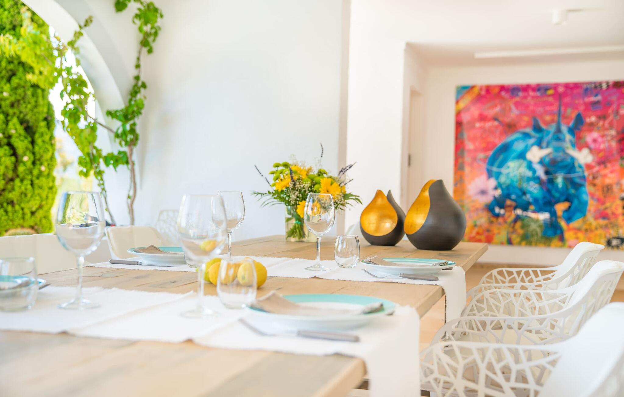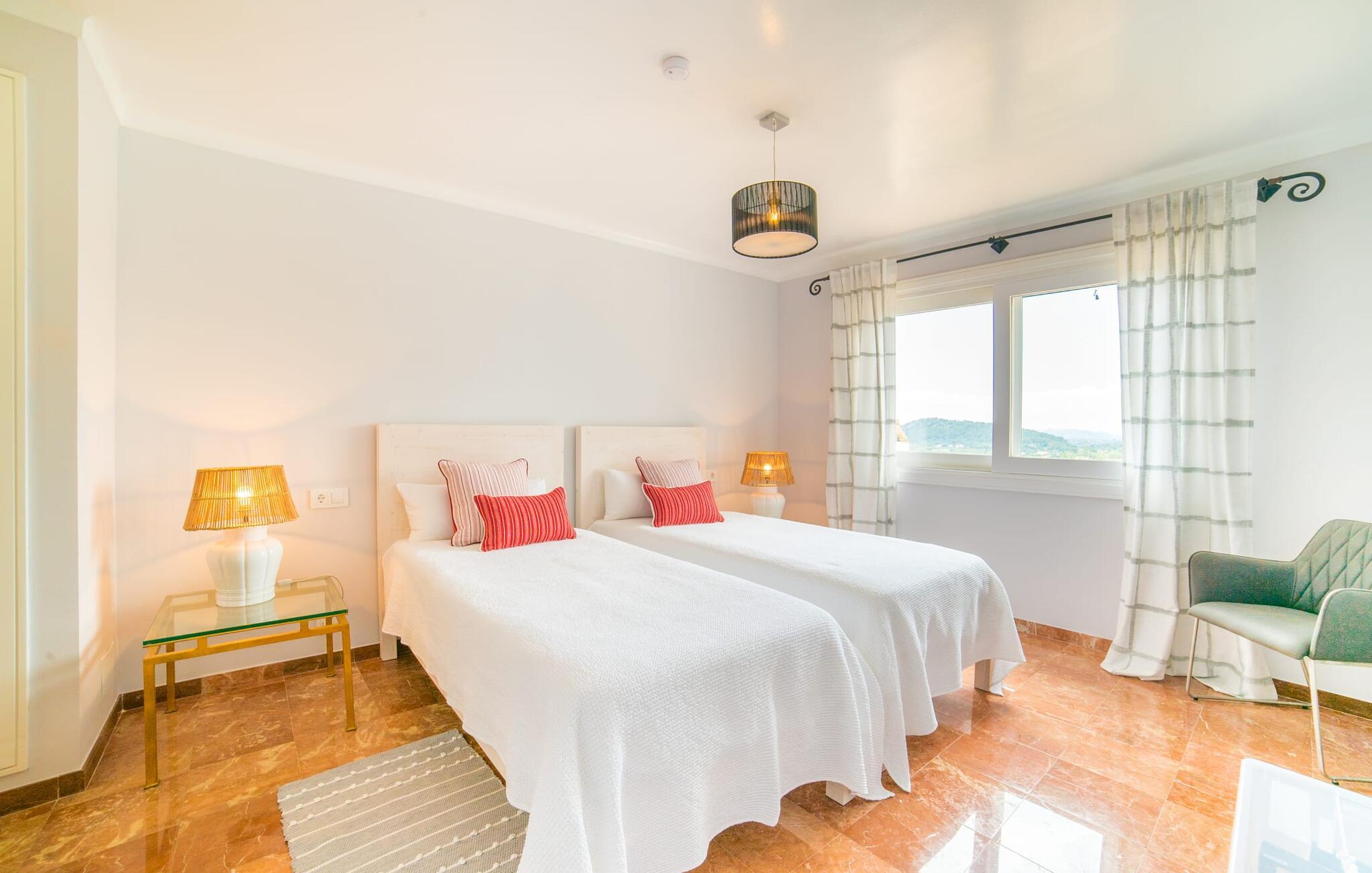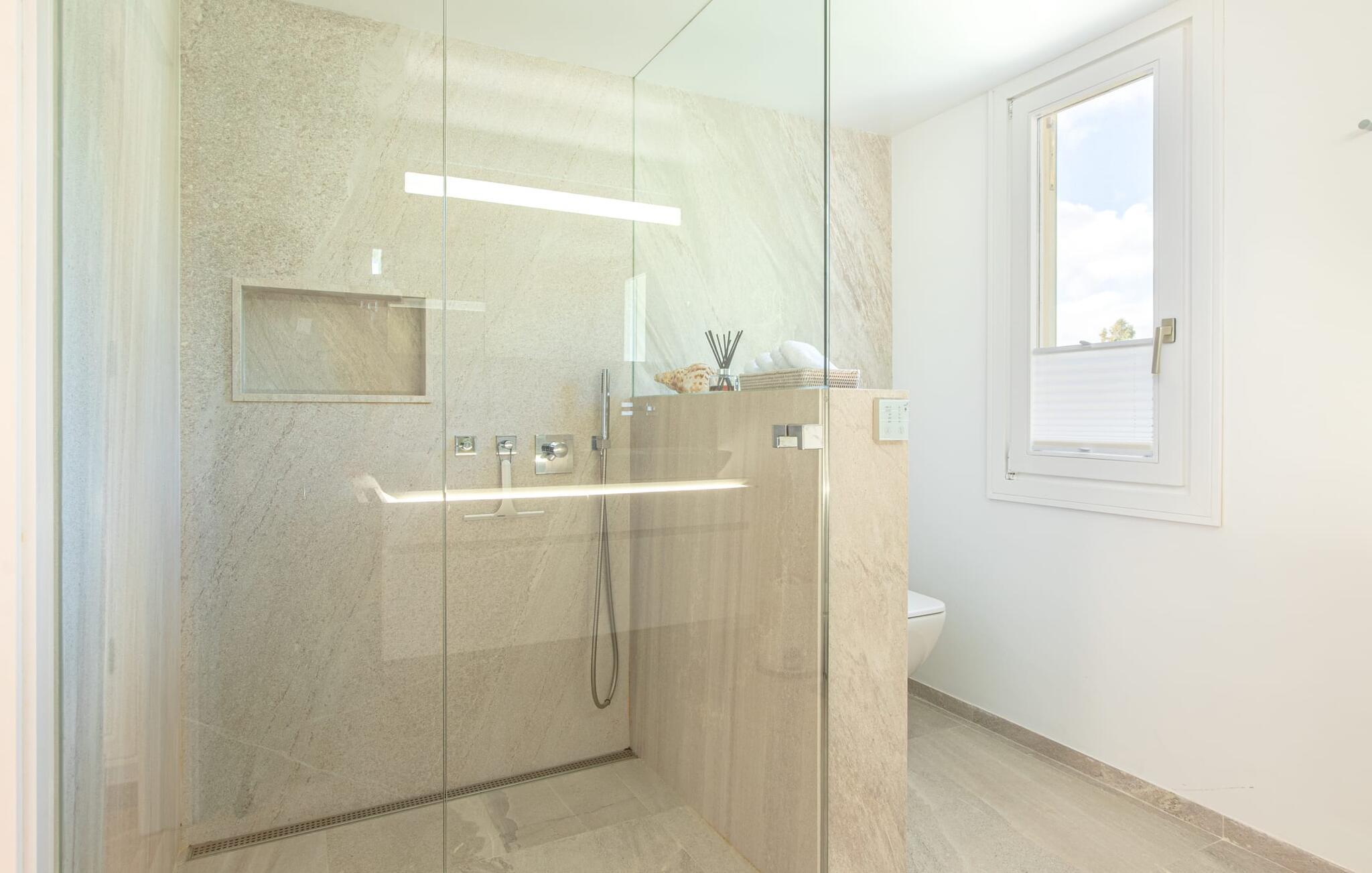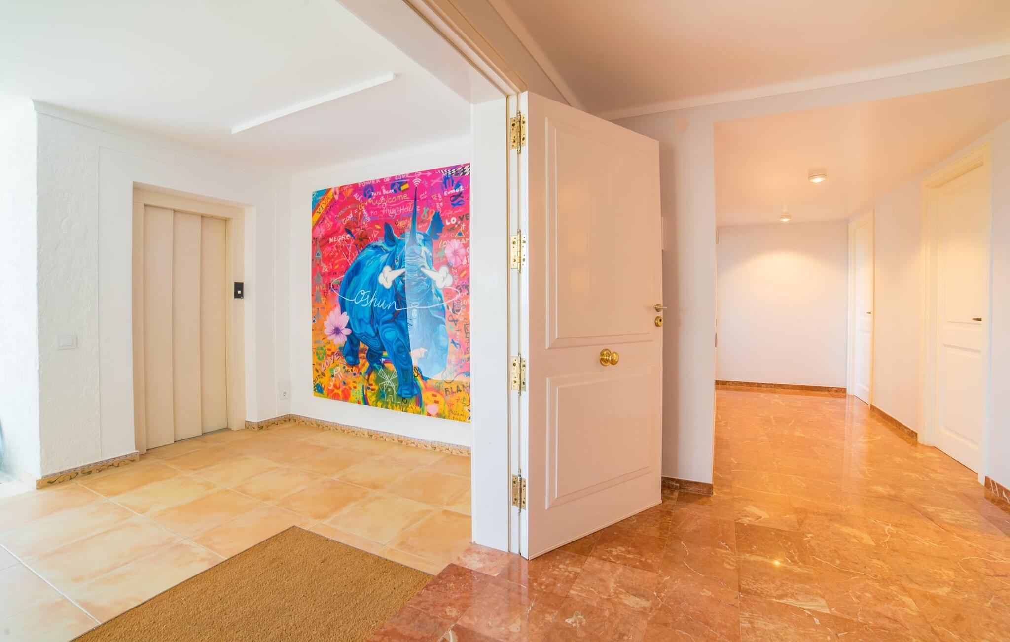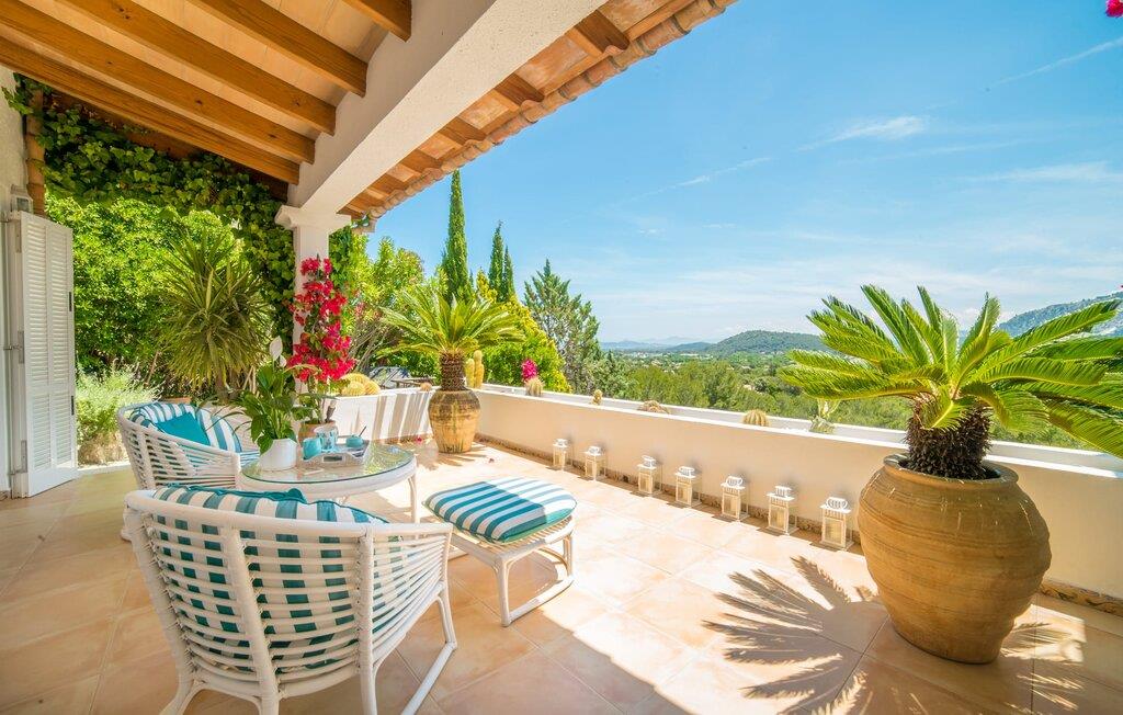 Villaen "La Font de la Liebre", renoveret i 2018, imponerer med sin velholdte atmosfære, førsteklasses indretning og en vidunderlig beliggenhed på en bjergskråning, kun omkring 2,2 km fra Pollença. Fra huset og terrasseområdet nyder I ikke blot en enestående udsigt over det typiske middelhavslandskab, der omgiver ejendommen, men I kan også lade blikket vandre over grønne bakker, byen Pollença og det glitrende turkisblå hav i det fjerne. Med sine mange attraktive buer, store overdækkede og solrige terrasseområder og altaner, der pryder to af de i alt fire soveværelser, tilbyder denne to-etagers ejendom de besøgende masser af plads og mange hyggelige værelser, der kan findes i hele haven i flere niveauer, de forskellige sektioner hvoraf har trin lavet af natursten er forbundet med hinanden. Lige under huset kan I tage en dukkert i poolen, dekoreret med smukke små fliser og omgivet af middelhavsplanter i dekorative terracotta-krukker. Efter jeres bad kan I finde jer tilpas på en af de komfortable liggestole med en lækker drink og nyde den vidunderlige udsigt og den søde følelse af at lave ingenting. Meget praktisk: Elevatoren fører direkte fra (dobbelt)garagen til stueetagen. Det ydre på “La Font de la Liebre” er et sandt blikfang – og det gælder også, når I træder ind i huset. Udover den autentiske, stilrene og højkvalitets indretning, en blanding af gammelt og nyt, imponerer huset med sin rummelige planløsning og rummenes rummelige, åbne design. Et storslået stengulv, kombineret med lysegrå vægge og sofistikeret loftsbelysning, bidrager til husets atmosfære. I stueetagen er der ikke kun et badeværelse, men også en kæmpe stue med to lige komfortable sofaer, en smuk pejs og en stenbænk dekoreret med mange typiske mallorcanske hynder - perfekt til lange ferieaftener tilbragt i selskab med venner og familie . Fine tæpper og imponerende malerier på væggene supplerer perfekt den elegante atmosfære. Lige ved siden af, i det store hvide køkken i landlig stil, kan I arbejde efter hjertens lyst - der er mere end nok plads til kulinariske eksperimenter med mange forskellige gryder, pander og andre redskaber. I kan så servere jeres kreationer direkte ved det store spisebord i træ, som også er placeret i køkkenet. For at sove kan I trække jer tilbage til et af de fire soveværelser på første sal, som alle er smagfuldt indrettet med udvalgte pynteting og komfortable senge. For nemheds skyld har alle ulasteligt smarte badeværelser en suite. jeres sommerhus ligger midt i et smukt, typisk middelhavslandskab i det frodige grønne nord på øen - fra jeres villa kan I ikke bare nyde en fantastisk udsigt, men også udforske den omkringliggende natur, det være sig på vandreture eller lange gåture . Til shopping og lange gåture gennem byen - for det er virkelig det værd - skal I bare køre 2,2 km til Pollença. Den gamle bydel er velsignet med charmerende små sidegader, mange håndværksbutikker, små butikker og indbydende caféer og restauranter. Byen scorer ikke kun med en masse flair, men også med adskillige seværdigheder som Pont Roma, byens historiske bro, Puig de Maria-bakken eller Golgata, hvis top kun kan nås ved at bestige et 365-trin trappe overvinder. Men glem ikke de smukke strande, som kun ligger omkring 7 km fra jeres villa. Eksempler på dette er den rolige strand Cala Clara og den hvide sandstrand Platja de Port de Pollença. En smuk, elegant villa med en guddommelig udsigt til både de grønne bjerge og det forførende flimrende hav i det fjerne - alt dette og mere venter jer på La Font de la Liebre. Det bemærkelsesværdigt velholdte hus ligger 2,2 km fra byen Pollença på en ejendom opdelt i forskellige niveauer. Smukke naturstentrapper med mange hyggelige siddepladser lokker, ligesom den plane pool med solterrasse - og den nærmeste strand ligger kun omkring 6,6 km væk.