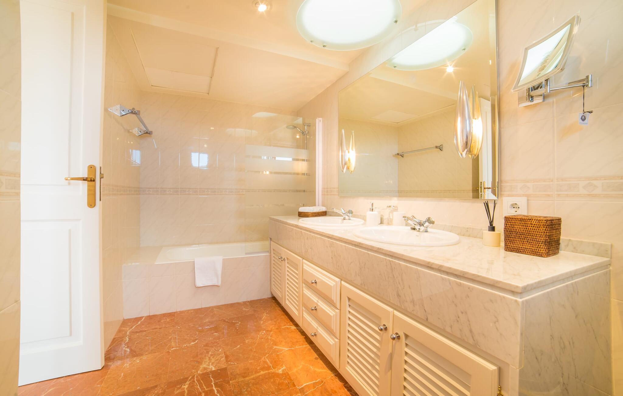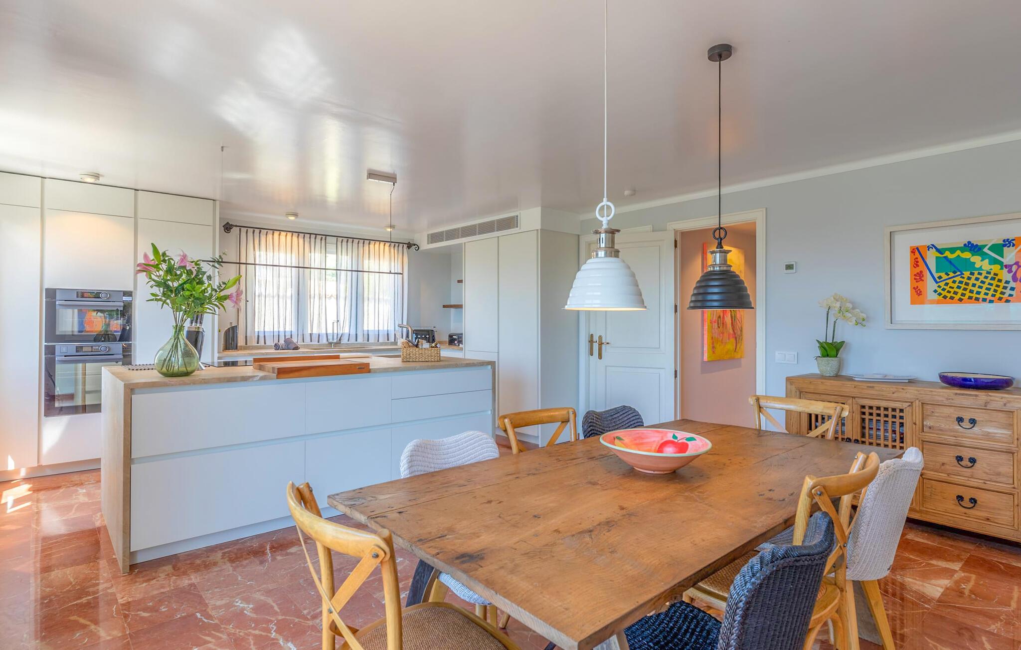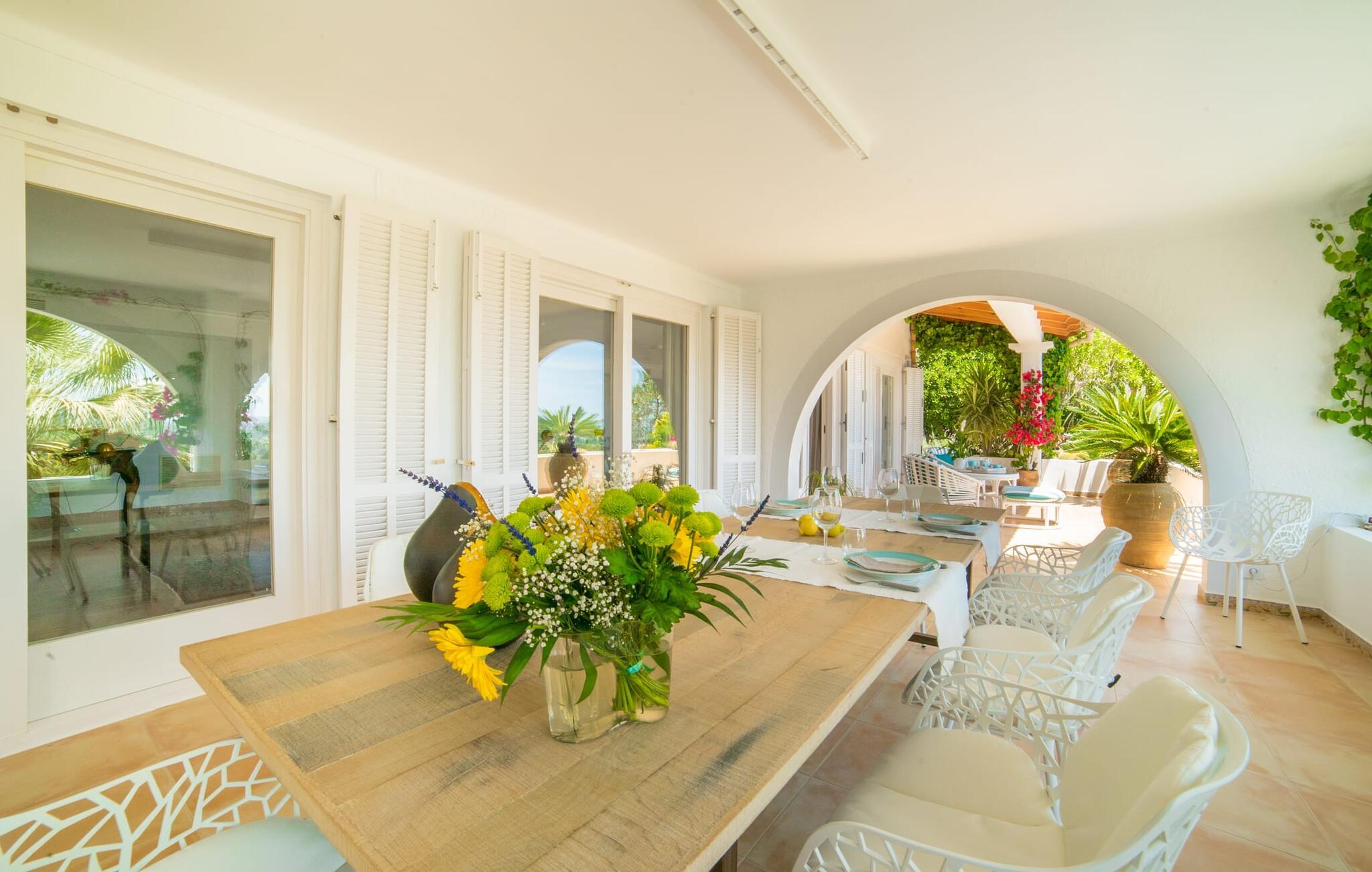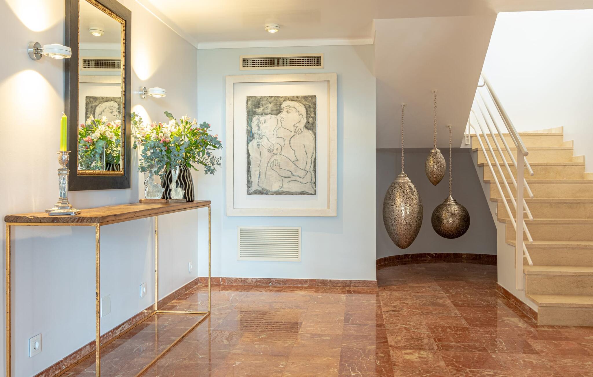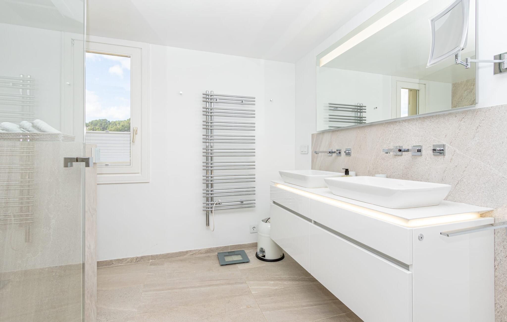 Villaen "La Font de la Liebre", renoveret i 2018, imponerer med sin velholdte atmosfære, førsteklasses indretning og en vidunderlig beliggenhed på en bjergskråning, kun omkring 2,2 km fra Pollença. Fra huset og terrasseområdet nyder I ikke blot en enestående udsigt over det typiske middelhavslandskab, der omgiver ejendommen, men I kan også lade blikket vandre over grønne bakker, byen Pollença og det glitrende turkisblå hav i det fjerne. Med sine mange attraktive buer, store overdækkede og solrige terrasseområder og altaner, der pryder to af de i alt fire soveværelser, tilbyder denne to-etagers ejendom de besøgende masser af plads og mange hyggelige værelser, der kan findes i hele haven i flere niveauer, de forskellige sektioner hvoraf har trin lavet af natursten er forbundet med hinanden. Lige under huset kan I tage en dukkert i poolen, dekoreret med smukke små fliser og omgivet af middelhavsplanter i dekorative terracotta-krukker. Efter jeres bad kan I finde jer tilpas på en af de komfortable liggestole med en lækker drink og nyde den vidunderlige udsigt og den søde følelse af at lave ingenting. Meget praktisk: Elevatoren fører direkte fra (dobbelt)garagen til stueetagen. Det ydre på “La Font de la Liebre” er et sandt blikfang – og det gælder også, når I træder ind i huset. Udover den autentiske, stilrene og højkvalitets indretning, en blanding af gammelt og nyt, imponerer huset med sin rummelige planløsning og rummenes rummelige, åbne design. Et storslået stengulv, kombineret med lysegrå vægge og sofistikeret loftsbelysning, bidrager til husets atmosfære. I stueetagen er der ikke kun et badeværelse, men også en kæmpe stue med to lige komfortable sofaer, en smuk pejs og en stenbænk dekoreret med mange typiske mallorcanske hynder - perfekt til lange ferieaftener tilbragt i selskab med venner og familie . Fine tæpper og imponerende malerier på væggene supplerer perfekt den elegante atmosfære. Lige ved siden af, i det store hvide køkken i landlig stil, kan I arbejde efter hjertens lyst - der er mere end nok plads til kulinariske eksperimenter med mange forskellige gryder, pander og andre redskaber. I kan så servere jeres kreationer direkte ved det store spisebord i træ, som også er placeret i køkkenet. For at sove kan I trække jer tilbage til et af de fire soveværelser på første sal, som alle er smagfuldt indrettet med udvalgte pynteting og komfortable senge. For nemheds skyld har alle ulasteligt smarte badeværelser en suite. jeres sommerhus ligger midt i et smukt, typisk middelhavslandskab i det frodige grønne nord på øen - fra jeres villa kan I ikke bare nyde en fantastisk udsigt, men også udforske den omkringliggende natur, det være sig på vandreture eller lange gåture . Til shopping og lange gåture gennem byen - for det er virkelig det værd - skal I bare køre 2,2 km til Pollença. Den gamle bydel er velsignet med charmerende små sidegader, mange håndværksbutikker, små butikker og indbydende caféer og restauranter. Byen scorer ikke kun med en masse flair, men også med adskillige seværdigheder som Pont Roma, byens historiske bro, Puig de Maria-bakken eller Golgata, hvis top kun kan nås ved at bestige et 365-trin trappe overvinder. Men glem ikke de smukke strande, som kun ligger omkring 7 km fra jeres villa. Eksempler på dette er den rolige strand Cala Clara og den hvide sandstrand Platja de Port de Pollença. En smuk, elegant villa med en guddommelig udsigt til både de grønne bjerge og det forførende flimrende hav i det fjerne - alt dette og mere venter jer på La Font de la Liebre. Det bemærkelsesværdigt velholdte hus ligger 2,2 km fra byen Pollença på en ejendom opdelt i forskellige niveauer. Smukke naturstentrapper med mange hyggelige siddepladser lokker, ligesom den plane pool med solterrasse - og den nærmeste strand ligger kun omkring 6,6 km væk.