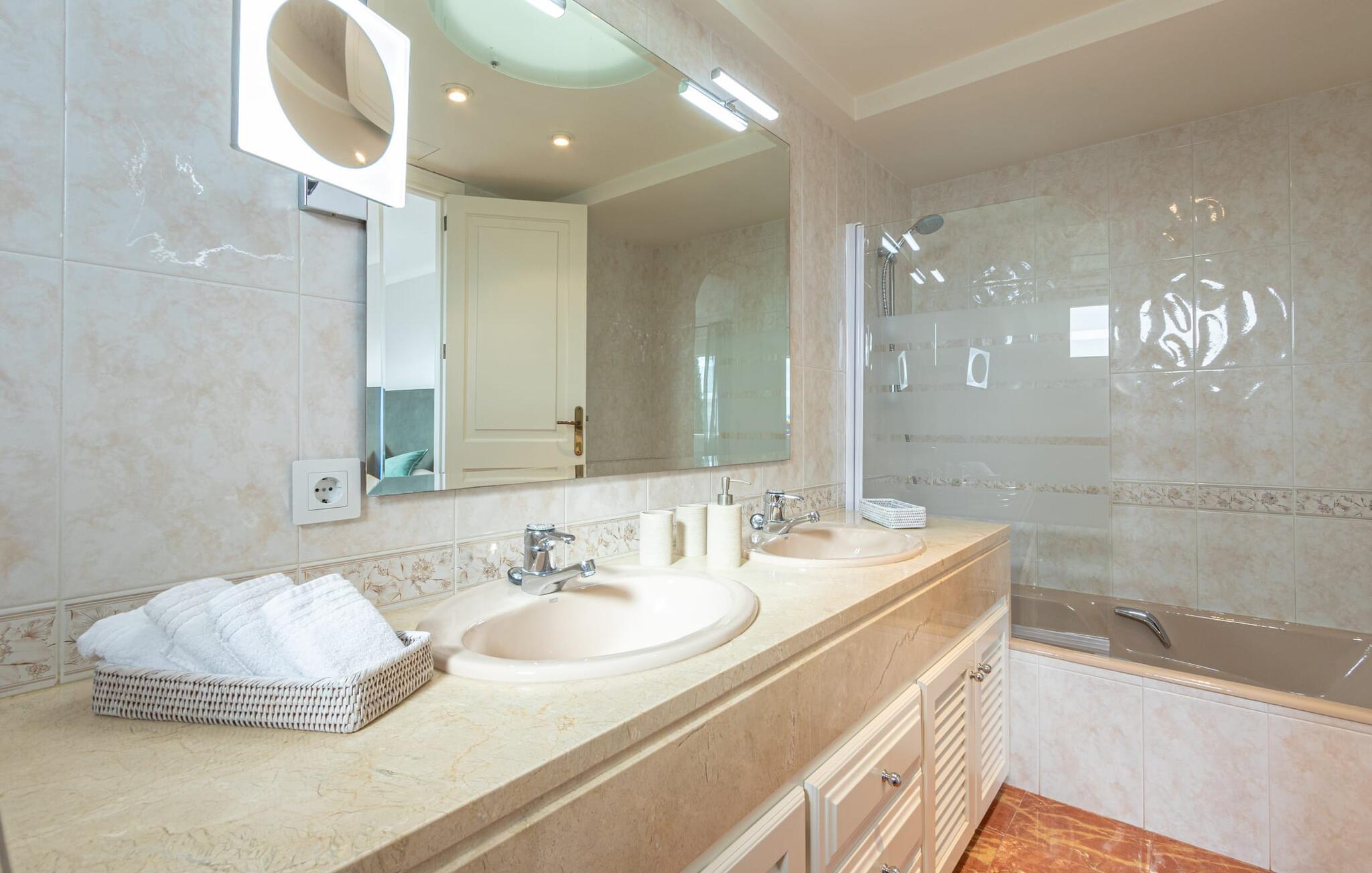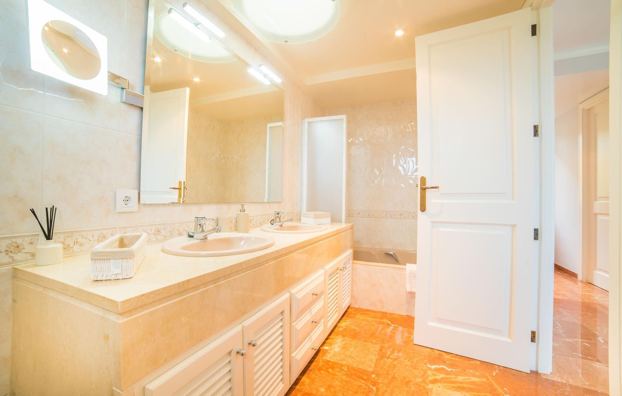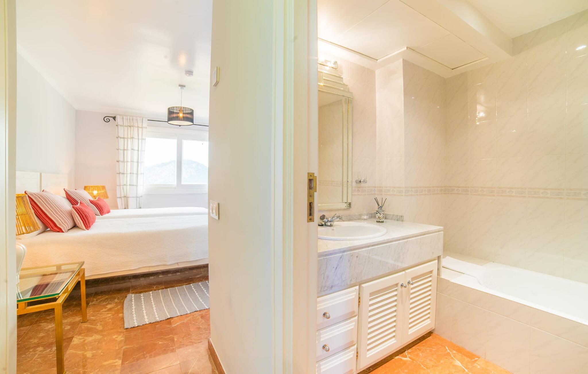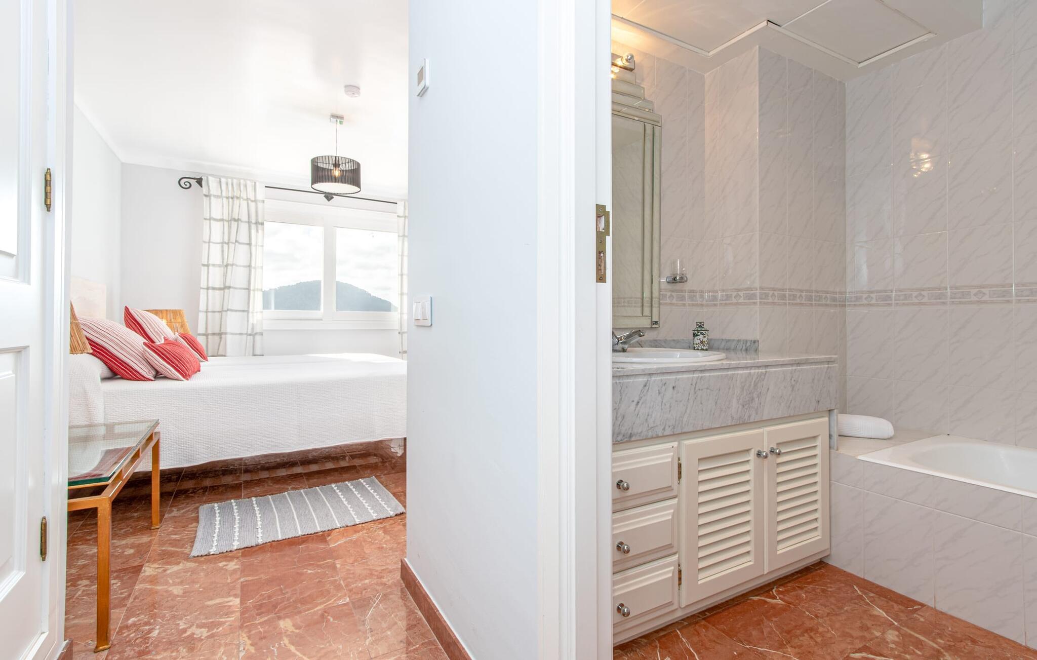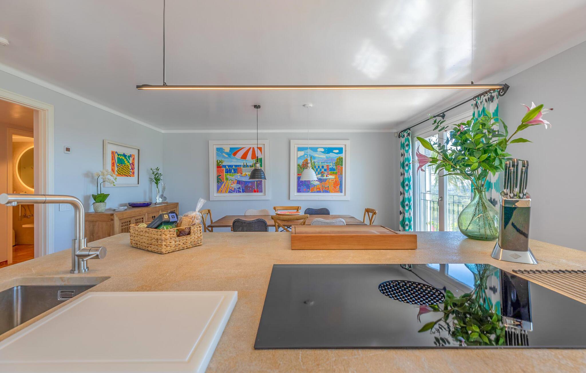 Villaen "La Font de la Liebre", renoveret i 2018, imponerer med sin velholdte atmosfære, førsteklasses indretning og en vidunderlig beliggenhed på en bjergskråning, kun omkring 2,2 km fra Pollença. Fra huset og terrasseområdet nyder I ikke blot en enestående udsigt over det typiske middelhavslandskab, der omgiver ejendommen, men I kan også lade blikket vandre over grønne bakker, byen Pollença og det glitrende turkisblå hav i det fjerne. Med sine mange attraktive buer, store overdækkede og solrige terrasseområder og altaner, der pryder to af de i alt fire soveværelser, tilbyder denne to-etagers ejendom de besøgende masser af plads og mange hyggelige værelser, der kan findes i hele haven i flere niveauer, de forskellige sektioner hvoraf har trin lavet af natursten er forbundet med hinanden. Lige under huset kan I tage en dukkert i poolen, dekoreret med smukke små fliser og omgivet af middelhavsplanter i dekorative terracotta-krukker. Efter jeres bad kan I finde jer tilpas på en af de komfortable liggestole med en lækker drink og nyde den vidunderlige udsigt og den søde følelse af at lave ingenting. Meget praktisk: Elevatoren fører direkte fra (dobbelt)garagen til stueetagen. Det ydre på “La Font de la Liebre” er et sandt blikfang – og det gælder også, når I træder ind i huset. Udover den autentiske, stilrene og højkvalitets indretning, en blanding af gammelt og nyt, imponerer huset med sin rummelige planløsning og rummenes rummelige, åbne design. Et storslået stengulv, kombineret med lysegrå vægge og sofistikeret loftsbelysning, bidrager til husets atmosfære. I stueetagen er der ikke kun et badeværelse, men også en kæmpe stue med to lige komfortable sofaer, en smuk pejs og en stenbænk dekoreret med mange typiske mallorcanske hynder - perfekt til lange ferieaftener tilbragt i selskab med venner og familie . Fine tæpper og imponerende malerier på væggene supplerer perfekt den elegante atmosfære. Lige ved siden af, i det store hvide køkken i landlig stil, kan I arbejde efter hjertens lyst - der er mere end nok plads til kulinariske eksperimenter med mange forskellige gryder, pander og andre redskaber. I kan så servere jeres kreationer direkte ved det store spisebord i træ, som også er placeret i køkkenet. For at sove kan I trække jer tilbage til et af de fire soveværelser på første sal, som alle er smagfuldt indrettet med udvalgte pynteting og komfortable senge. For nemheds skyld har alle ulasteligt smarte badeværelser en suite. jeres sommerhus ligger midt i et smukt, typisk middelhavslandskab i det frodige grønne nord på øen - fra jeres villa kan I ikke bare nyde en fantastisk udsigt, men også udforske den omkringliggende natur, det være sig på vandreture eller lange gåture . Til shopping og lange gåture gennem byen - for det er virkelig det værd - skal I bare køre 2,2 km til Pollença. Den gamle bydel er velsignet med charmerende små sidegader, mange håndværksbutikker, små butikker og indbydende caféer og restauranter. Byen scorer ikke kun med en masse flair, men også med adskillige seværdigheder som Pont Roma, byens historiske bro, Puig de Maria-bakken eller Golgata, hvis top kun kan nås ved at bestige et 365-trin trappe overvinder. Men glem ikke de smukke strande, som kun ligger omkring 7 km fra jeres villa. Eksempler på dette er den rolige strand Cala Clara og den hvide sandstrand Platja de Port de Pollença. En smuk, elegant villa med en guddommelig udsigt til både de grønne bjerge og det forførende flimrende hav i det fjerne - alt dette og mere venter jer på La Font de la Liebre. Det bemærkelsesværdigt velholdte hus ligger 2,2 km fra byen Pollença på en ejendom opdelt i forskellige niveauer. Smukke naturstentrapper med mange hyggelige siddepladser lokker, ligesom den plane pool med solterrasse - og den nærmeste strand ligger kun omkring 6,6 km væk.