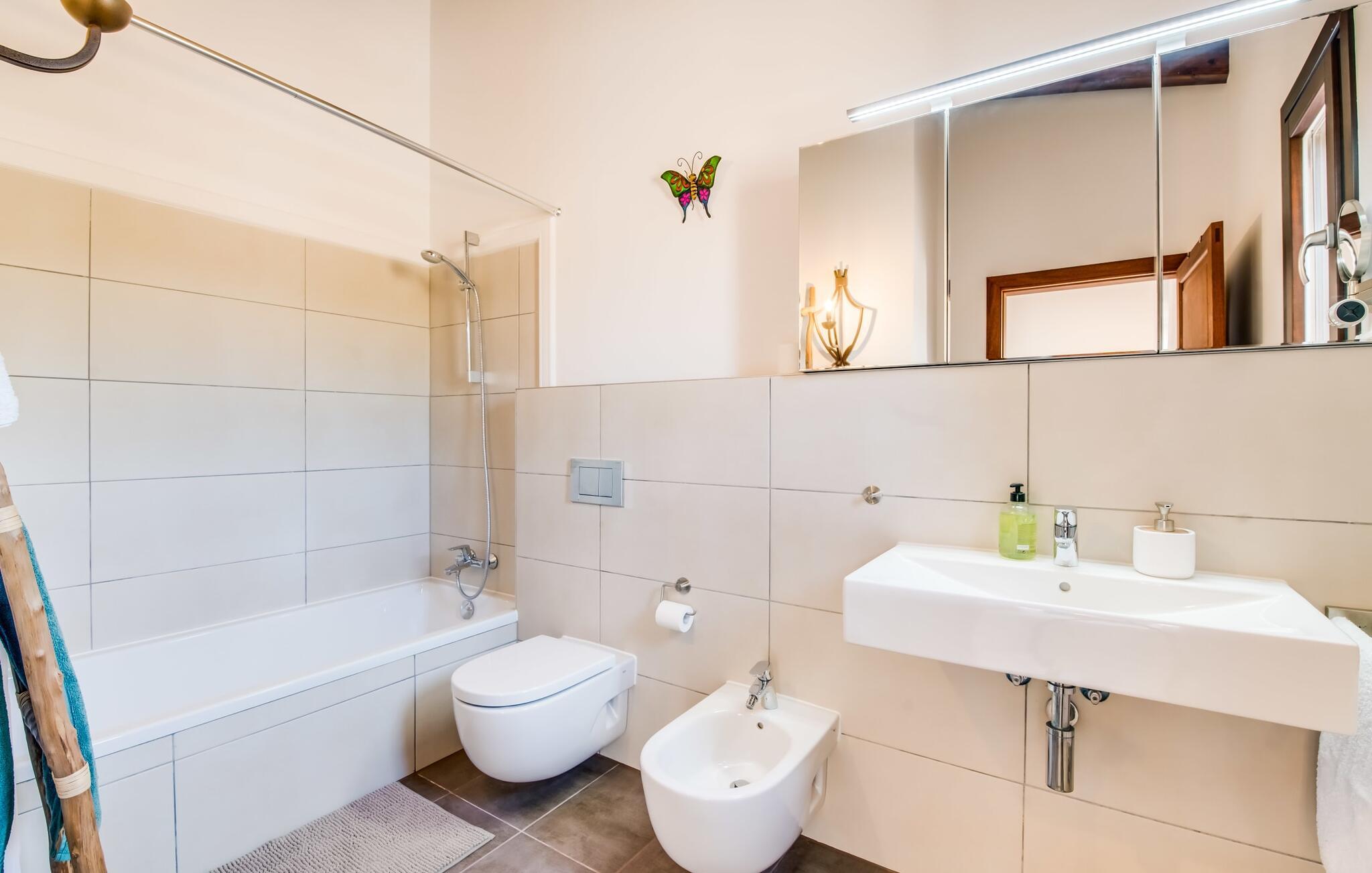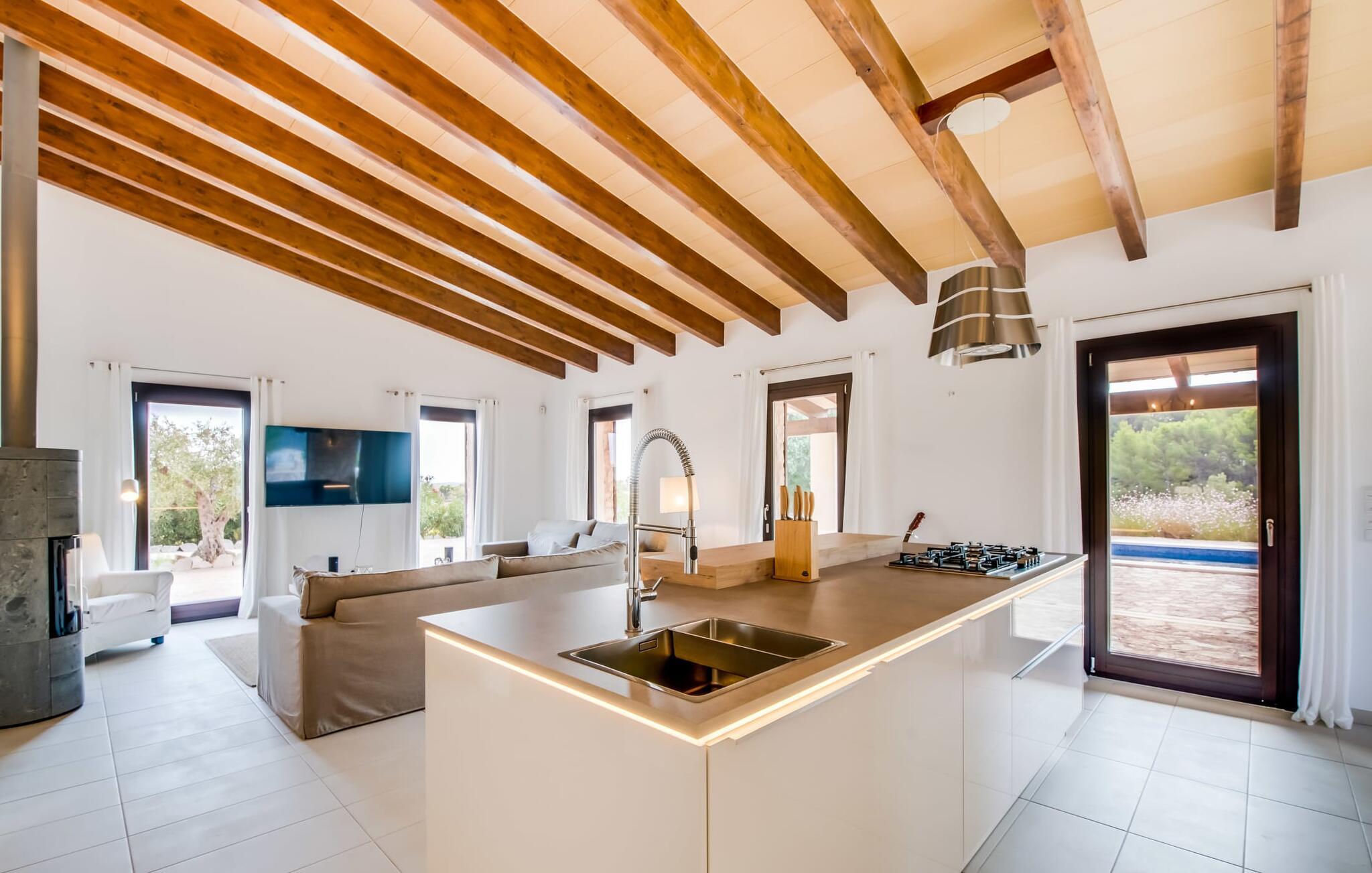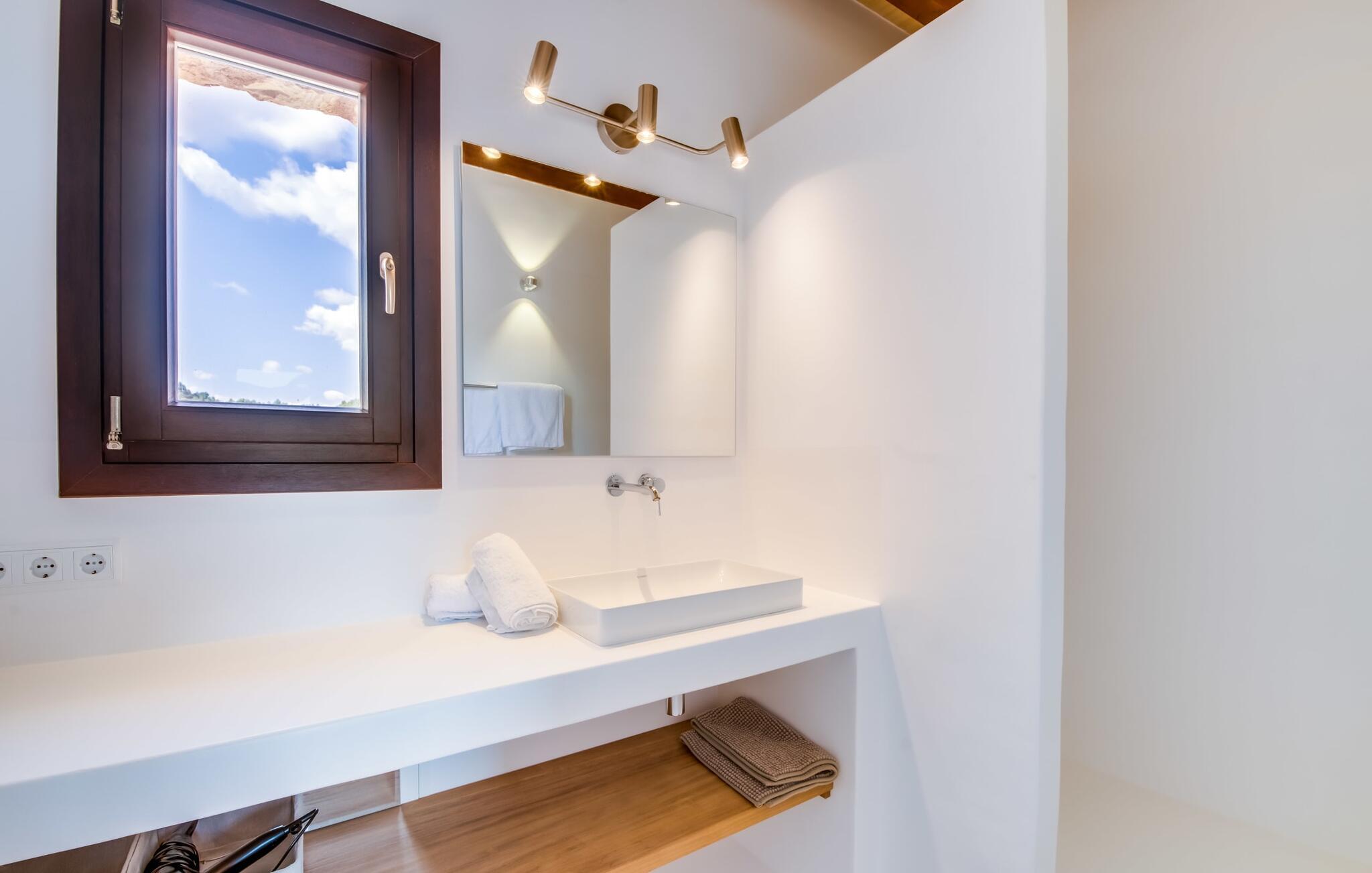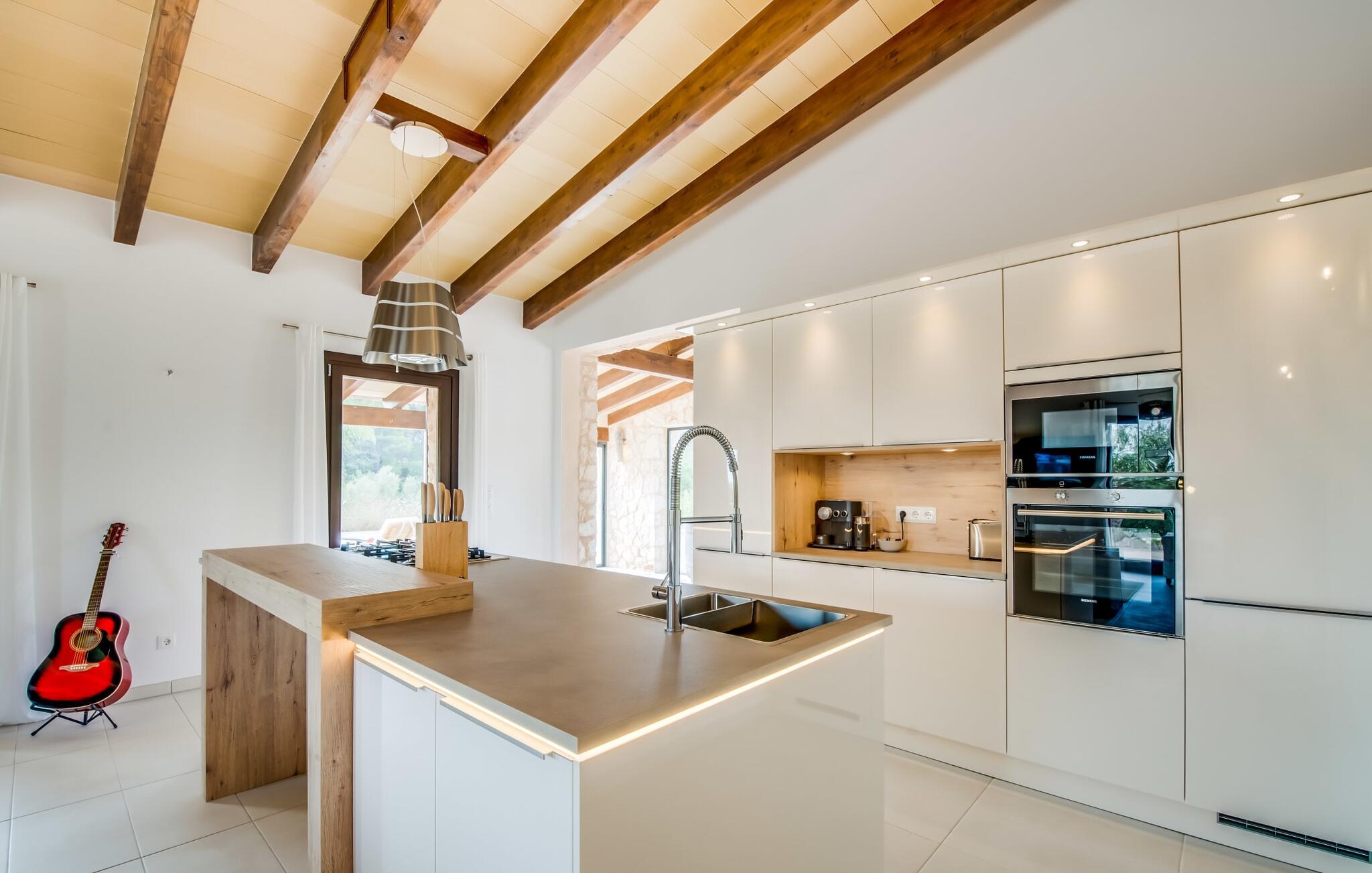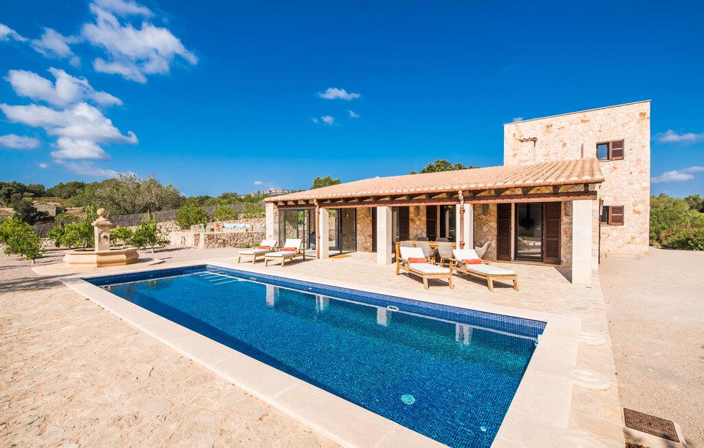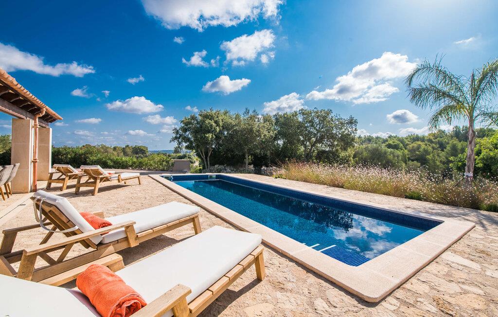Husets åbne og overdækkede terrasser, en chill-out lounge og en velholdt have inviterer til fuldt ud at udnytte dette steds potentiale. Poolen med mørkeblå mosaikfliser er 10 meter lang og har en praktisk indgang med trin. Med en elegant kombination af klassisk natursten og moderne interiør vil dette bondehus fortrylle jer. Moderne klinkegulve, møbler, stilfuld belysning, talrige lige linjer og et meget harmonisk farveskema skaber en hyggelig og elegant atmosfære, hvor I føler jer hjemme. I stueetagen er der et fuldt udstyret køkken åbent til stuen, en spisestue, tre komfortabelt indrettede dobbeltværelser med private badeværelser og en sauna. Endnu et smukt dobbeltværelse med badeværelse en suite afrunder den generøse komfort i dette hyggelige bondehus, som vi uden tøven anbefaler. Stuehuset "La Fuente de Montuiri" ligger i centrum af Mallorca, kun omkring 5 km fra den charmerende landsby Montuiri. Huset er bygget på en 15.000 m² stor grund og byder på en vidunderlig udsigt over den omkringliggende natur. Den nærmeste strand, Platja de Sa Rapita, ligger ca. 26 km væk. S'Arenal, Caló de Sant Antoni og Es Freu de Ses Covetes er inden for en lignende afstand. Bemærk venligst, at denne ejendom ikke accepterer ungdomsgrupper eller polterabender. En ungdomsgruppe på denne ejendom består af personer under 30 år. Book ikke denne ejendom, hvis I er en ungdomsgruppe eller en polterabendgruppe, da jeres reservation vil blive afvist, når den er booket, hvilket også kan være tilfældet ved ankomst til ejendommen eller under jeres ophold, og I vil ikke modtage en refusion.
