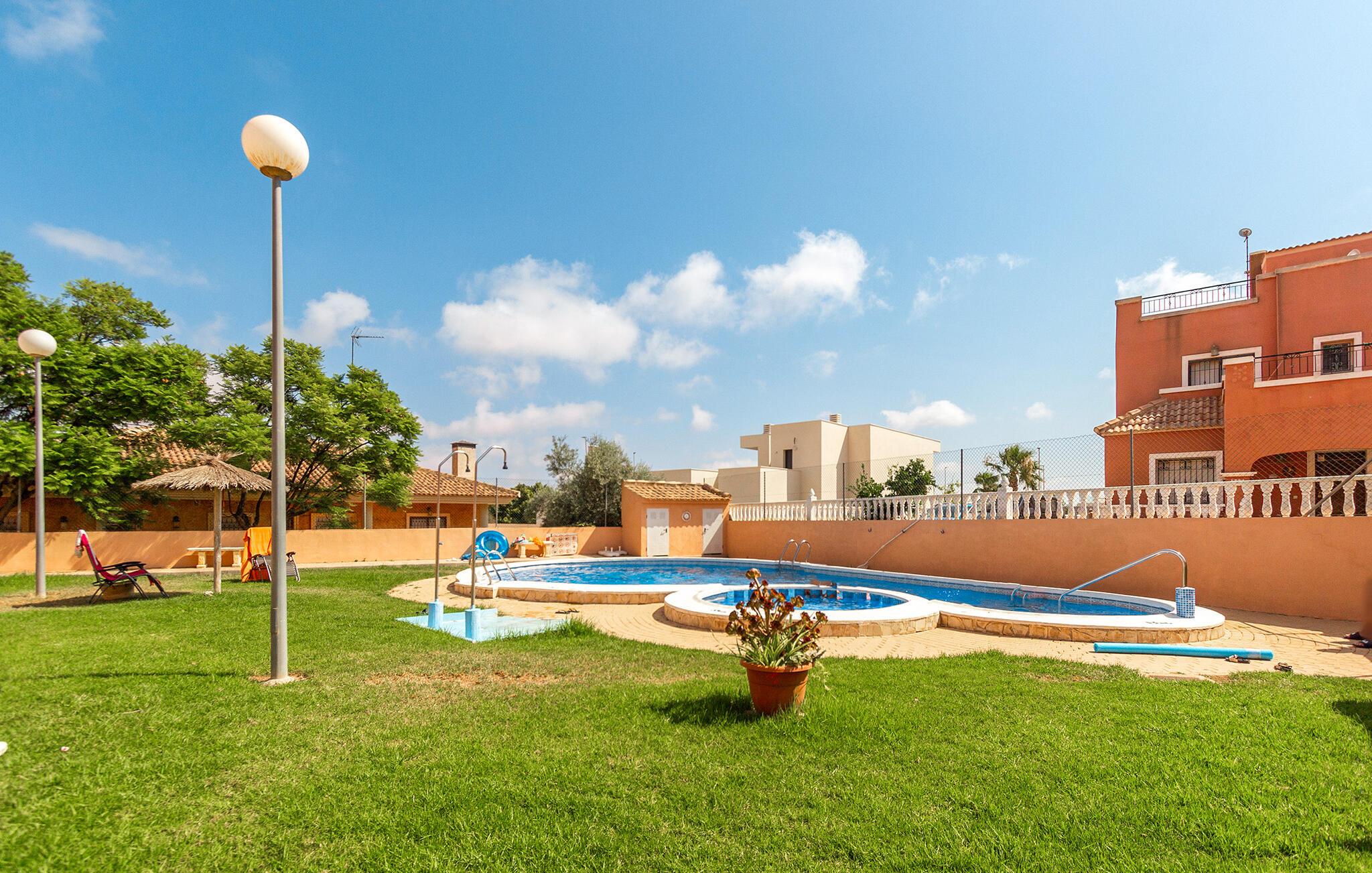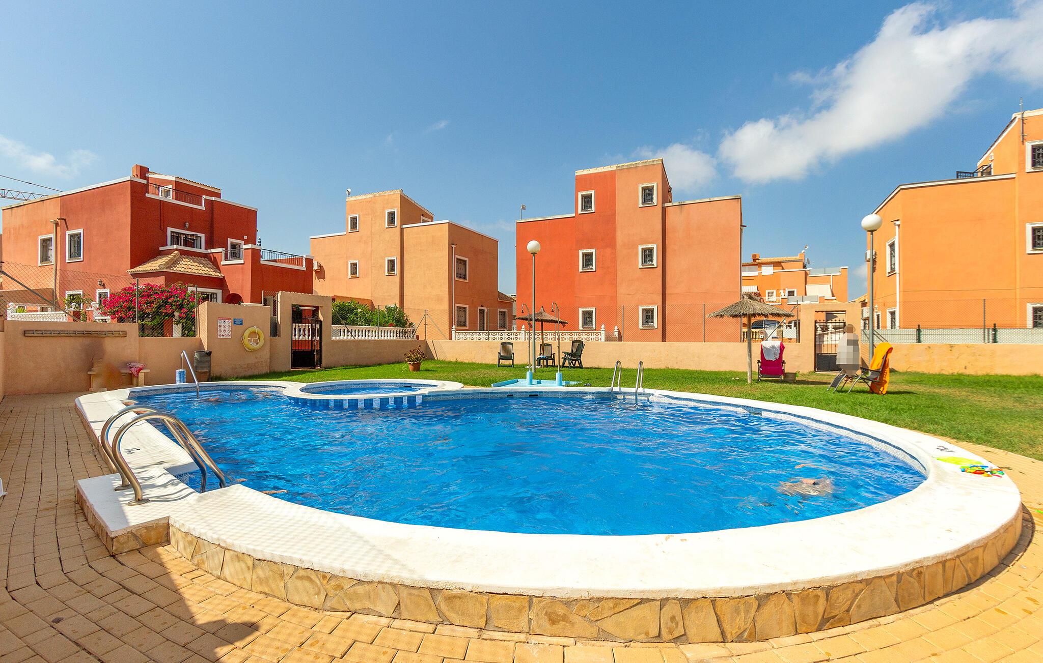 Dette attraktive feriehus i La Herrada nær Torrevieja tilbyder de optimale rammer for jeres afslappende ferie i Spanien. Begynd dagene med en lækker morgenmad og glæd jer til de mangfoldige muligheder, som feriehuset og området byder jer på. Den hyggelige opholdsstue lægger op til aktiviteter sammen, uanset om I vil slappe af i sofaen, se en spændende film eller spille et spil kort. I kan spise og nyde udsigten med en kølig drink på balkonen, som har spisebord og siddepladser. Den fælles pool giver forfriskende afkøling og masser af sjov for hele familien.