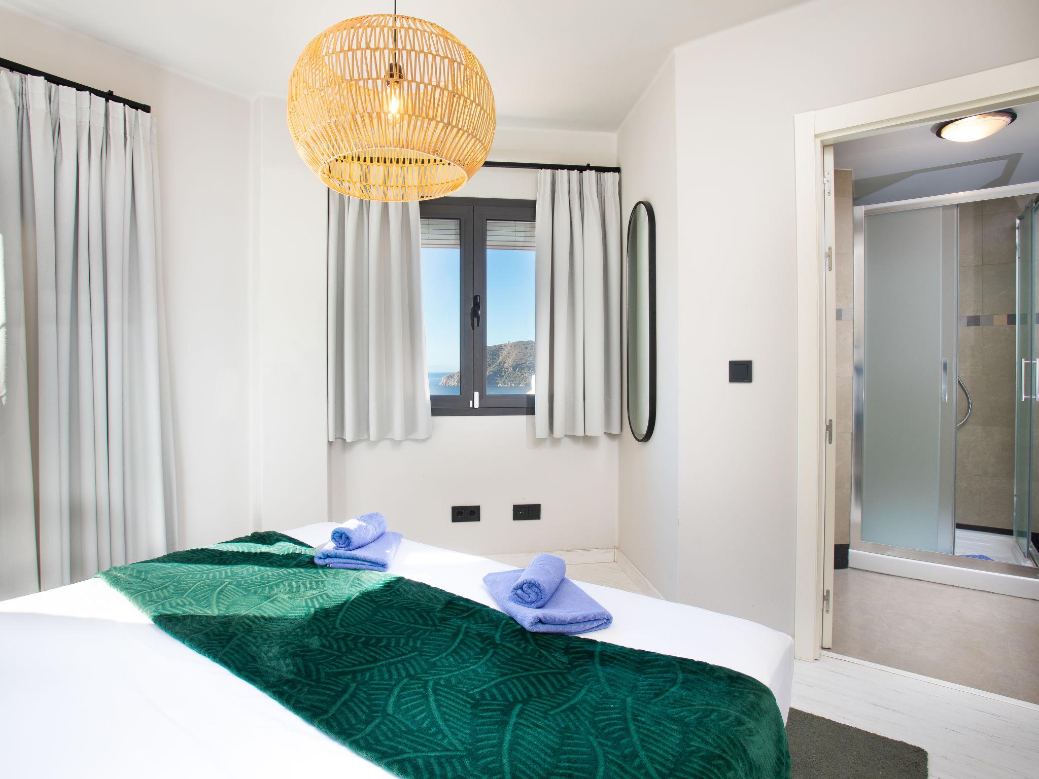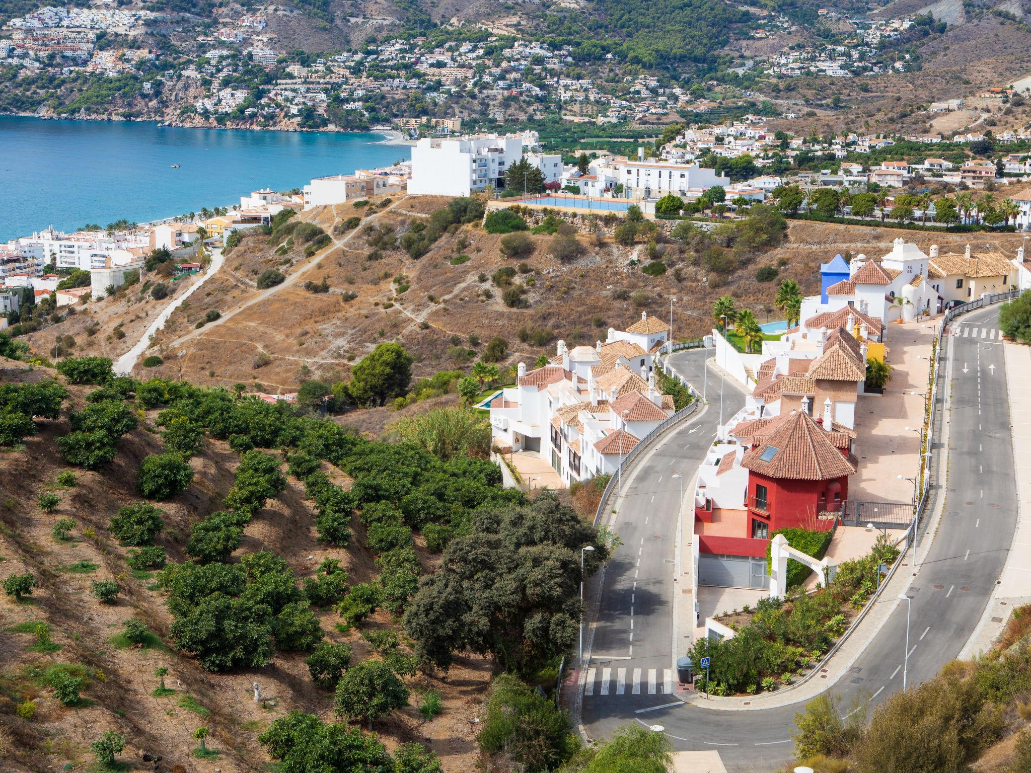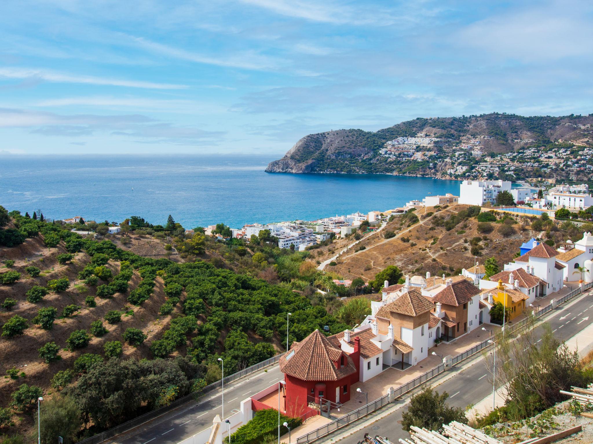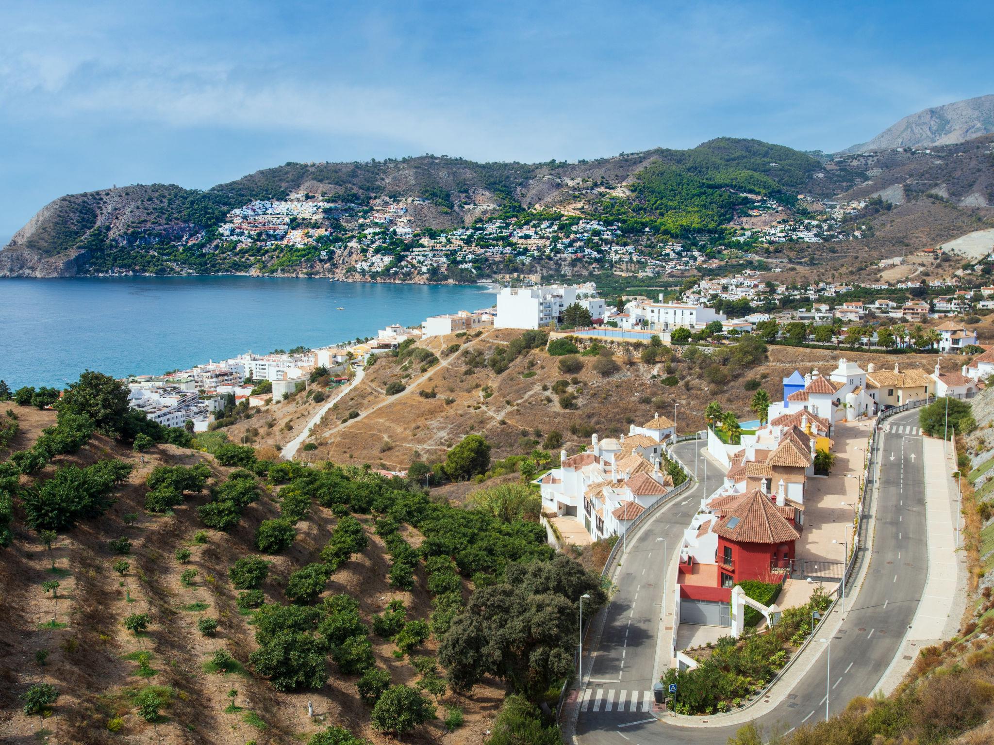 La Herradura: Modern, beautiful, comfortable semi-detached house "Bahia", 3 storeys. In a quiet, sunny position residential area (villas), 700 m from the sea, 700 m from the beach, south facing position. For shared use: lawn for sunbathing, swimming pool angular (16 x 7 m, depth 100 - 175 cm, seasonal availability: 01.Jan. - 31.Dec.). WC in the pool area, outdoor shower, parking space n 3. Shop 700 m, supermarket, restaurant, bar, bakery, café, bus stop 2 km, railway station 60 km, diving center 2 km. Sports harbour 2 km, marina 2 km, golf course (18 hole) 13 km, surf school 55 km, sailing school 2 km. Nearby attractions: Almuñecar, Salobreña, Las Alpujarras, Valle de Lecrin, Nerja, Frigiliana. Well-known ski regions can easily be reached: Sierra Nevada. Hiking paths: Sierra Tejeda, Sierra Almijara. Please note: no lift. The owner does not accept any youth groups. Loading and unloading of baggage is possible at the holiday house. Property ref. ES5400.601.1 is situated on the same property. This beautiful house gets the sun all day and has beautiful views to the bay of la Herradura from every bedroom. Community pool is 30 meters away from property.