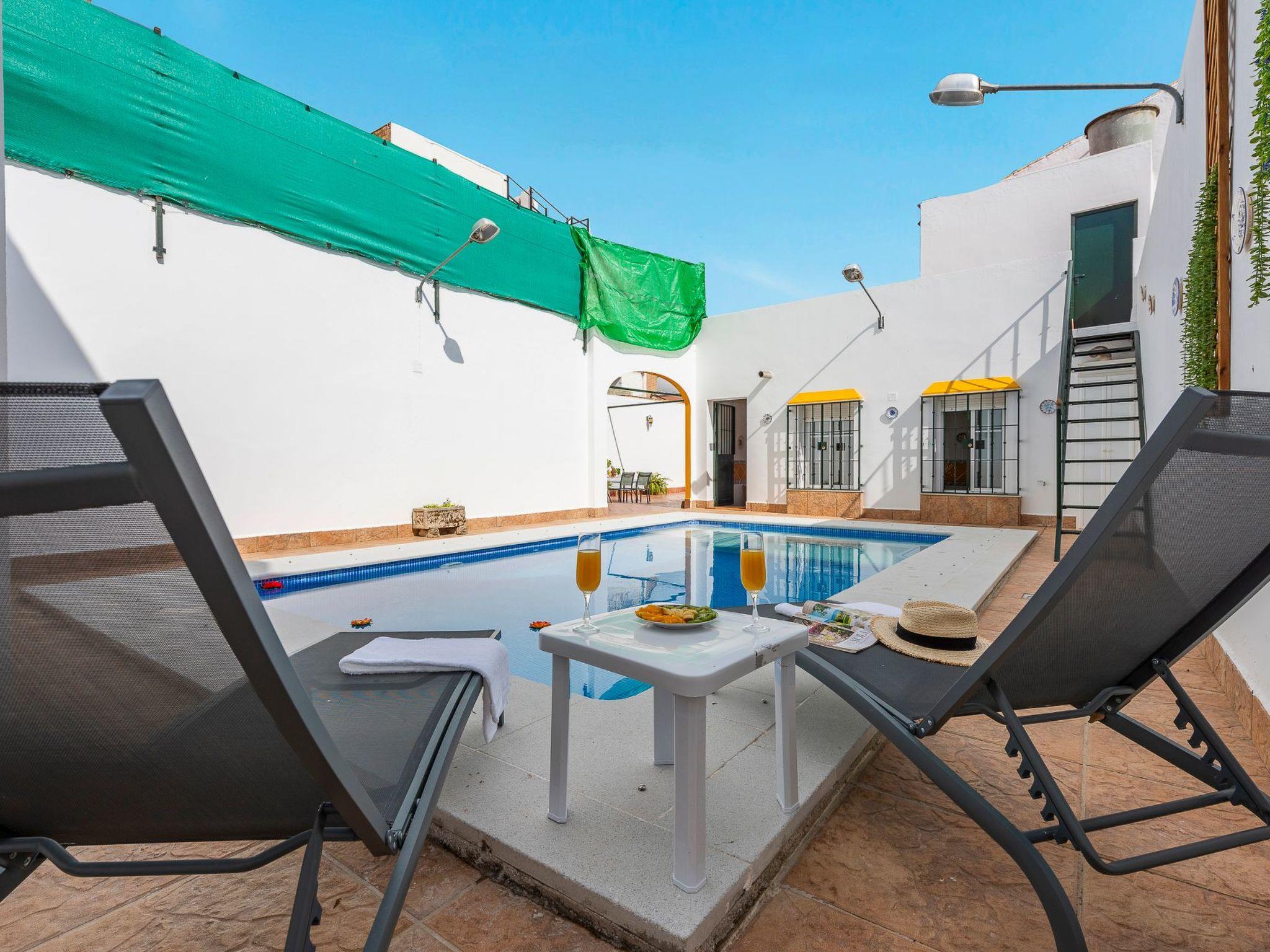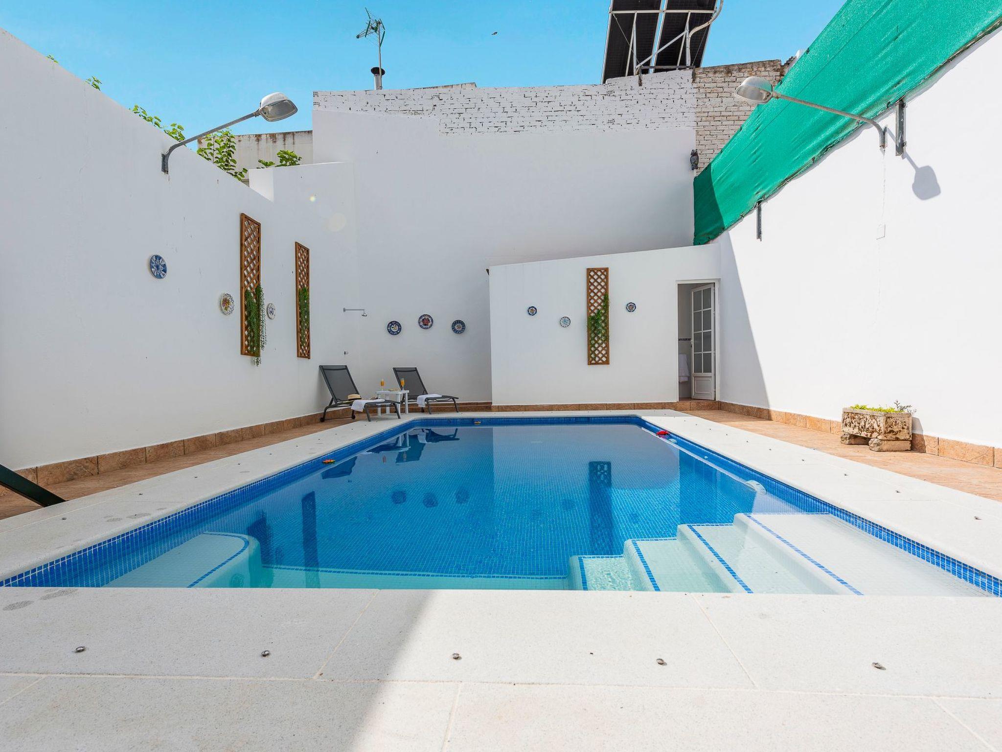Rural village house with private swimming pool in the centre of the typical village of Lantejuela in the Campiña Sevillana of Seville. Up to 10 people in 5 bedrooms.
