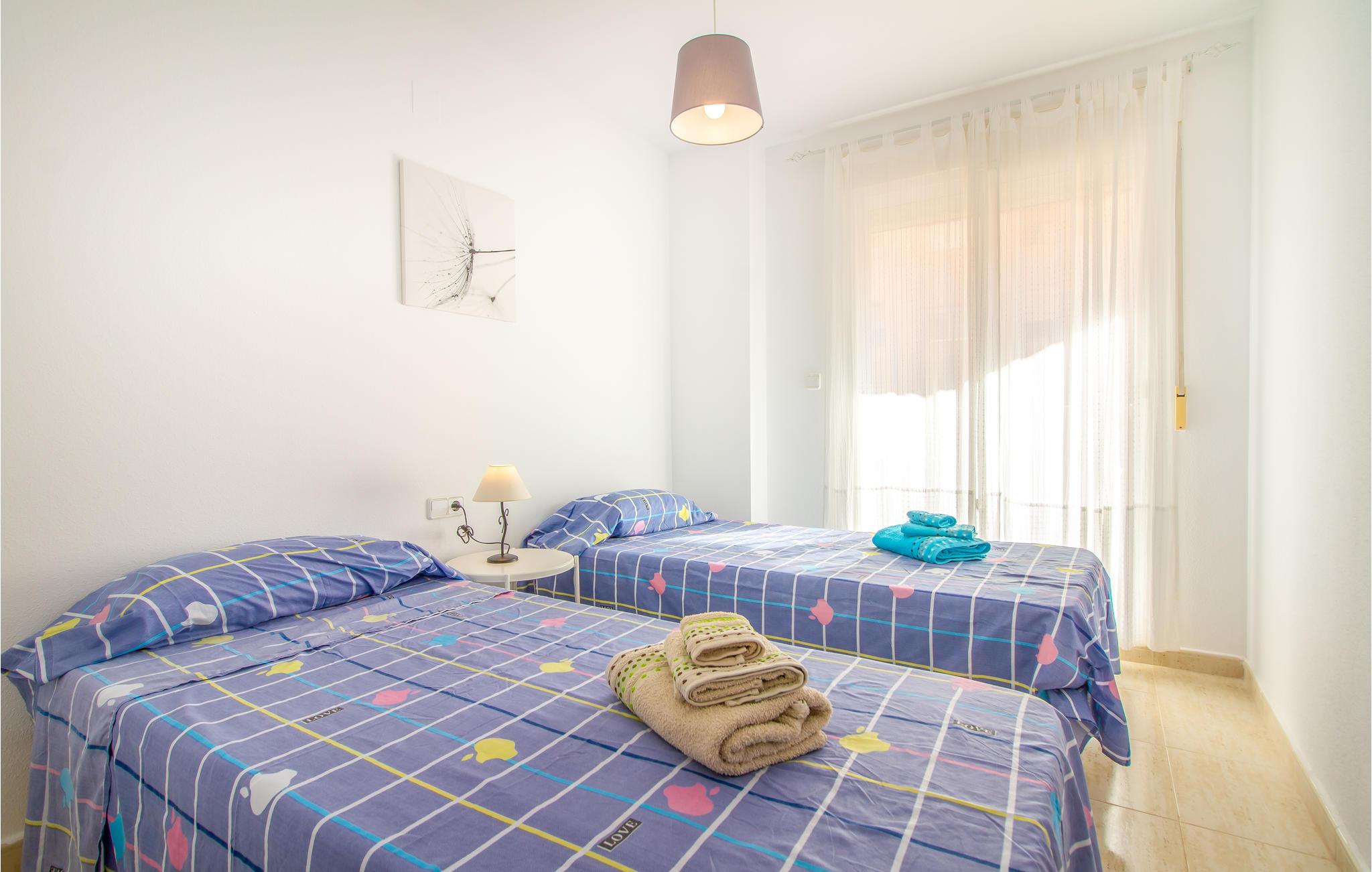 Skøn ferielejlighed direkte ved stranden. Lejligheden ligger i boliganlægget Las Palmeras i La Manga del Mar Menor, som ligger i et af de bedste kvarterer i dette populære ferieområde. Lejligheden består af to skønne soveværelser, en hyggeligt opholdsstue med spiseafdeling, et rummeligt køkken, et badeværelse og en fantastisk terrasse hvorfra der er en skøn udsigt til havet. Det er skønt at kaste sig ud i Middelhavets bølger, men også anlæggets fælles pool står til rådighed med en frisk dukkert. Her er ligeledes en Paddle tennisbane hvis I har brug for lidt afveksling. Her kan I tilbringene en rolig ferie ved stranden i central beliggenhed.