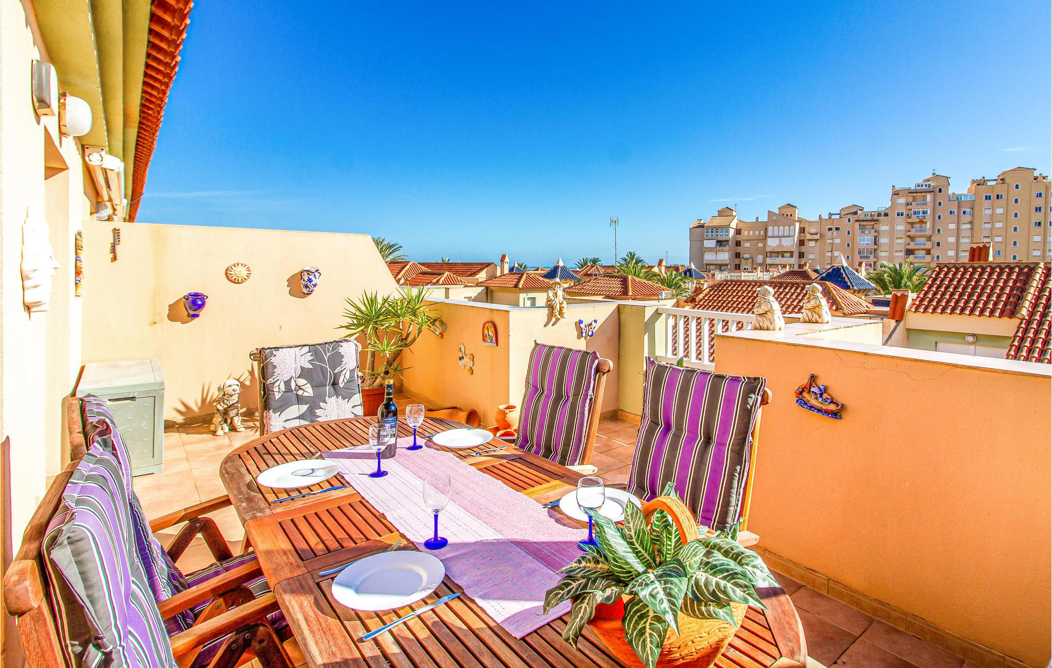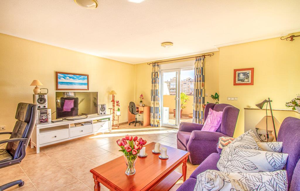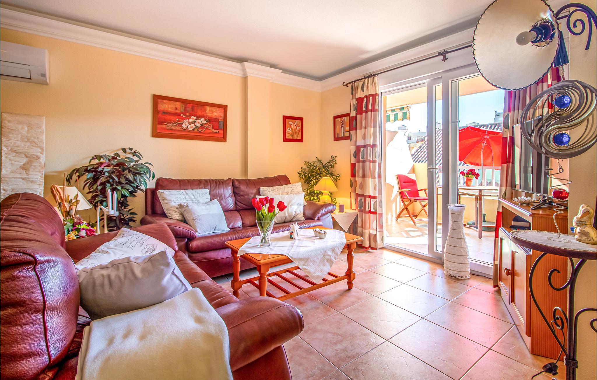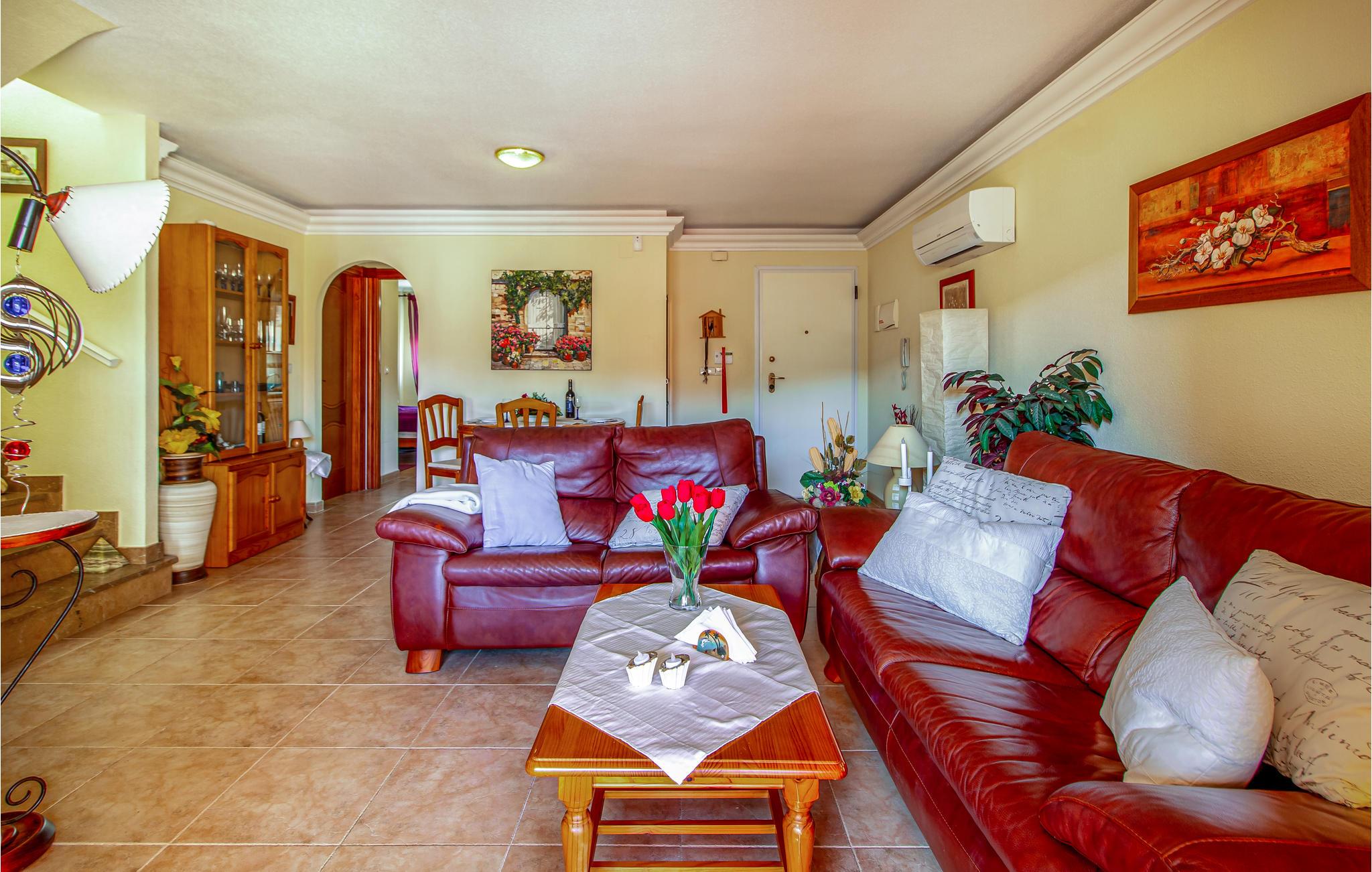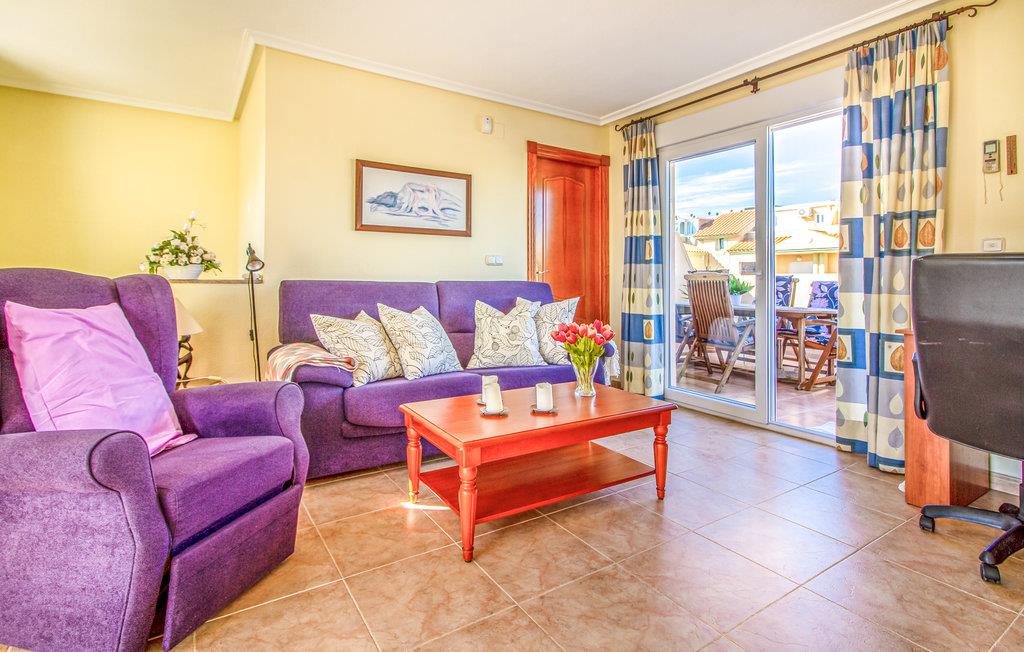 Velkommen til denne skønne, rummelige ferielejlighed, som har gode rammer til den store familie. Lejligheden består både af flere opholdsområder og desuden to altaner, hvor I kan nyde solen, hinandens selskab og dagens måltider. Nyd udsigten til Mar Menor og landskabet bagved. Fællespoolen giver jer nem adgang til at køle ned på de varme dage. Læg jer til rette i solen og pak senere strandtasken, når I vil ned at se havet.