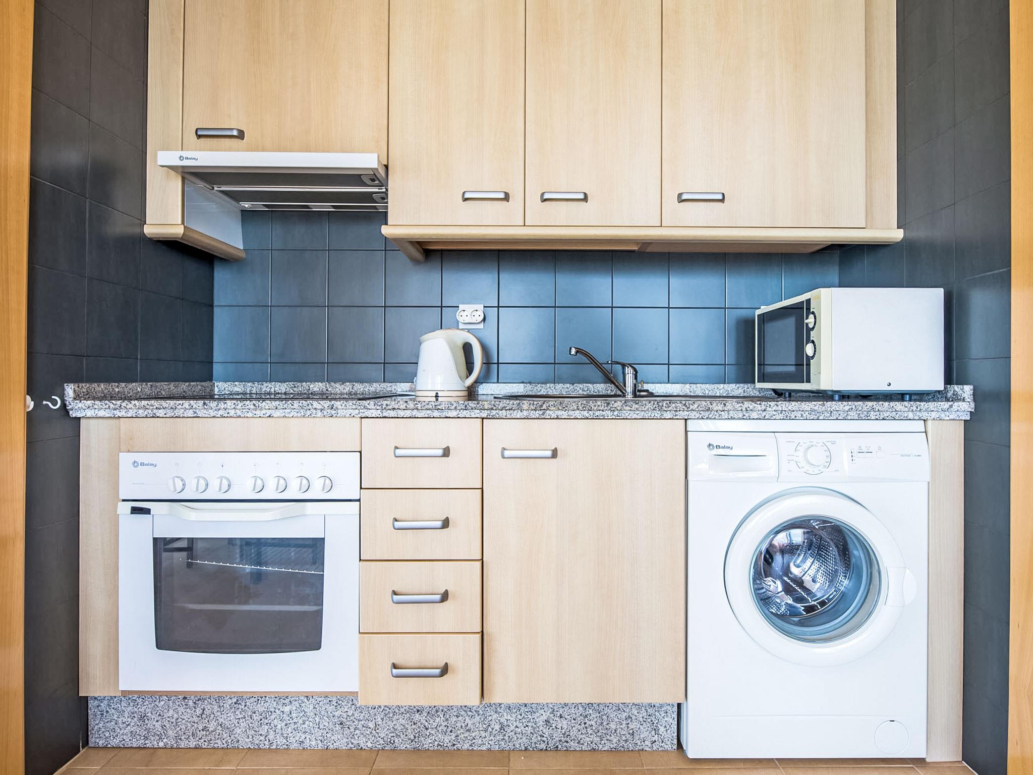 3-room apartment 63 m2 on 6th floor. Comfortable and modern furnishings: living/dining room with 1 sofabed and cable TV. Exit to the terrace. 1 room 12 m2 with 1 french bed. 1 room with 1 bed. Kitchen (oven, 4 ceramic glass hob hotplates, microwave, freezer, electric coffee machine) with dining table. Shower/bidet/WC. Air-conditioning, forced-air heating. Terrace 8 m2. Terrace furniture. View of the sea. Facilities: washing machine, iron. VV.MU.222 // Reg. Nr.: ESFCTU0000300320007227060000000000000000000VV/MU/2226