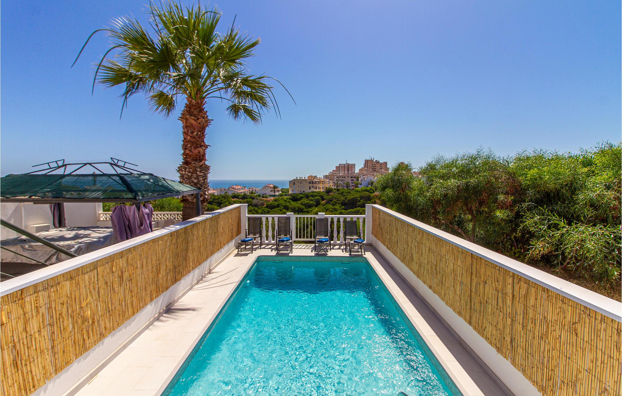 Denne storslåede ejendom med privat pool vil helt sikkert imponere jer. De klassiske, moderne møbler med farvenuancer udstråler en dejlig feel-good atmosfære. Indretningen af værelserne og antallet af badeværelser gør den ideel til at holde ferie sammen med familie eller nære venner. Udearealet er det særlige højdepunkt. Her har I mulighed for sjov og afslapning, enten i poolen eller på den store tagterrasse med grillplads. Der er frit valg!