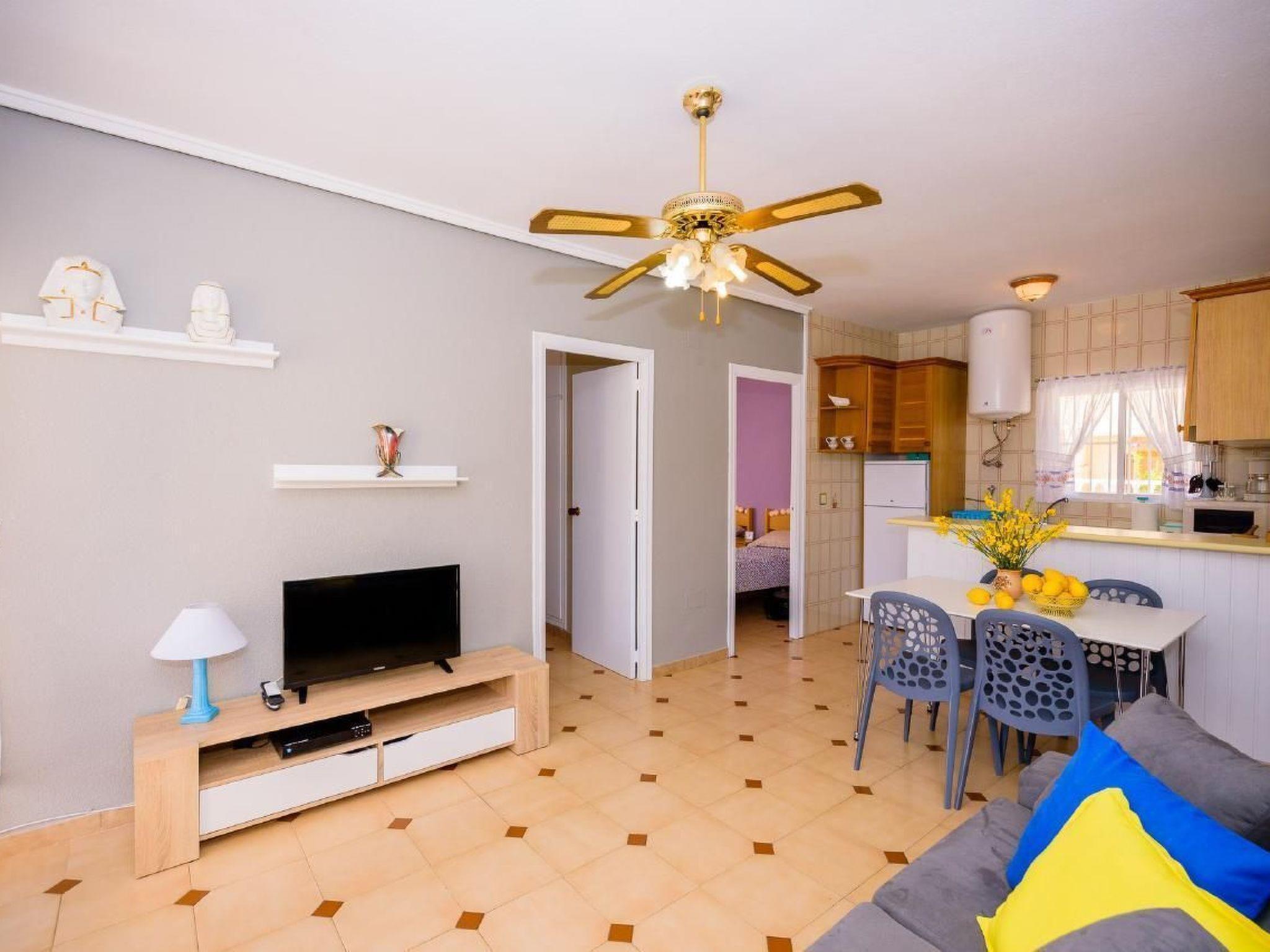 The holiday flat "Limonka" is located in the village of La Mata, just 150 metres from the beautiful sandy beach. It takes approximately 40 minutes by car from Alicante airport. In the nearby centre of La Mata you will find numerous bars, restaurants and shops, all within walking distance of the holiday home.The ground floor flat consists of a living room with dining area and access to a terrace with garden furniture, as well as an open kitchen equipped with all household appliances, including dishwasher, washing machine, microwave, toaster, kettle, dishes, pots, etc. Bed linen and towels are also included in the price of your stay. You will find two bedrooms: a master bedroom with a double bed (135 x 190 cm) and a second bedroom with 2 single beds. In the living room there is a sofa bed that can be used as an extra sleeping place for two people. The living room also has a fold-out table, a TV with satellite channels and Wi-Fi, as well as air conditioning and a ceiling fan. The bathroom is equipped with a bathtub with shower. This is a well-equipped flat in a great location. The beautiful sandy beach of La Mata and proximity to all amenities will make you feel the atmosphere of a Spanish town. The Laguna Salada lake with its mud and salt water baths is 3 km from the flat. Other attractions are the viewpoints overlooking the lakes and the numerous cycling routes. Torrevieja, with its many bars, restaurants and supermarkets, can be reached in a short drive or by local bus. The modern Habaneras shopping centre is less than 10 minutes away and the even larger Zenia Boulevard shopping centre can be reached in a good 15 minutes by car.