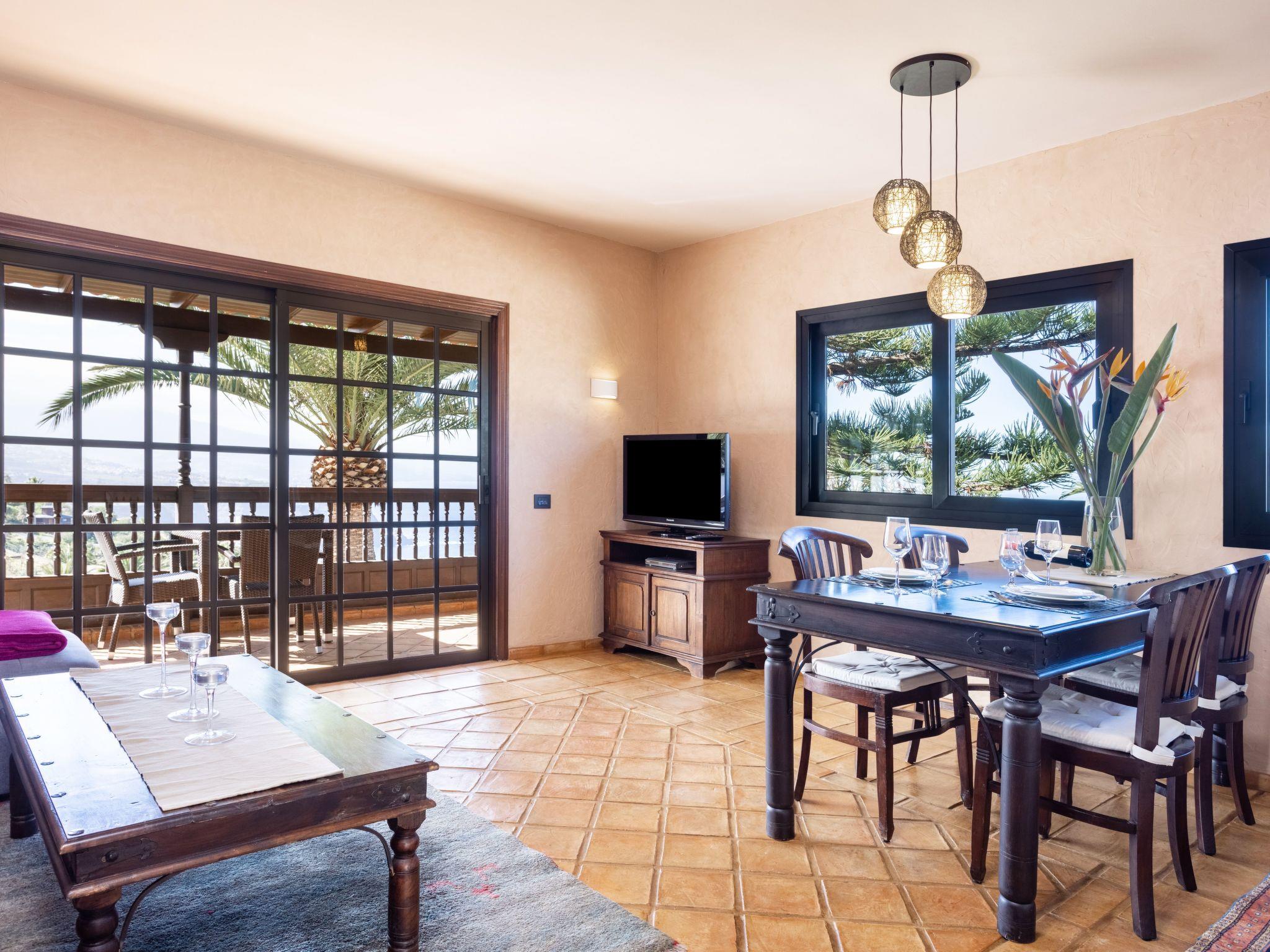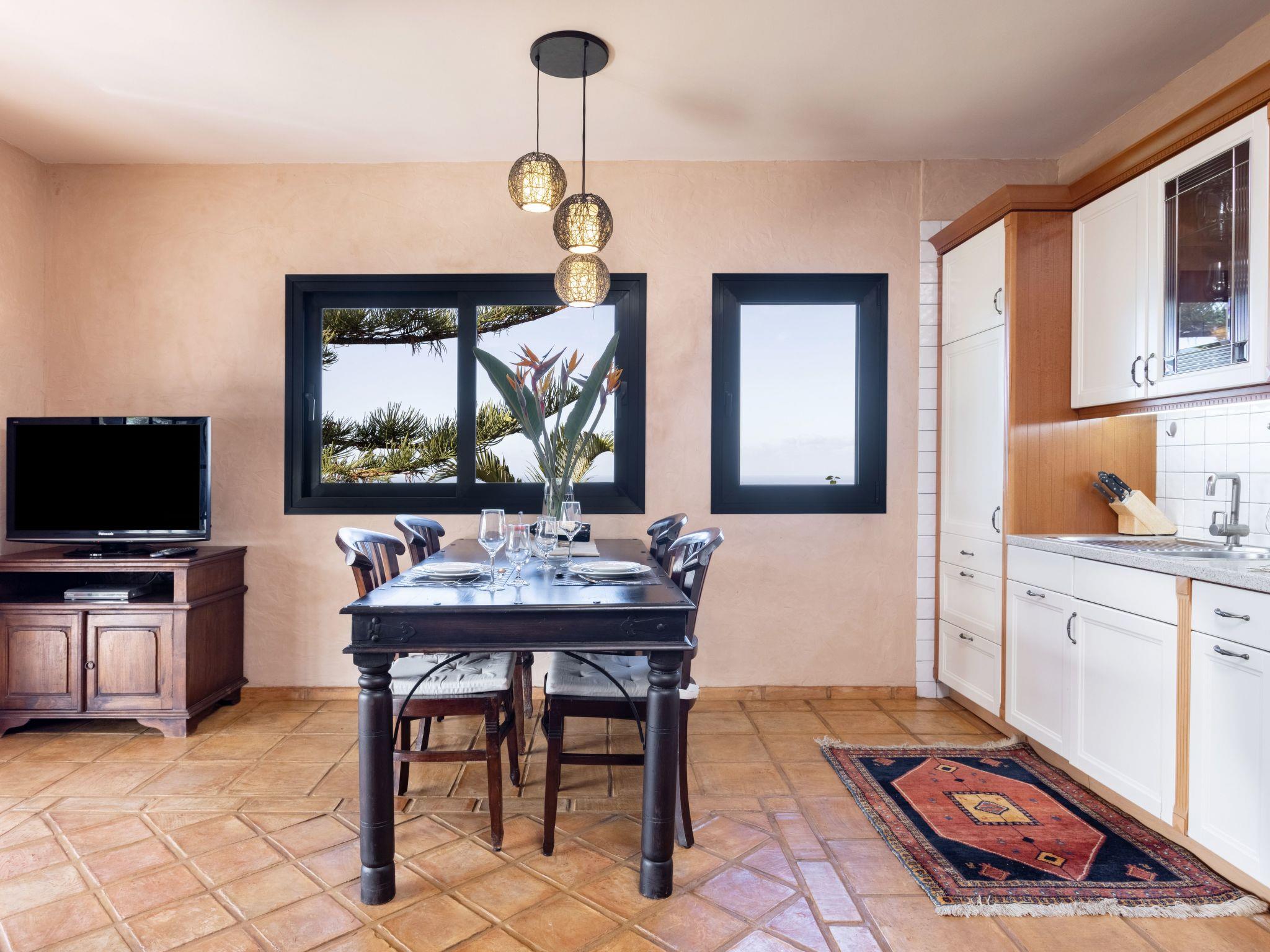 The holiday home is an ideal starting point for numerous excursions in the surrounding area. You can explore the island and go hiking in the mountains. You can socialise with the Canarian people or enjoy the peace and quiet to relax or reflect on your life goals. Spend time here alone with your partner or with your family. If you love good food, there are good restaurants nearby or you can cook for yourself and buy fresh vegetables at the neighbouring farmers' market or fresh fish in the shop nearby. The nearest restaurant is about 200 metres away. The nearest town with shops is around 1500 metres away. The nearest beach, El Caleton, is around 2000 metres away. The tourist town of Puerto de la Cruz is around 15 kilometres away. Plunge into the hustle and bustle there and return to your oasis of peace.