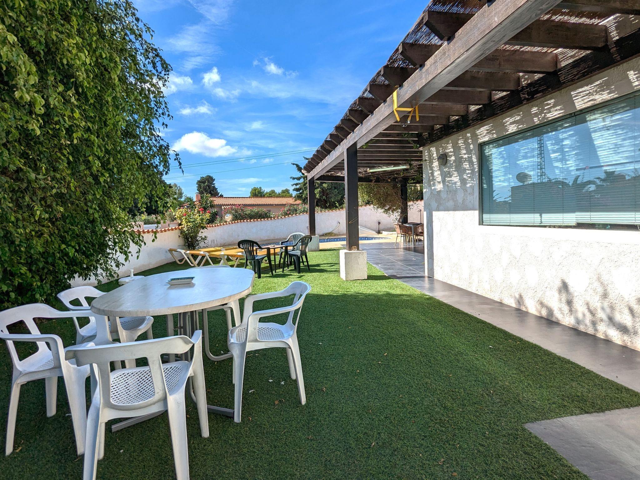 La Nucia: Large, simple house "Casa Mexico", detached. On the outskirts, 6 km from the centre of La Nucia, outside the resort, 6 km from the centre of Benidorm, in a quiet, sunny position residential area (villas), 6 km from the sea, 6 km from the beach. Private: property 600 m2 (fenced), garden with lawn and trees, swimming pool (2 x 4 m, seasonal availability: 01.May. - 30.Sep.). Outdoor shower, terrace, garden furniture, parking on the premises. Shop 900 m, supermarket 800 m, restaurant, bar, bus stop "Benidorm" 300 m, sandy beach "Benidorm" 6 km. Golf course (18 hole) 3 km. Nearby attractions: Aqualandia 8 km, Mundomar 8 km, Terra Mitica 6 km, Alicante 45 km, Aeropuerto Alicante 65 km, Terra Natura 6 km. Please note: car recommended. Baby equipment on request. The owner does not accept any youth groups. 1st floor is closed and not occupied.