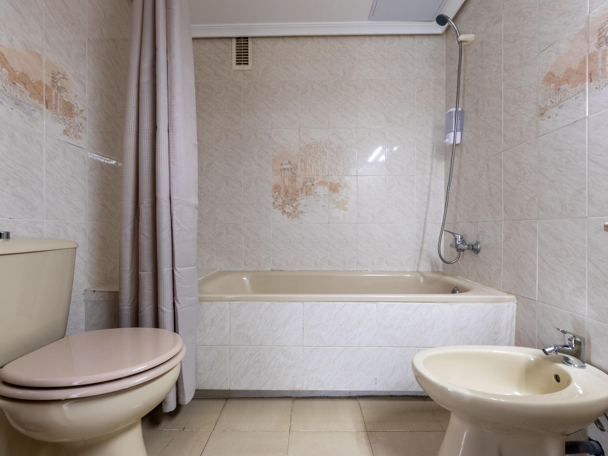 La Pineda 2 km from Salou: Cosy apartment block "Turquesa". In a sunny position, excellent location: right in the centre but still quiet, 300 m from the sea, 300 m from the beach. For shared use: swimming pool angular (10 x 5 m, depth 80 - 160 cm, seasonal availability: 02.Jun. - 15.Sep.). Children's pool, outdoor shower. In the house: lift. Shop 100 m, supermarket 200 m, restaurant, bar 100 m, bus stop "Bus La Plana parada Aquopolis" 300 m. Golf course (18 hole) 100 m. Nearby attractions: parque temático Portaventura 2 km, parque acuático Aquopolis 500 m, Spa Aquum 500 m. Groups of teenagers on request only.