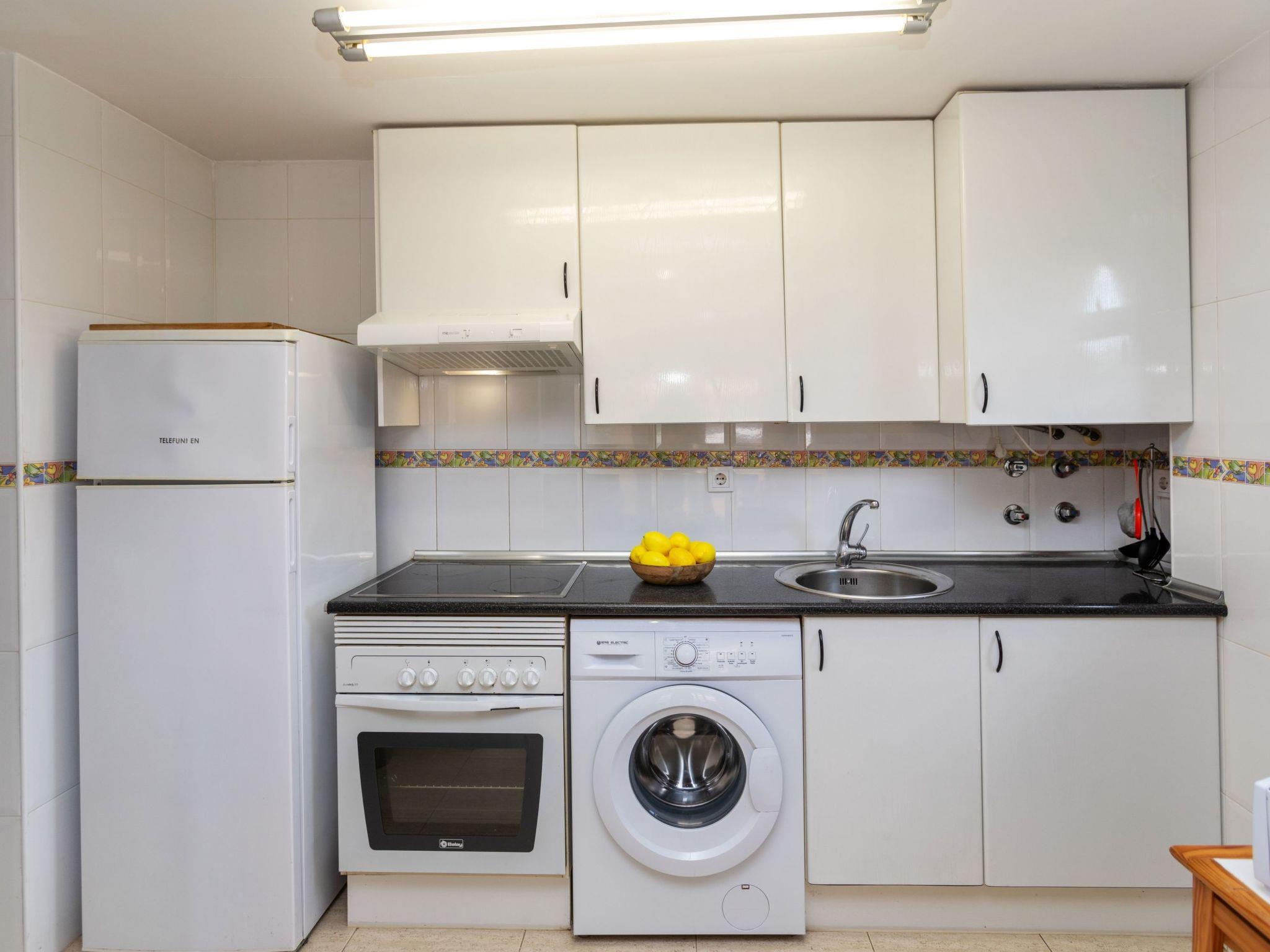 "Montserrada 2", 3-room apartment 58 m2 on 1st floor. Object suitable for 4 adults + 1 child. Bright, practical and comfortable furnishings: living/dining room with 1 double sofabed (120 cm, length 180 cm), satellite TV, air conditioning and forced-air heating. Exit to the terrace. 1 room with 1 french bed (135 cm, length 190 cm), air conditioning and forced-air heating. Exit to the terrace. 1 room with 2 beds (90 cm, length 190 cm), air conditioning and forced-air heating. Exit to the terrace. Kitchen (oven, 3 ceramic glass hob hotplates, toaster, kettle, microwave, freezer, electric coffee machine) with boiler (50 litres). Bath/bidet/WC. Terrace 20 m2. Terrace furniture. Side view of the swimming pool. Facilities: washing machine, iron, hair dryer. Internet (WiFi, free). Parking space n 8 (roofed), height 210 cm, width 250 cm. HUTT-002505 // Reg. Nr.: ESFCTU00004302400067751700000000000000000HUTT-0025058