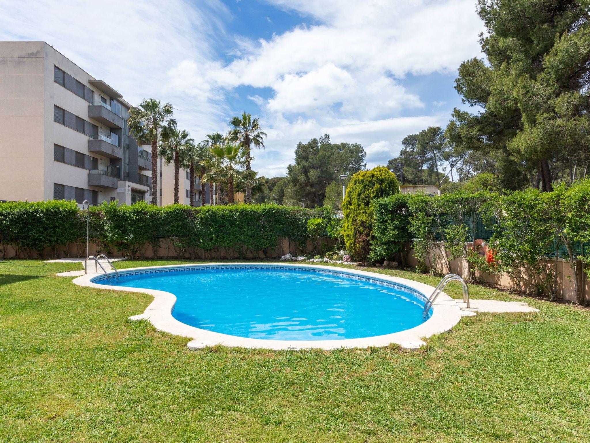 Small, cosy apartment block "Montserrada". In the resort La Pineda, in a busy position, 450 m from the sea. For shared use: garden with lawn, swimming pool (10 x 6 m, depth 100 - 160 cm, seasonal availability: 01.Jan. - 31.Dec.). Outdoor shower, children's playground. In the house: lift. Roofed, parking, communal covered parking. Restaurant, bar 450 m, bus stop "Bus La Plana parada El Raco" 300 m, railway station "Estación Tarragona" 8 km, sandy beach 450 m. The owner does not accept any groups. The owner does not accept any youth groups.