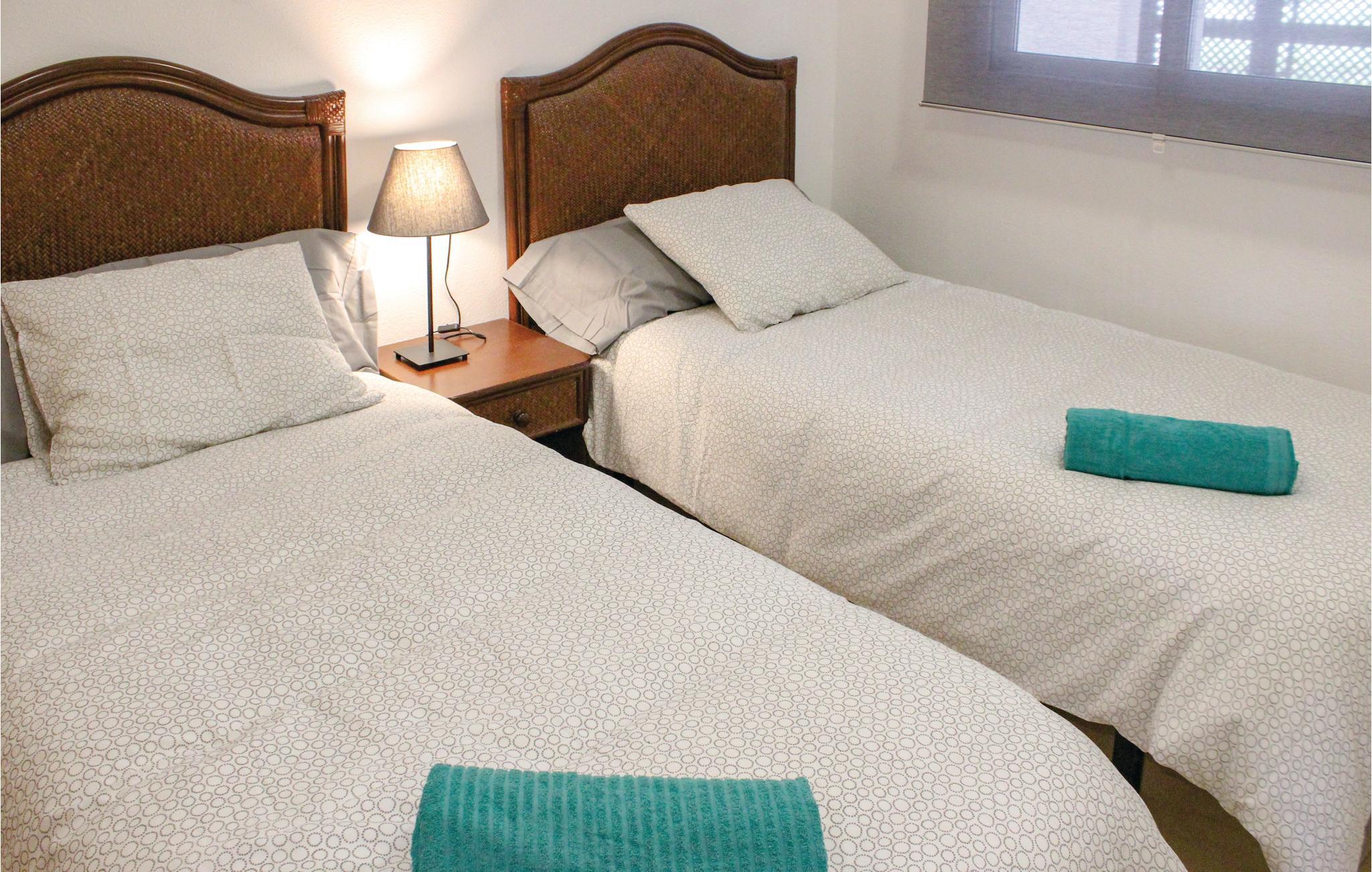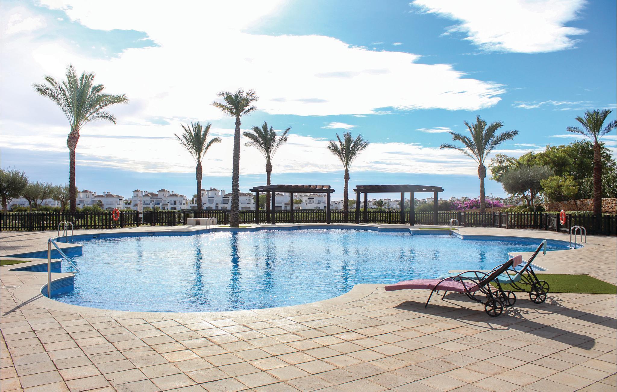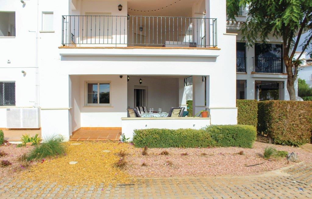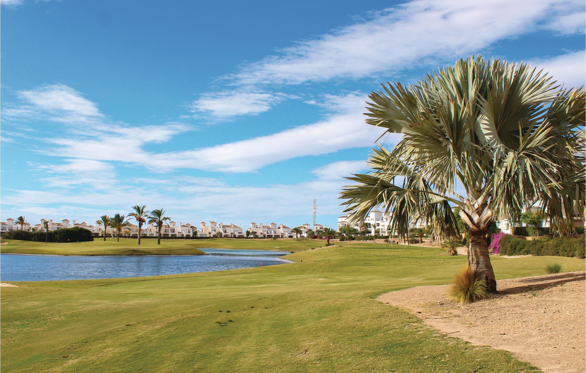 Pragtfuld ferielejlighed i stueplan i La Torre Golf Resort i Torre Pacheco, med to soveværelser, et badeværelser og plads til op til fire personer. I stuen er der endnu en soveplads. Fra den rummelige terrasse er der en fantastisk udsigt over golfbanens sø og fællesområdet med flere pools ligger kun 100 m væk. Lejligheden er udstyret smagfuld med kvalitetsmøbler, ligesom der også er skønne havemøbler på den 104 m stor grund. Der er 19 km til San Javier lufthavnen, der er 21 km til stranden og havet og både restauranter og supermarkeder ligger lige i nærheden. Resortet bliver overvåget 24/7. Torre Pacheco ligger i skønne omgivelser med marker og de karakteristiske vindmøller, her er der alle muligheder for en ferie fuld af afvekslende oplevelser.