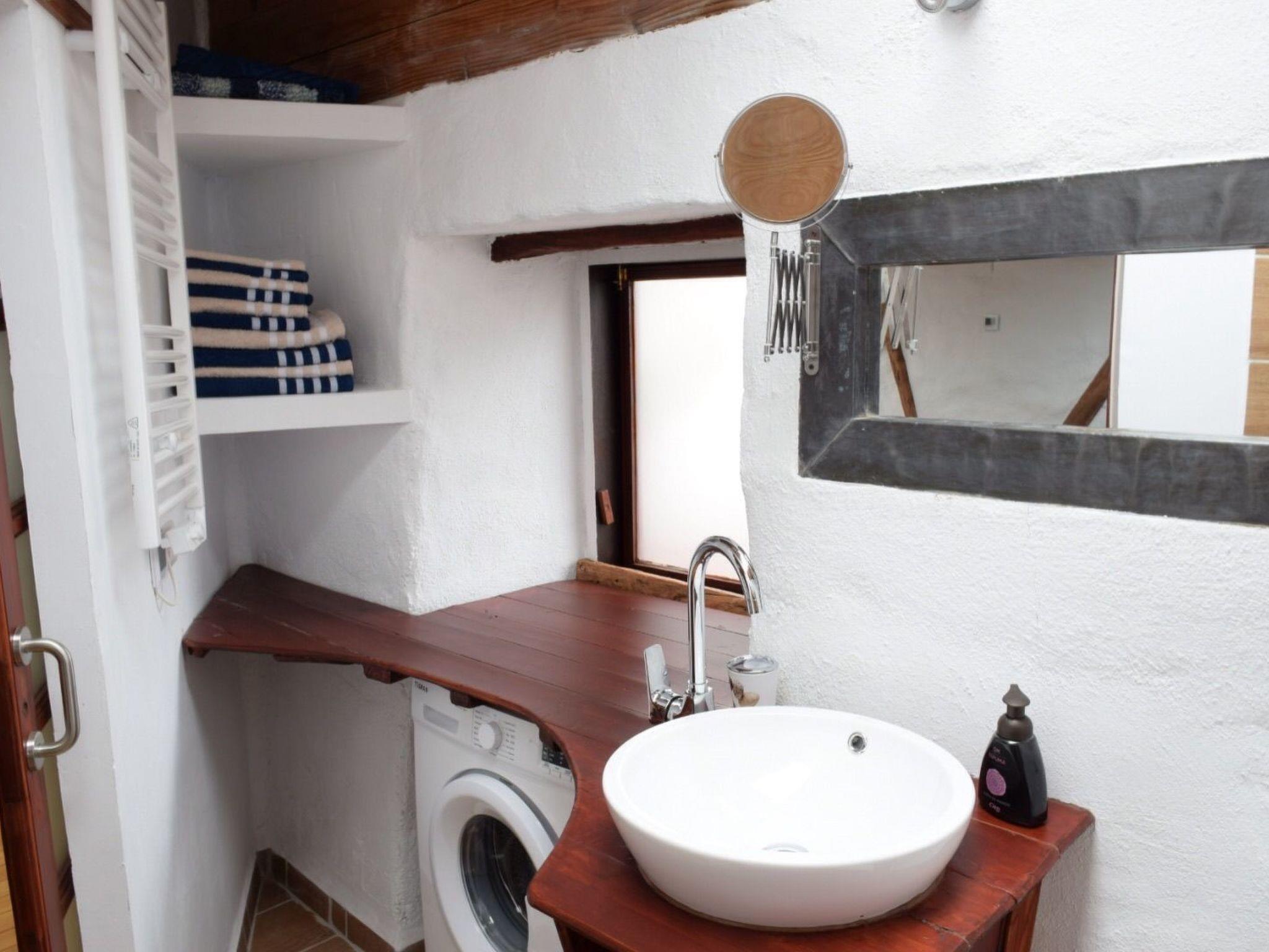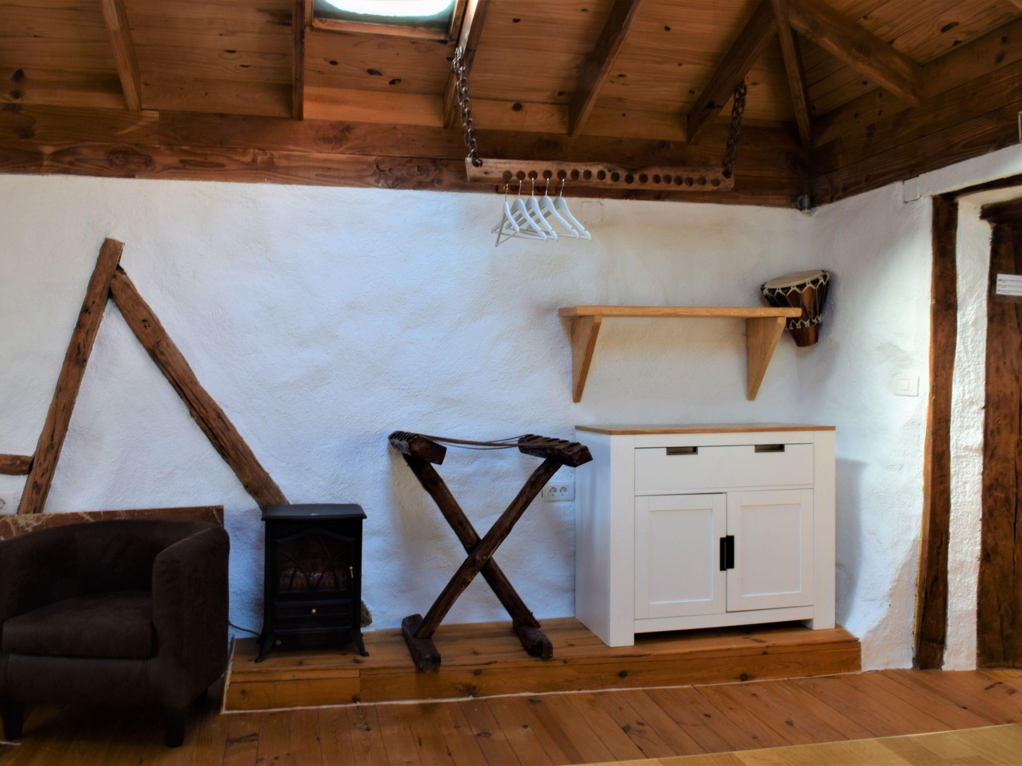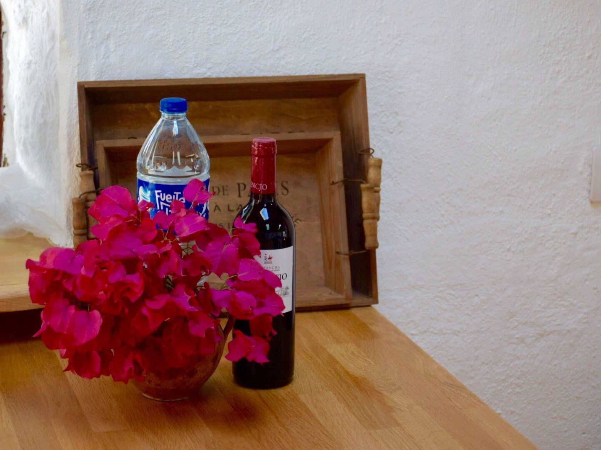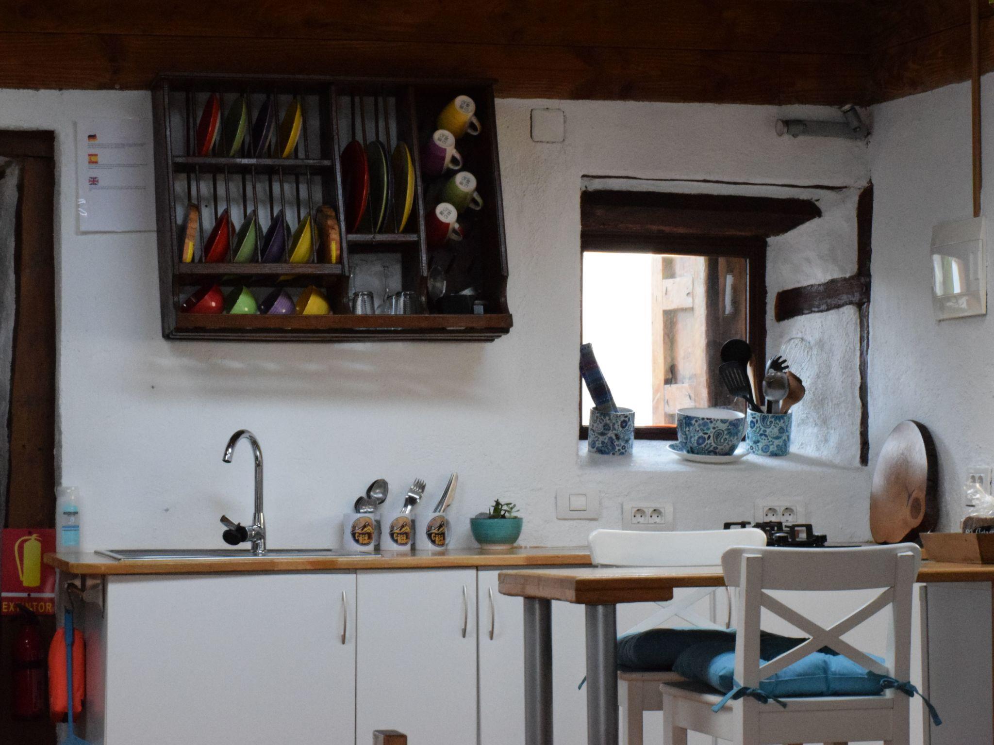 The sustainably run finca holiday home has an area of 45 sqm and consists of one large room. There is a flatscreen TV and a double bed, which can also be placed separately. The kitchen is integrated into the room. The dining table separates the fully equipped kitchen with cooker, fridge, oven/microwave, coffee machine, kettle, blender and lemon squeezer from the living/sleeping area. The adjoining bathroom has a WC, a walk-in shower and a washing machine.