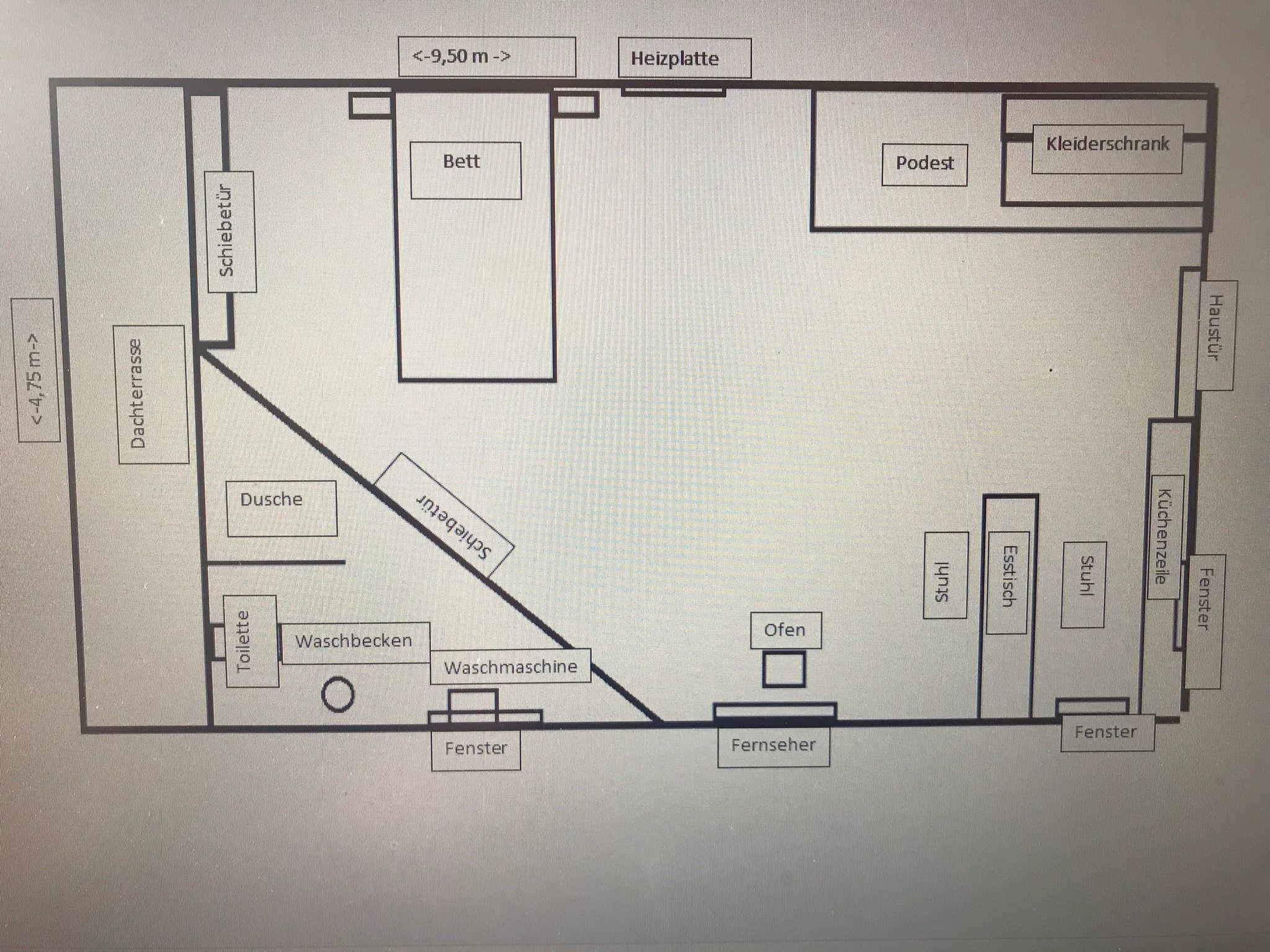 - Number of bedrooms: Studio apartment (no separate bedroom)