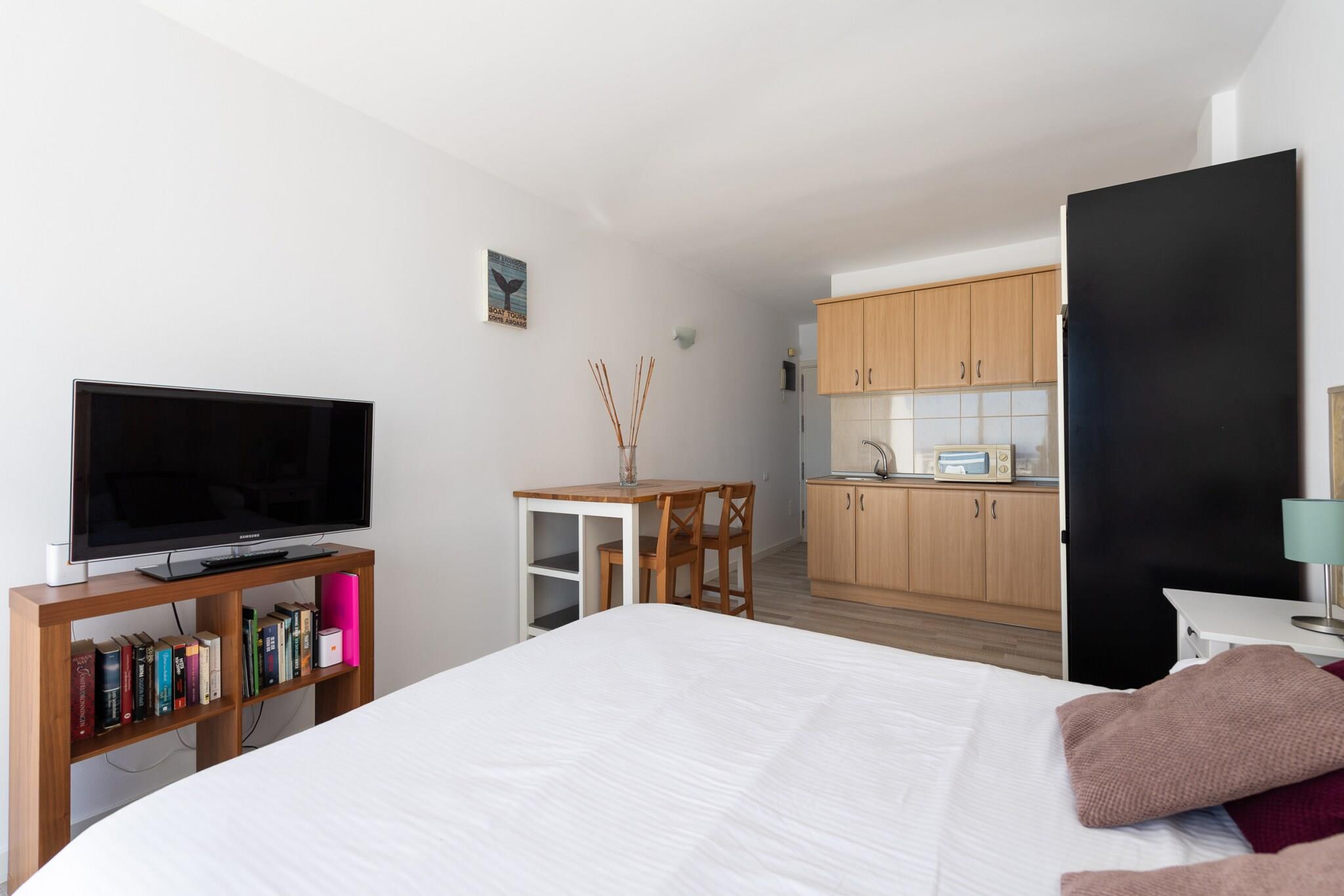 Vågn op til lyden af ??bølgerne og afslut din dag med uforglemmelige solnedgange over Atlanten. Denne lyse og hyggelige lejlighed ved stranden byder på en udsigt på forreste række af Las Canteras-stranden, lige i hjertet af Las Palmas de Gran Canaria. Den private balkon, komplet med komfortable udendørsmøbler, er det perfekte sted at nyde en stille morgenmad eller en aftendrink, mens du nyder det evigt skiftende havlandskab på klare dage, du kan endda få et glimt af Teide-bjerget på Tenerife._x000D_ _x000D_ Træd udenfor og oplev Las Canteras, en af ??de bedste bystrande i verden. Denne 3,8 km lange strækning af gyldent sand er beskyttet af et naturligt rev kendt som "La Barra", der skaber roligt, svømmevenligt vand og en levende undervandsverden, der er ideel til snorkling. Langs promenaden finder du livlige caféer, friske fiske- og skaldyrsrestauranter og en blanding af afslappede og surfvenlige zoner, fra det familievenlige La Puntilla til den energiske surfscene ved Alfredo Kraus Auditorium._x000D_ _x000D_ Indvendigt er lejligheden fuldt udstyret til at gøre dit ophold så behageligt som muligt. Det har et funktionelt køkken med alt det nødvendige, et moderne badeværelse, højhastigheds-Wi-Fi og et afslappende soveområde med en dobbeltseng. Uanset om du rejser for en afslappende strandferie eller for at udforske byens pulserende kultur, tilbyder denne lejlighed ved havet den perfekte base for at nyde alt, hvad Las Palmas har at tilbyde._x000D_