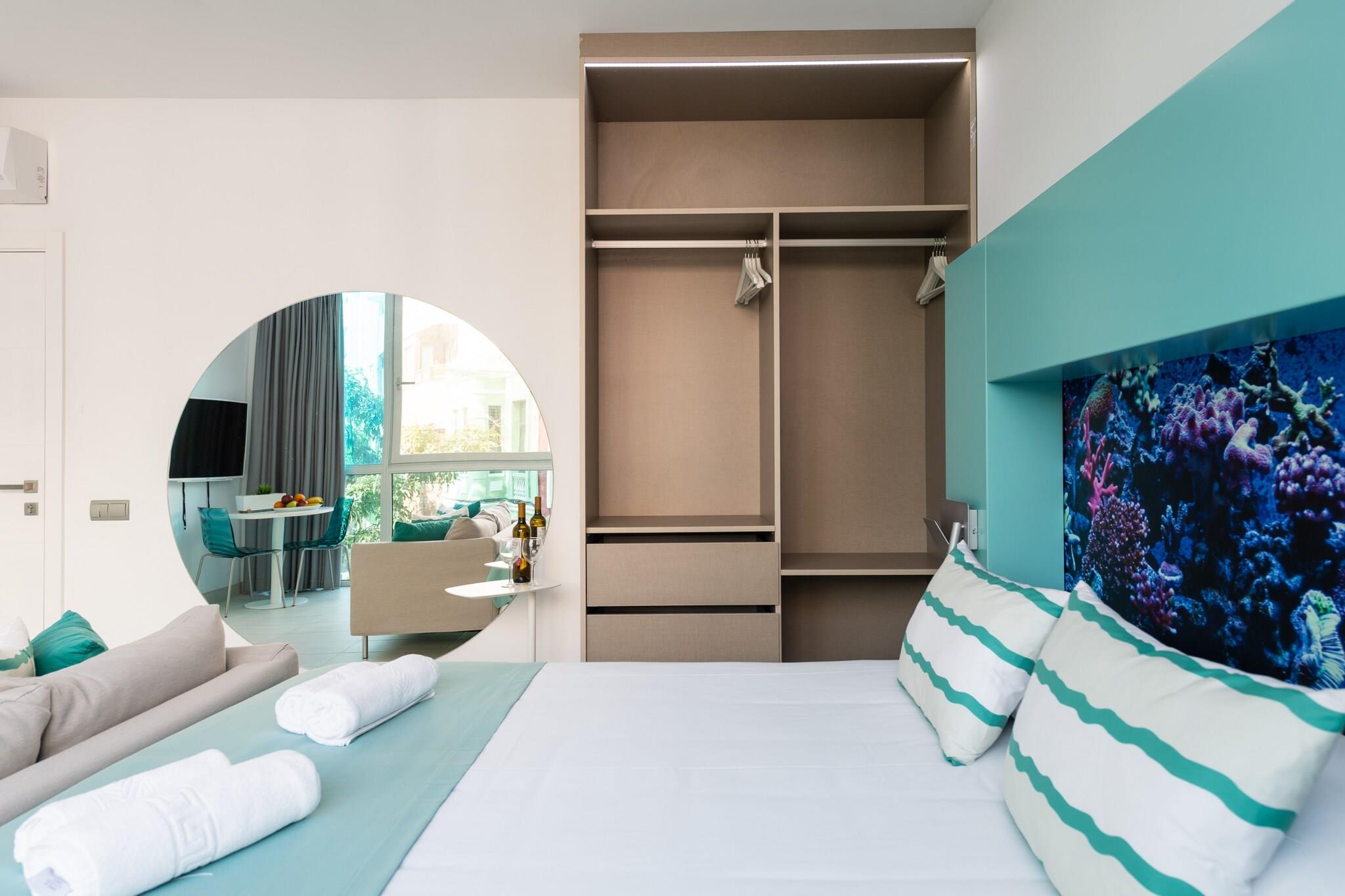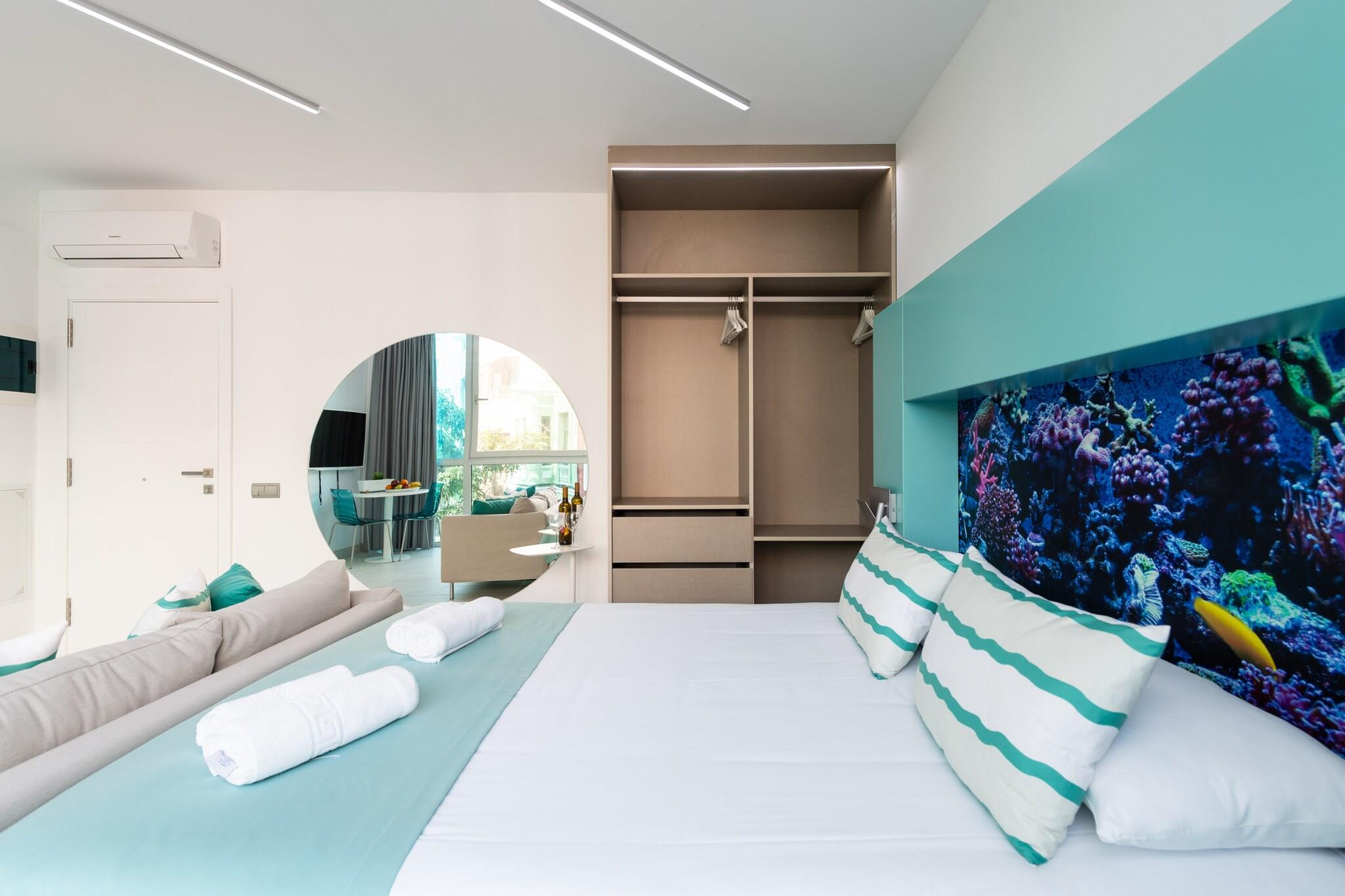 Oplev bykomfort i dette fuldt udstyrede 25 m² store studie i det pulserende hjerte af Las Palmas de Gran Canaria. Perfekt til solorejsende eller par, dette hyggelige rum tilbyder alle moderne bekvemmeligheder og placerer dig kun 200 m fra den berømte Playa de Las Canteras, en af ??Spaniens bedste bystrande. Træd udenfor for at finde dig selv omgivet af fremragende caféer, tapasbarer og lokale butikker, herunder El Corte Inglés og Superdino. Studiet er gennemtænkt designet med bekvemmelighed i tankerne. Det har højhastigheds-Wi-Fi, et tv, aircondition overalt, en vaskemaskine og tørretumbler samt en elevator i bygningen. Det slanke køkken i åbent plan er udstyret med alt, hvad du behøver for at lave mad derhjemme - keramisk kogeplade, mikroovn, ovn, opvaskemaskine og endda en kaffemaskine, elkedel og juicer. Uanset om du slentrer gennem Parque Santa Catalina, nyder en solnedgang på stranden eller udforsker nærliggende destinationer som Teror og Tejeda, tilbyder denne centralt beliggende studio den ideelle base. Med nem adgang til busstationer, supermarkeder og endda golfbaner vil dit ophold på Gran Canaria være både afslappende og godt forbundet.
