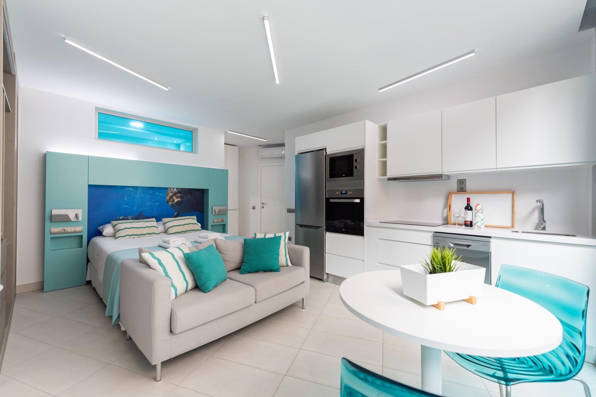 Oplev dette hyggelige og fuldt udstyrede studie i hjertet af Las Palmas de Gran Canaria, perfekt til en romantisk flugt eller et soloeventyr. Med en størrelse på 26 m² kan den komfortabelt rumme 2 gæster og har moderne bekvemmeligheder for at sikre et behageligt og ubekymret ophold. Det lyse, indbydende interiør suppleres af aircondition, Wi-Fi og et fladskærms-tv, hvilket gør det til et ideelt sted at slappe af efter at have udforsket byen eller en dag på stranden. Beliggende kun 300 meter fra det gyldne sand i Playa de Las Canteras, er lejligheden i et pulserende og livligt område omgivet af alt hvad du behøver. Restauranter som "Edison", "Chocolat" og "Allende" ligger kun få skridt væk, mens supermarkeder som Superdino, Spar og El Corte Inglés er inden for gåafstand. Parker, hospitaler, butikker og kulturelle seværdigheder er alle let tilgængelige, såvel som Intercambiador Santa Catalina busstation for bekvem rejse. Studiet tilbyder et fuldt udstyret åbent køkken med keramisk kogeplade, køleskab, ovn, mikroovn, opvaskemaskine og alle nødvendige redskaber. Uanset om du foretrækker at spise ude eller lave mad, vil du finde alt lige ved hånden. Ideel til par eller solorejsende bringer denne bolig dig tæt på Las Palmas' kystcharme, natteliv og lokale flair - alt sammen fra en fredelig og praktisk hjemmebase.