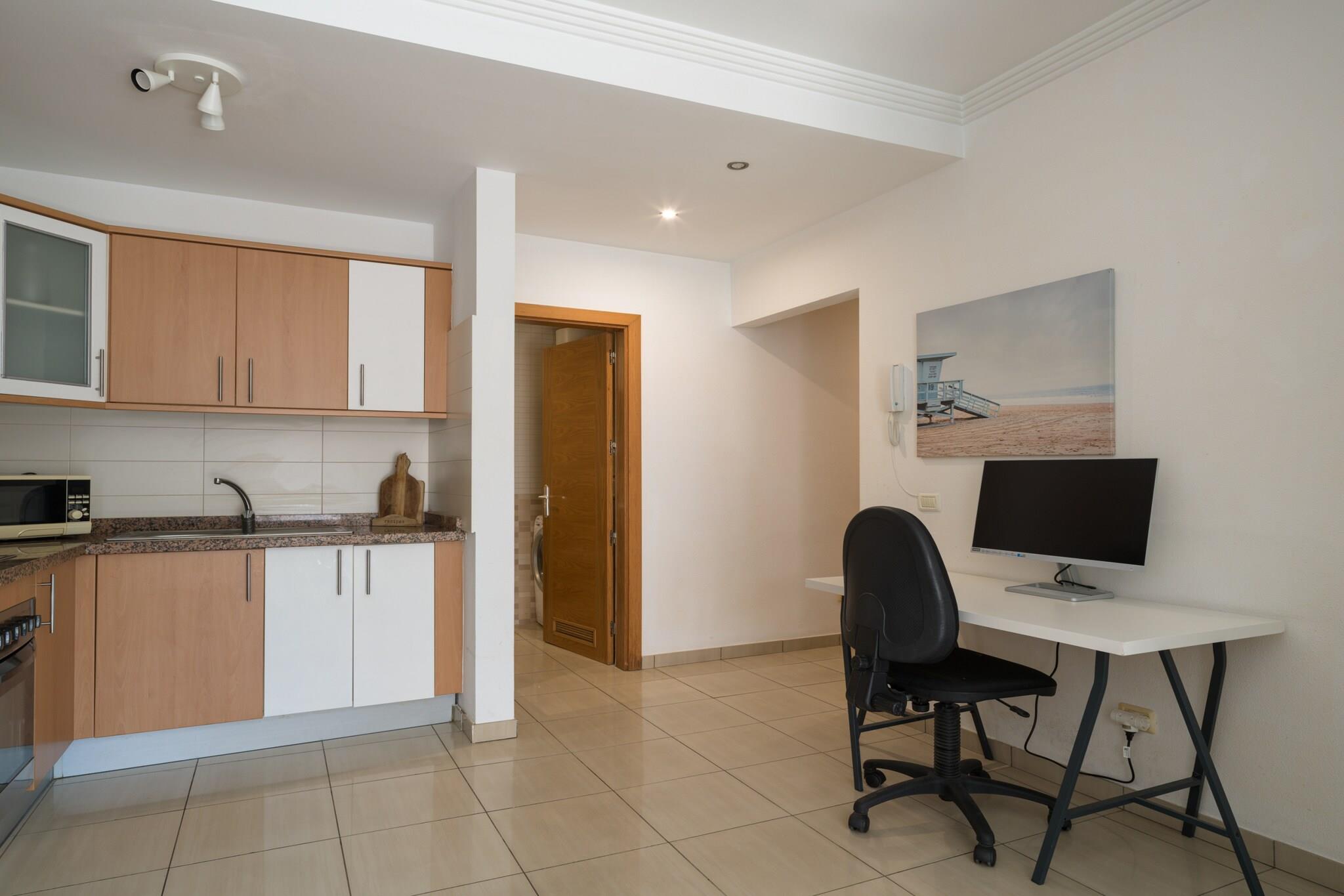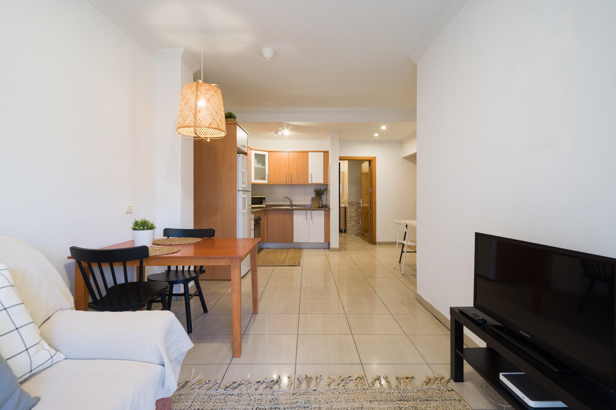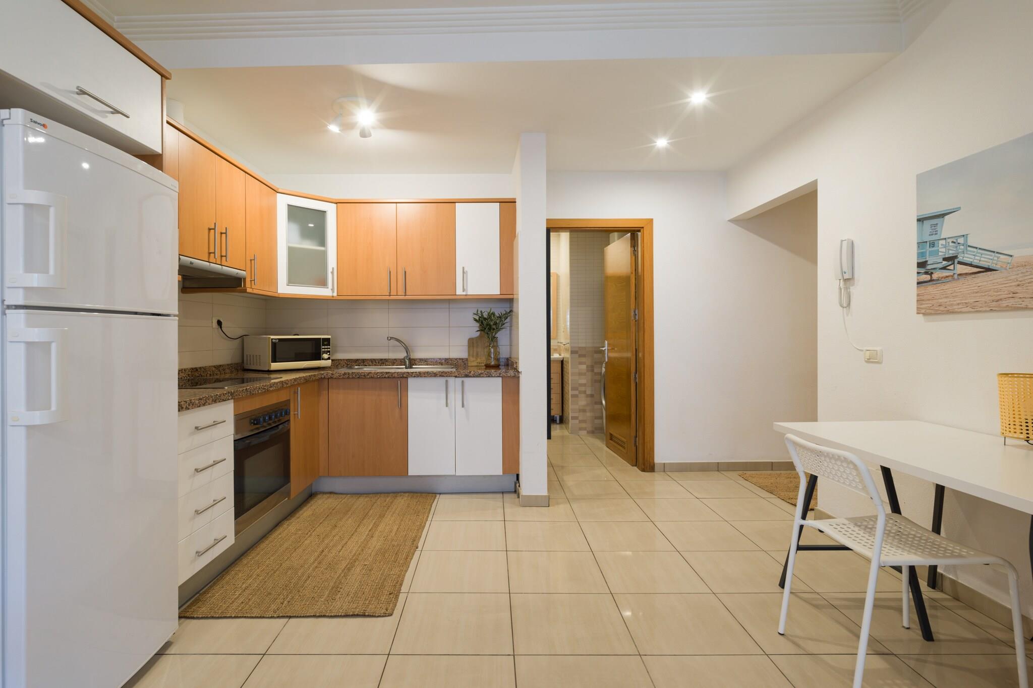 Oplev et hyggeligt og stilfuldt tilflugtssted i denne fuldt udstyrede 1-værelses lejlighed beliggende i hjertet af Las Palmas de Gran Canaria. Med 55 m² lyst, funktionelt rum er dette hjem ved havet perfekt til to gæster, der søger afslapning og bekvemmelighed i lige grad. Ideelt beliggende kun 220 meter fra den ikoniske Playa de Las Canteras, har lejligheden også nem adgang til fremragende restauranter, butikker og parker - og tilbyder en rolig hjemmebase i et livligt, charmerende område af byen. Træd indenfor for at opdage et varmt og omhyggeligt indrettet interiør designet til komfort. Det åbne køkken er udstyret med alt det nødvendige, inklusive køleskab, mikroovn, ovn, fryser, kaffemaskine, kedel og komplet køkkenudstyr - perfekt til afslappet madlavning eller romantiske middage derhjemme. Højhastigheds-Wi-Fi, et fladskærms-tv og en radio giver underholdning og tilslutningsmuligheder, mens vaskemaskinen og hårtørreren tilføjer et praktisk touch til længere ophold. Store vinduer og smagfuld indretning forstærker den indbydende atmosfære, hvilket gør det nemt at slappe af efter en dag med strandture eller sightseeing. Denne placering placerer virkelig det bedste af Las Palmas lige ved hånden. Du er kun få skridt fra supermarkeder, lokale tapasbarer og Santa Catalina Park. Busstationen ligger 1 km væk, og lufthavnen ligger kun 26 km derfra. For fritid, udforsk den nærliggende Las Palmeras Golfbane, eller tag en dagstur sydpå til Aqualand Maspalomas. Uanset om du rejser efter romantik, arbejde eller en kystopladning, tilbyder denne lejlighed charme, funktionalitet og en uovertruffen beliggenhed ved havet.